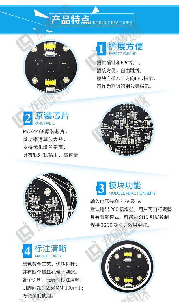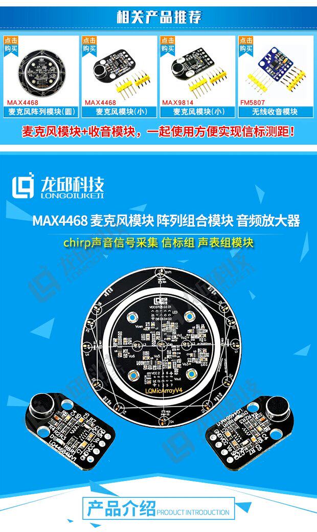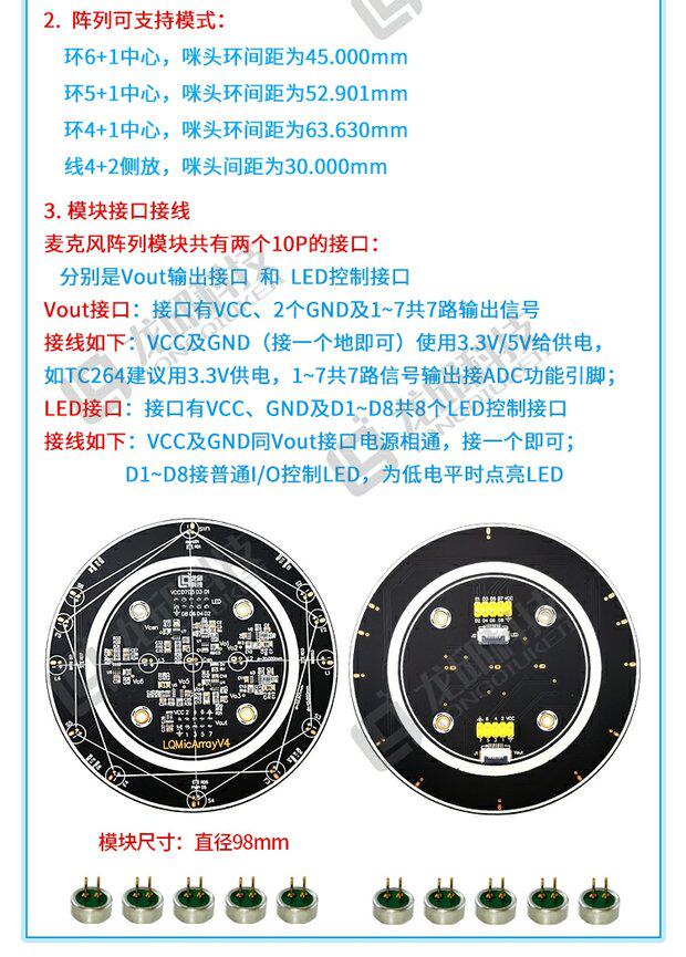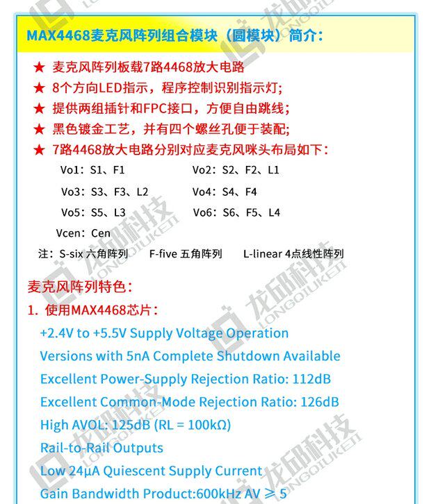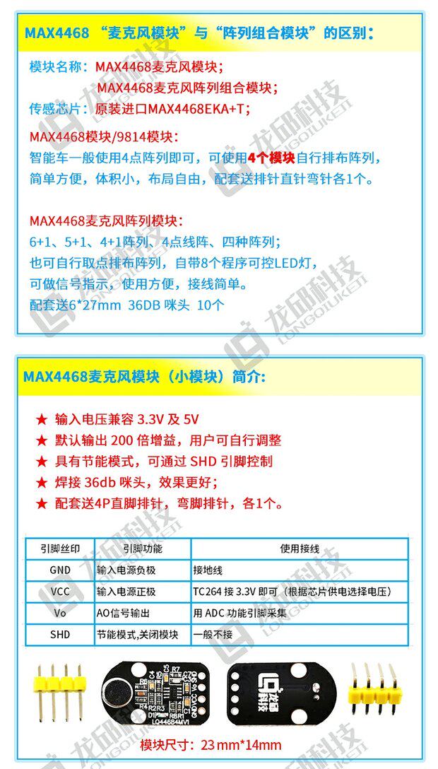 Color Classification Microphone Array Combination Module,Microphone Module,6*2.7mm with Feet-28Db Microphone,Max4468Eka Chip