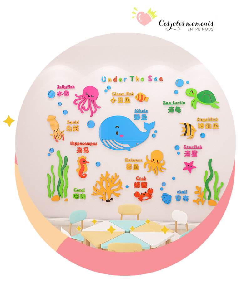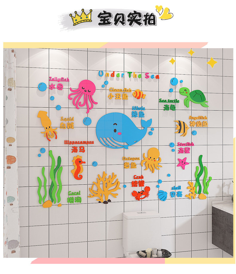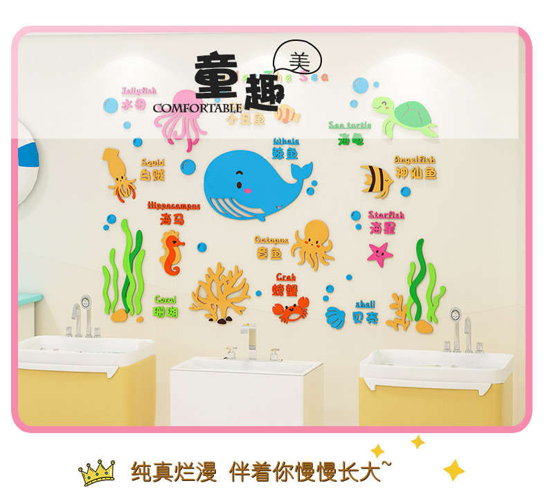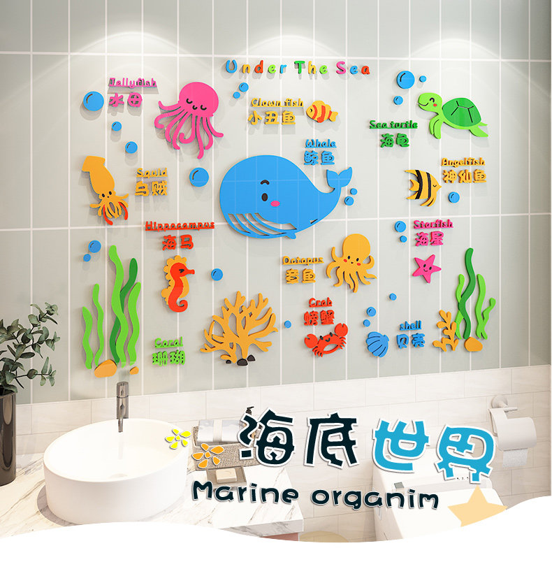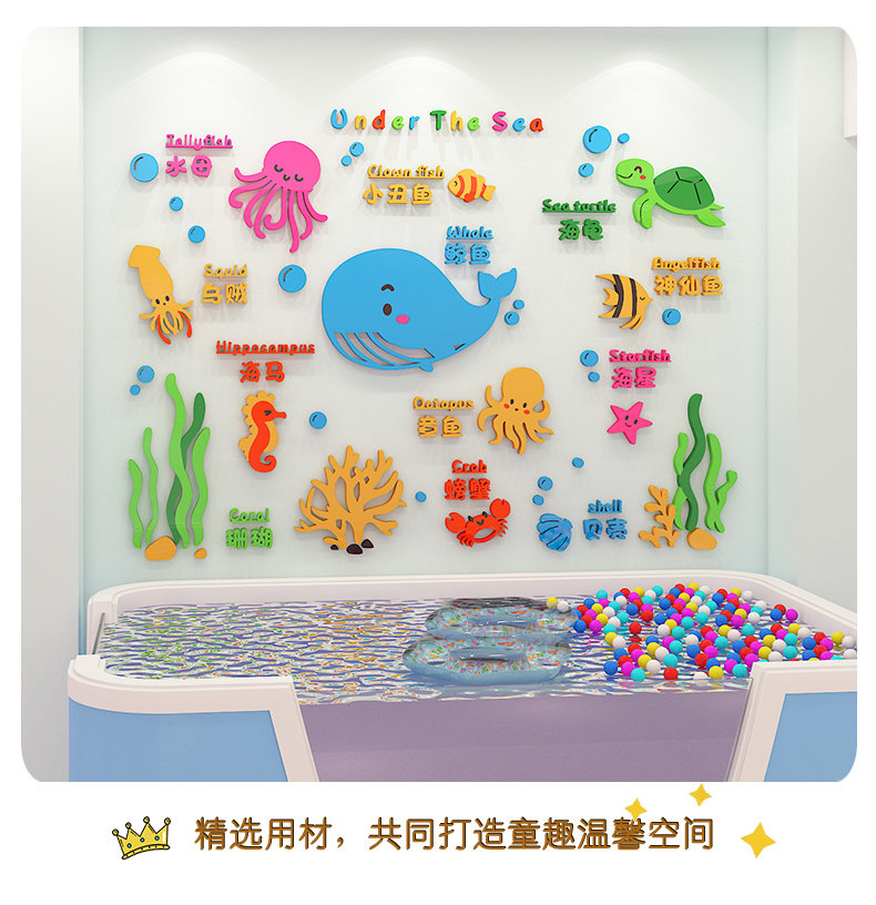 Kindergarten Acrylic 3D Wall Stickers Baby Care Center Cultural Wall Stickers Children's Swimming Pool Wall Decoration