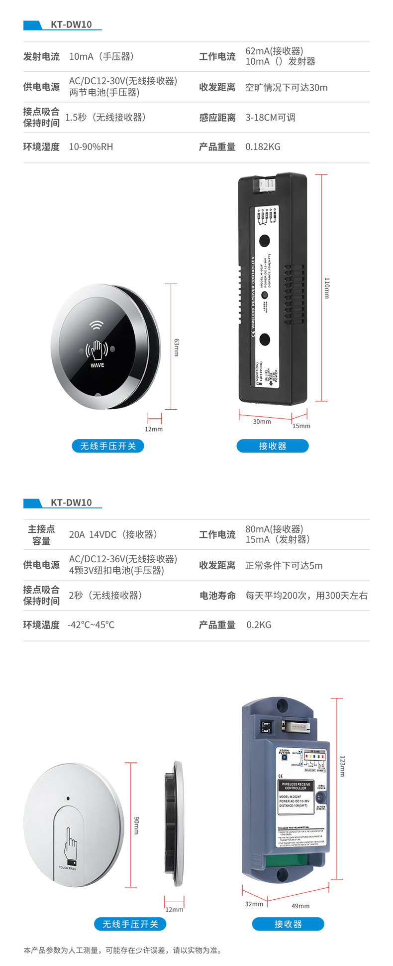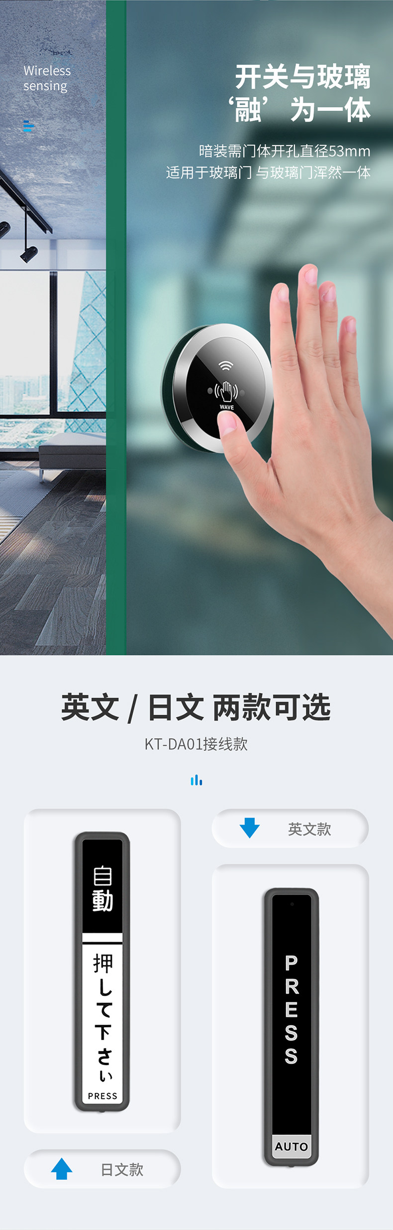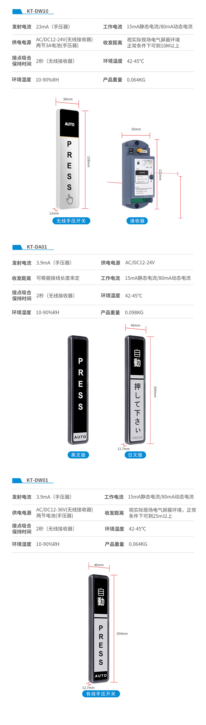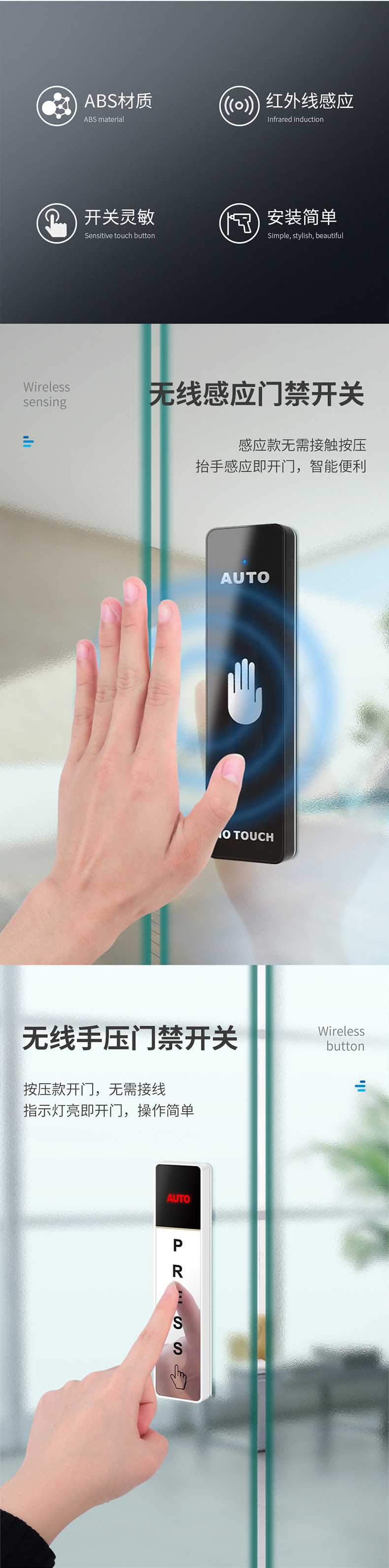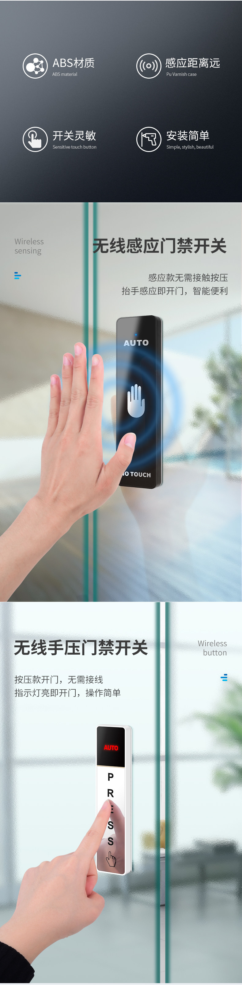Kob Automatic Door Wireless Hand Press Switch Wireless Door Opener Remote Control Switch Button Access Control Switch Hand Press Switch