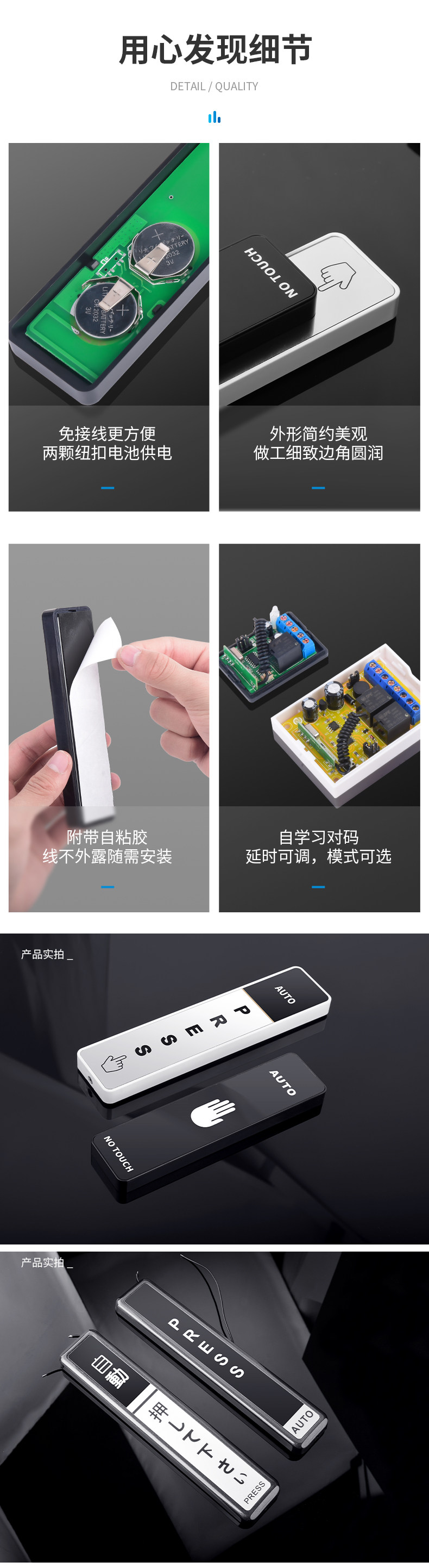 Color Classification Wiring-Free Hand-Pressed Switch English Version (Receiver Not Included),Wiring-Free Hand-Pressed Switch Receiver (Switch Not Included),Wiring Hand-Pressed Switch English Version,Wiring Hand-Pressed Switch Japanese Version,Wiring-Free Induction Model 12V/24V Universal Receiver (Excluding Switch),Wiring-Free Sensor Switch (Receiver Not Included),Surface-Mounted Round Wireless Sensor Switch (Receiver Not Included),Surface-Mounted Round Wireless Sensor Receiver (Single Receiver),Surface-Mounted Round Wireless Sensor Switch (Single Switch + Single Receiver),Concealed Round Wireless Sensor Switch (Receiver Not Included),Concealed Round Wireless Sensor Receiver (Switch Not Included),Concealed Round Wireless Sensor Switch (Single Switch + Single Receiver),Round Wireless Hand-Pressed Receiver (Switch Not Included)