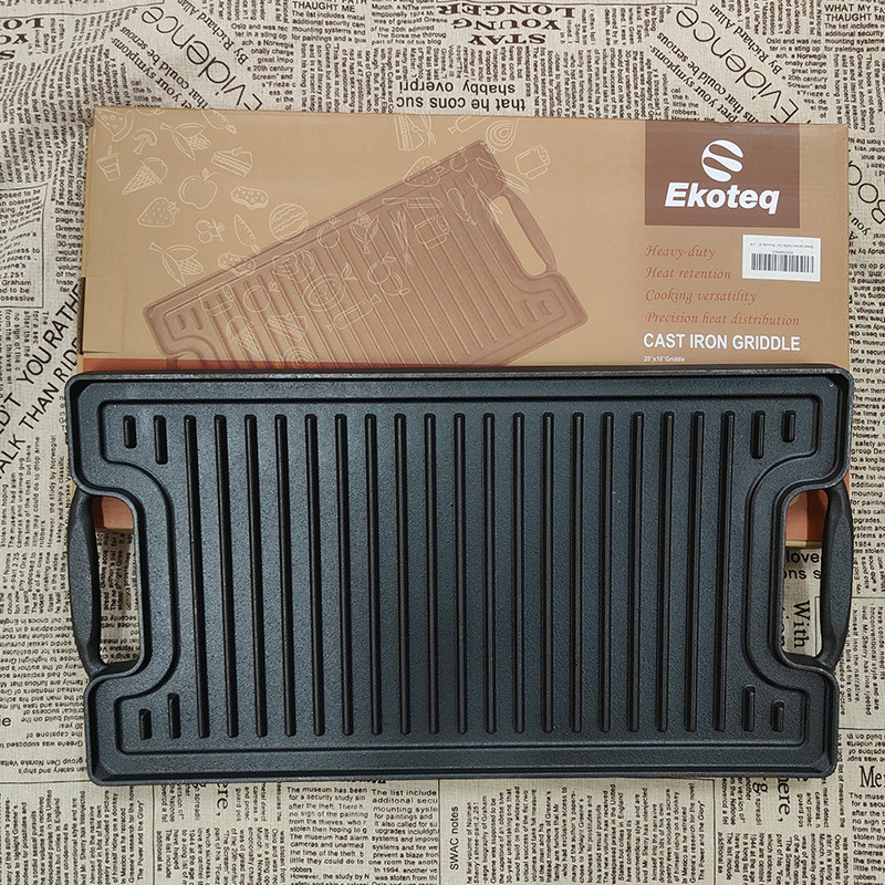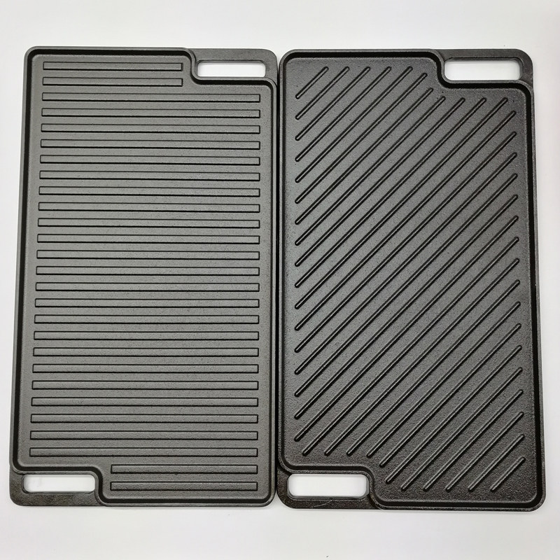 Household Outdoor Barbecue Plate Teppanyaki Thickened Rectangular Double-Sided Iron Plate Mold Cast Iron Griddle Large Frying Pan