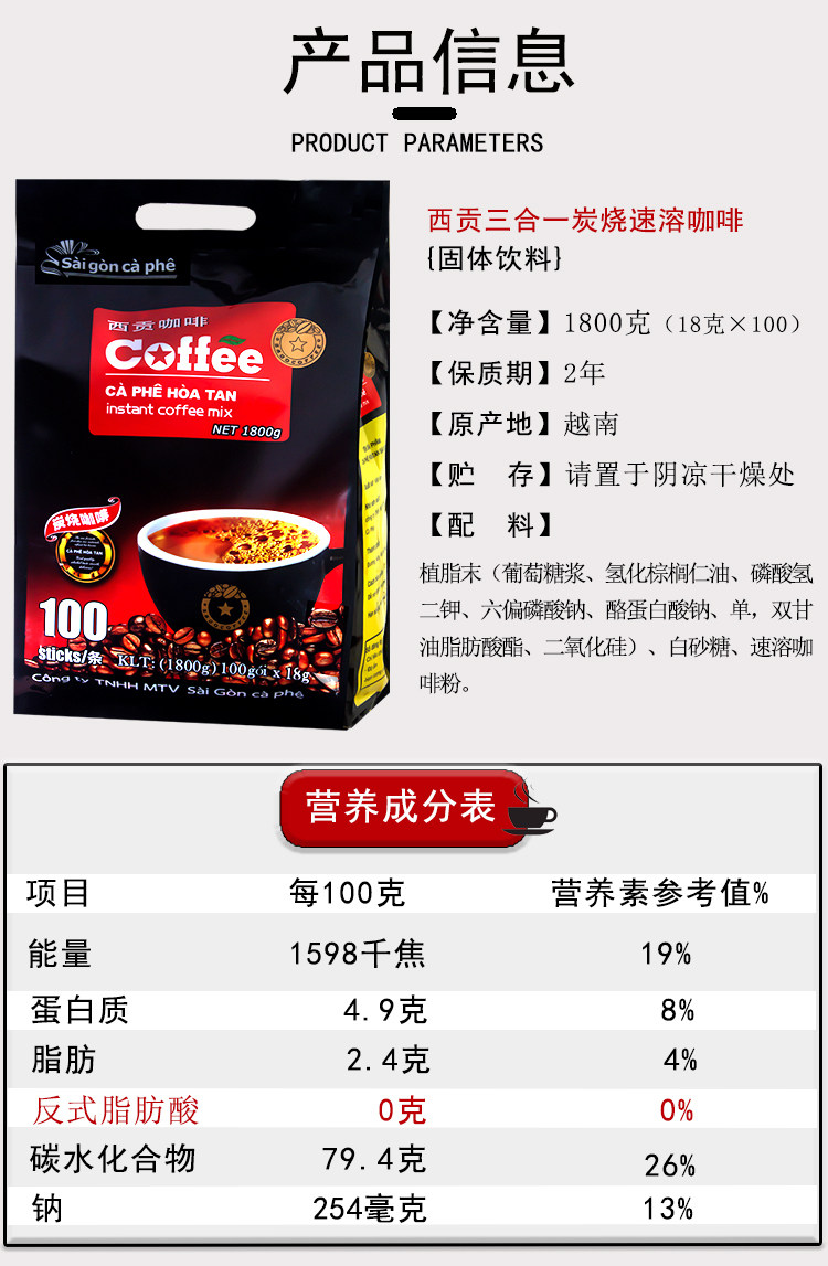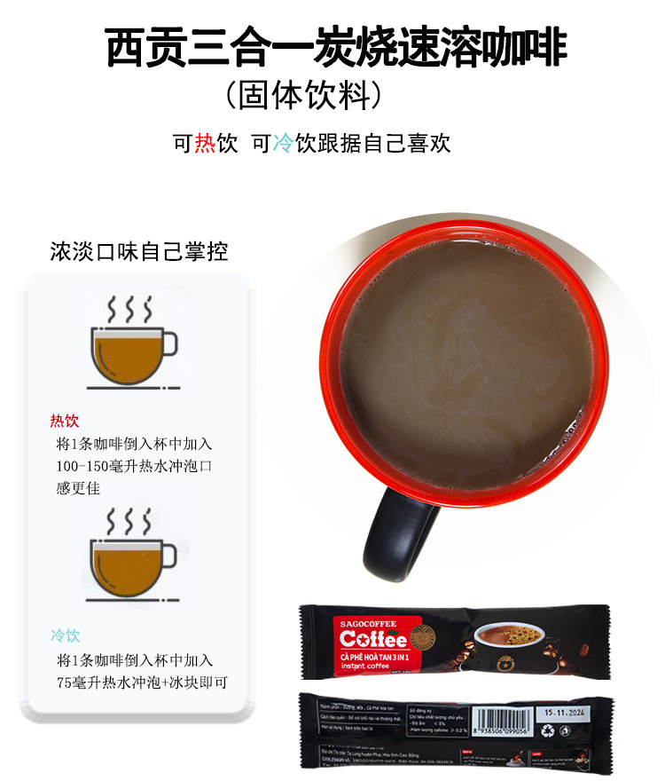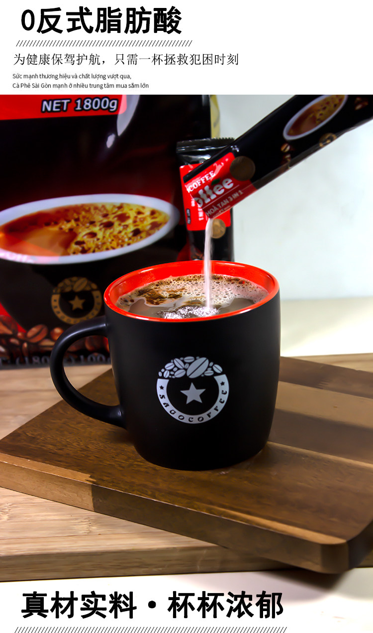 Vietnam Saigon Charcoal Roasted 3-in-1 Original Flavor Instant Black Coffee Powder 100 Bags Original Imported Rich Flavor 1800g