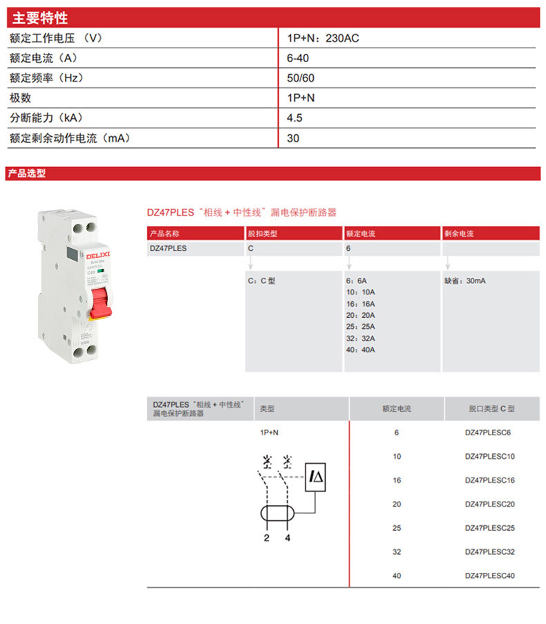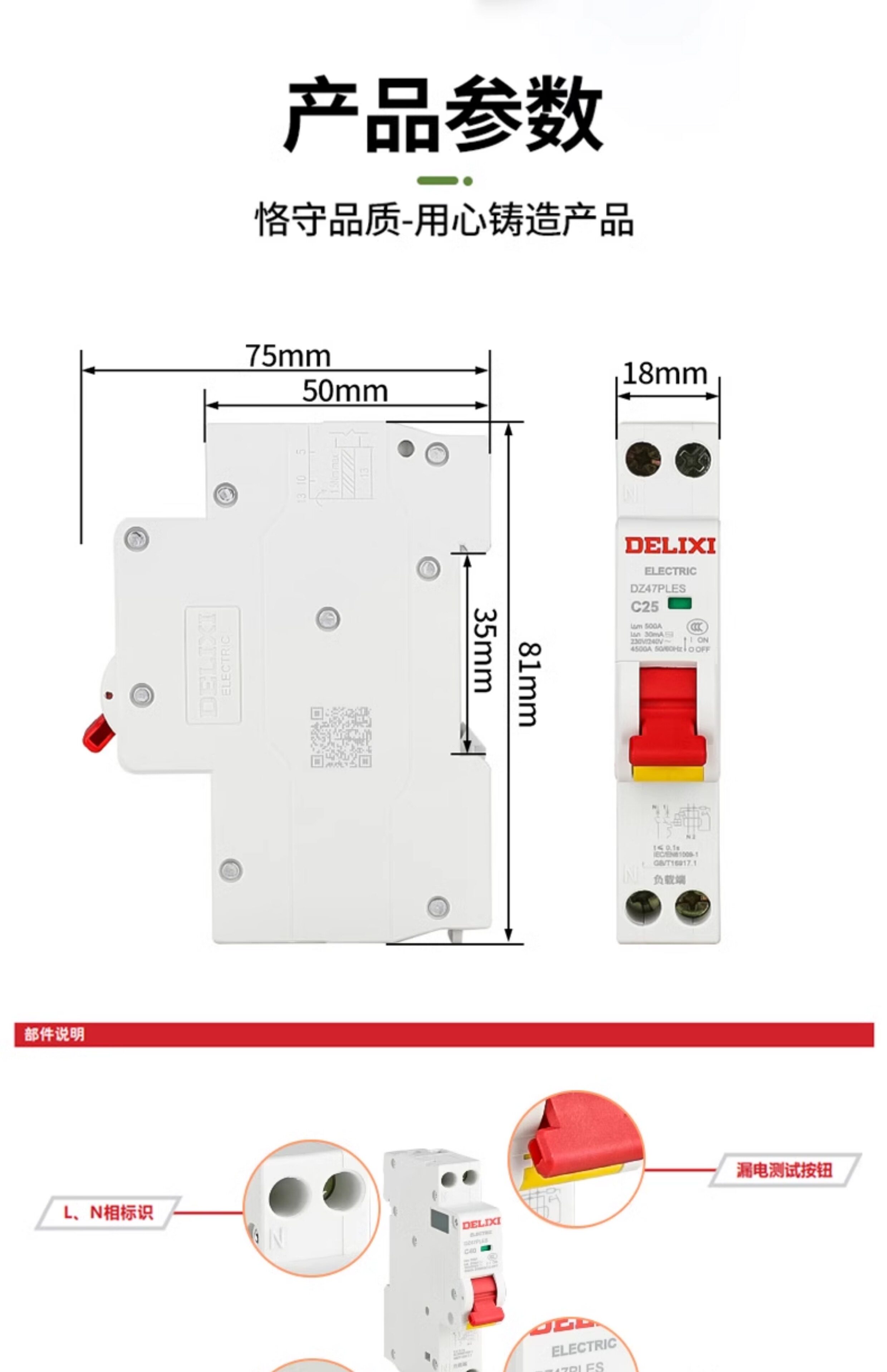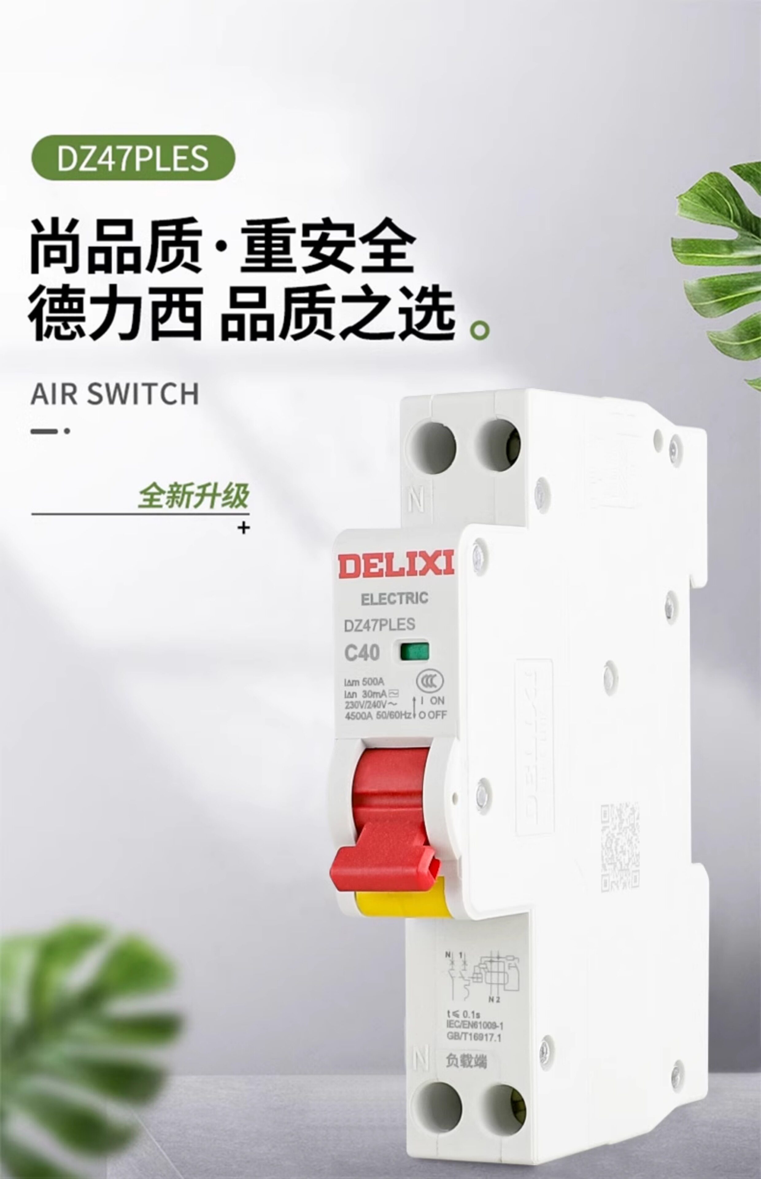 Delixi Leakage Protection Dz47Ples Single-Circuit Circuit Breaker for Home Use 1P Air Switch with Leakage Protection