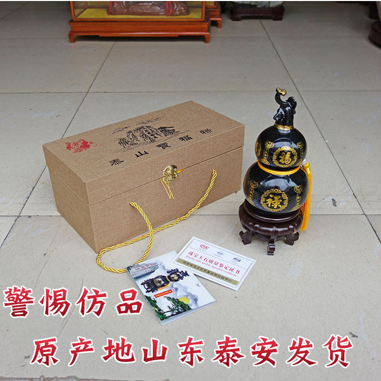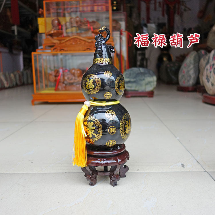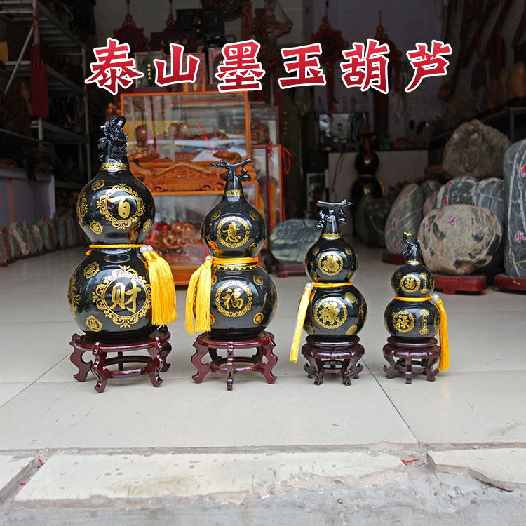 Taishan Black Jade Gourd Ornament Base for Bedroom, Entrance, Wealth-Attracting, Office, Living Room, Home, Display Shelf, Wine Cabinet Decoration