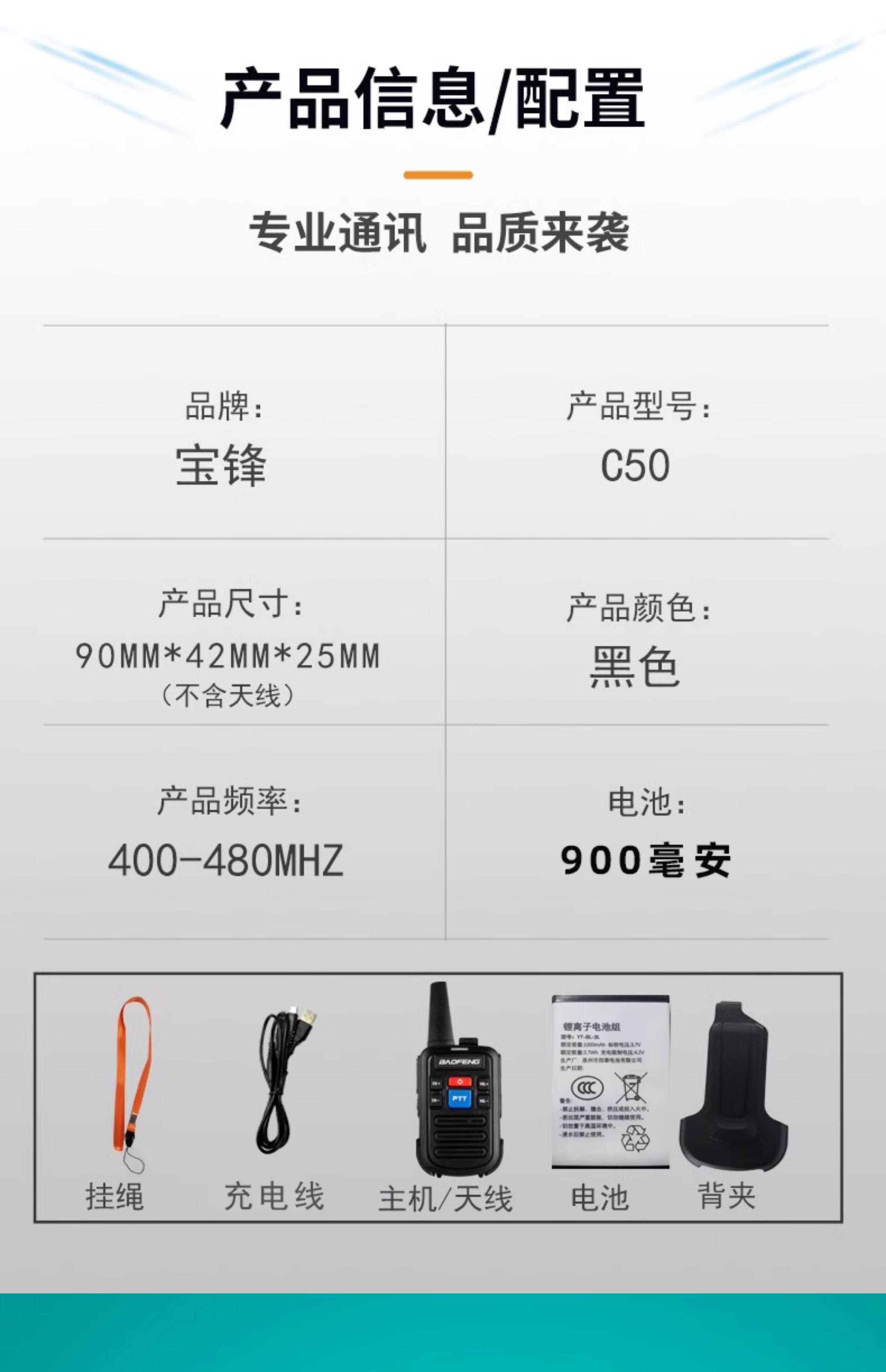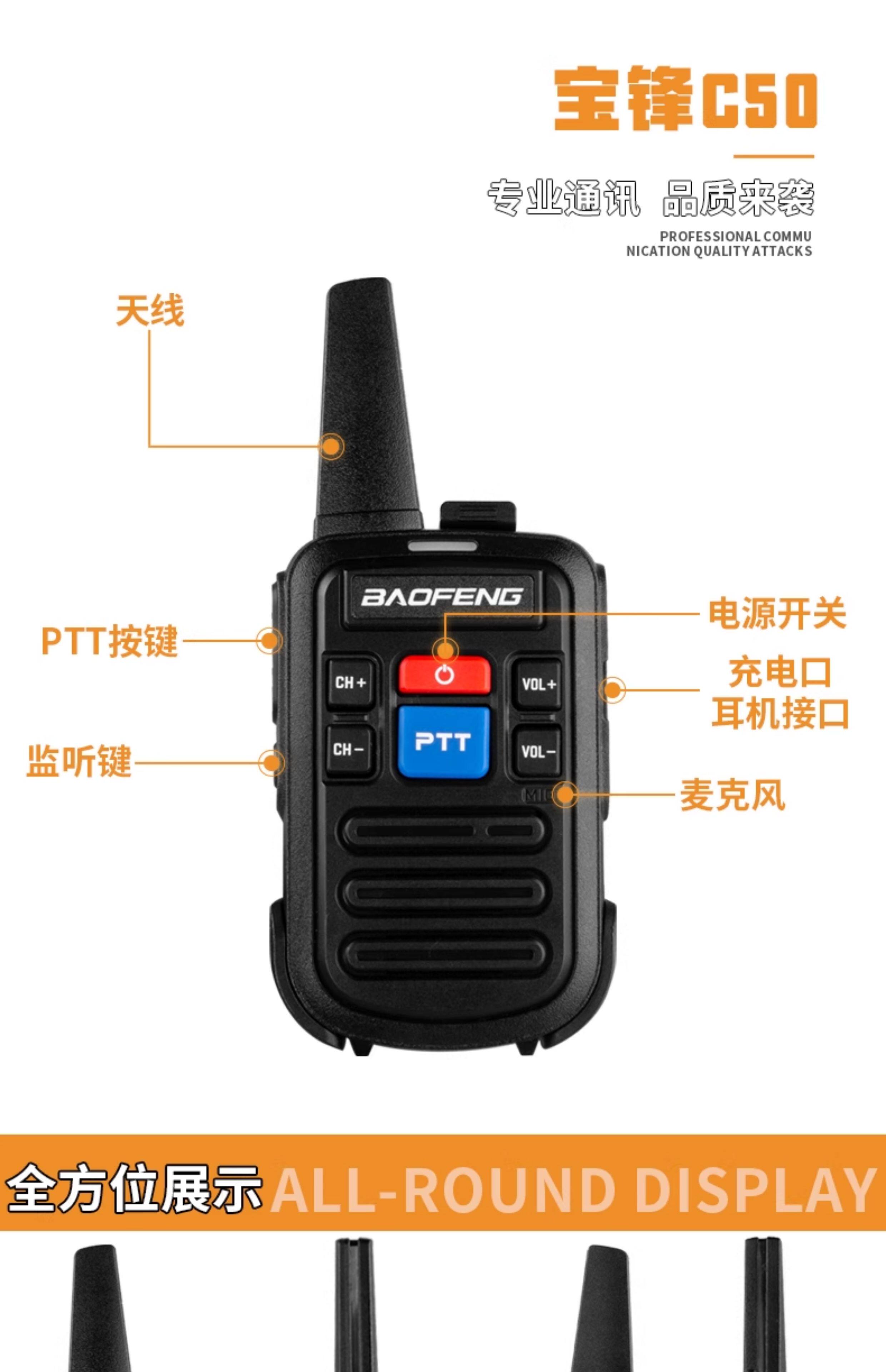 Baofeng Walkie-Talkie C50 Mini Handheld Radio with USB Direct Charging for Construction Sites, Hotels, Guesthouses, Supermarkets, Ktvs, Hair Salons, Elderly, and Children