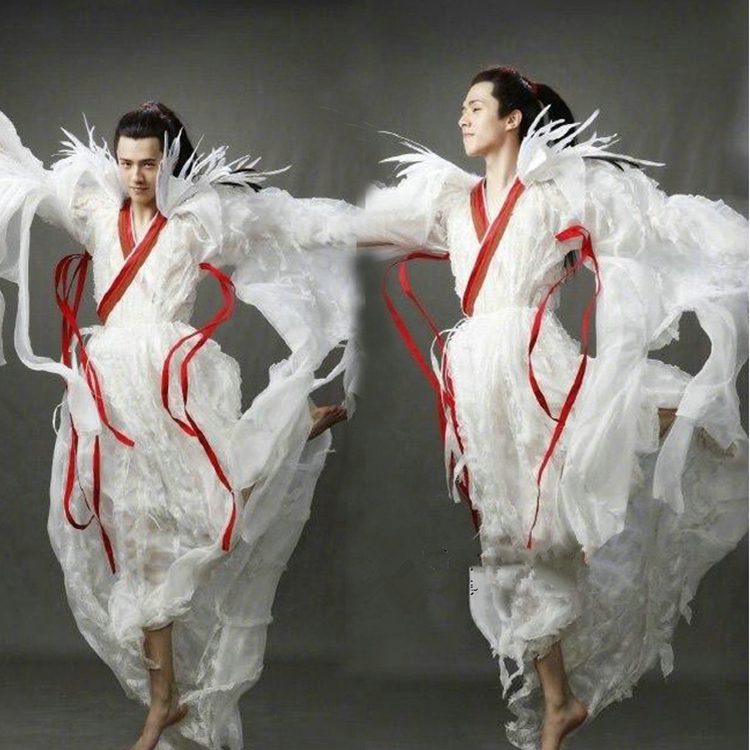 Film and Television Demon Cat Legend Baihe Youth-Style Ancient Costume Feather Outfit Liu Haoran White Dragon Danlong Fairy Costume Performance Outfit