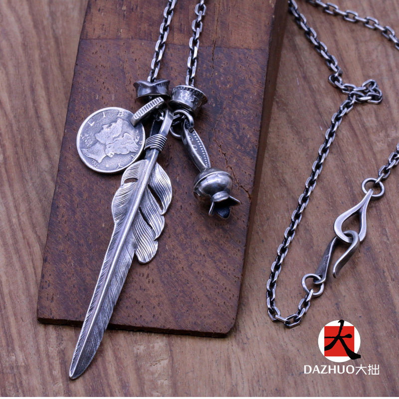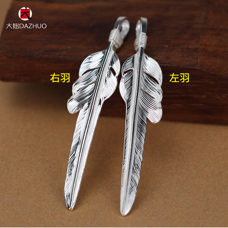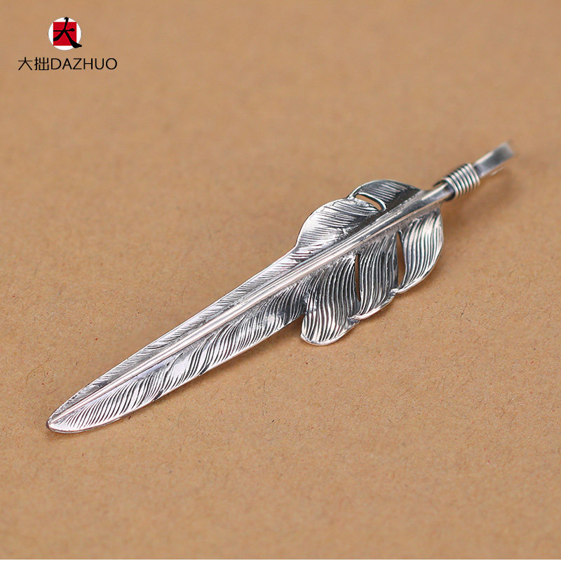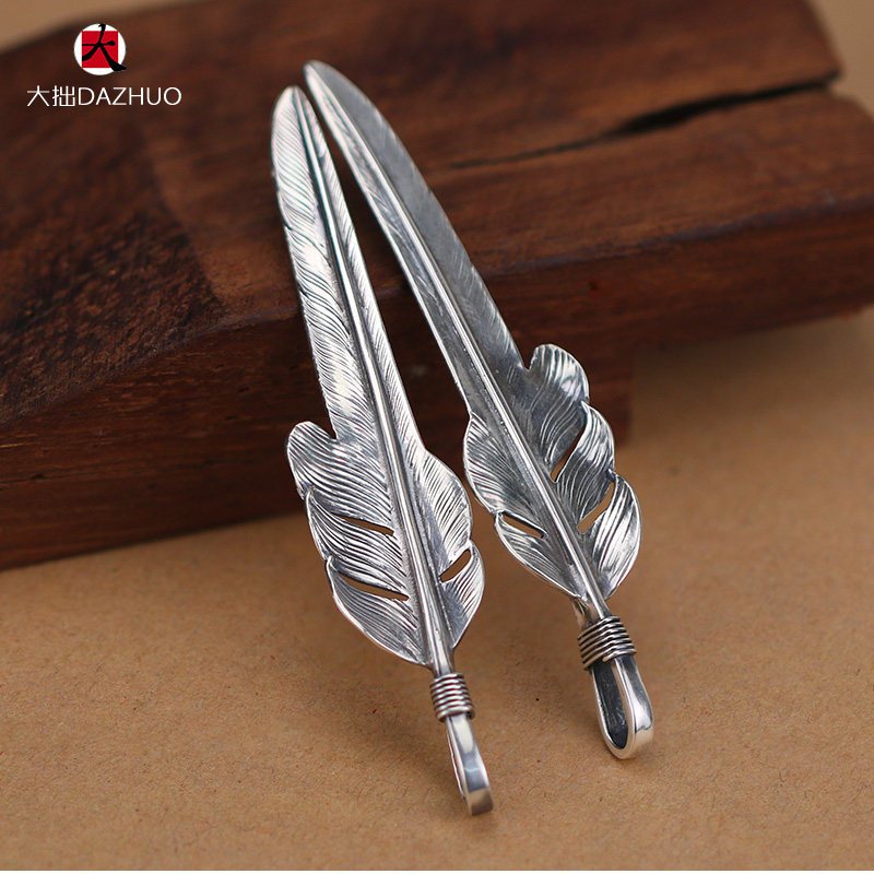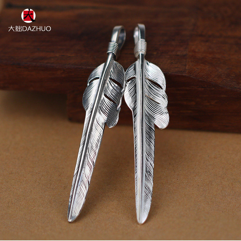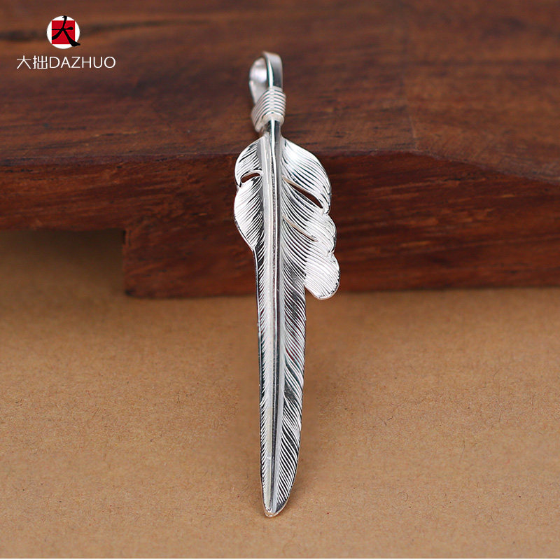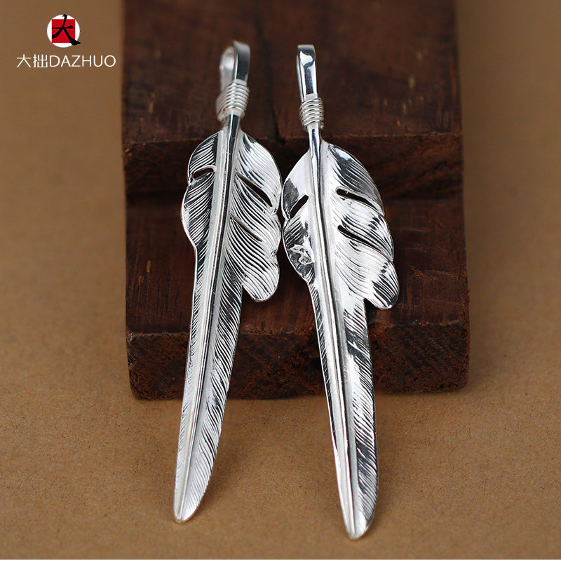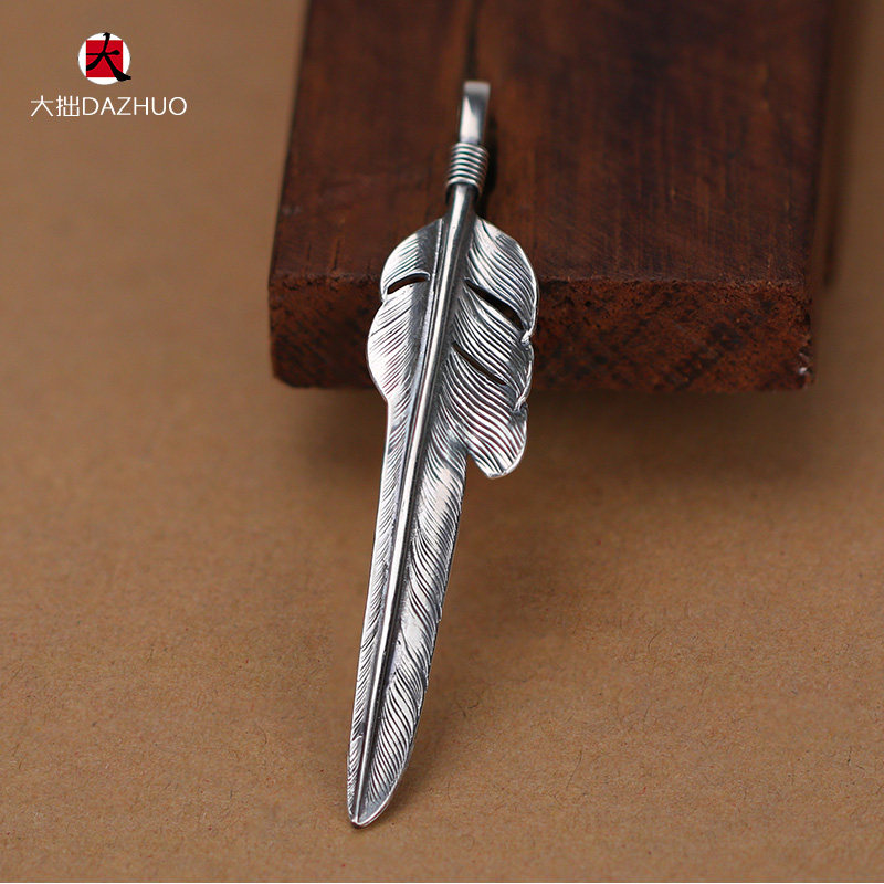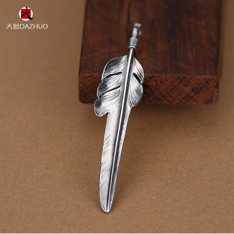 Da Zhuo handmade Larry Smith wind-cut feather pendant 925 sterling silver men's and women's feather single pendant retro silver jewelry