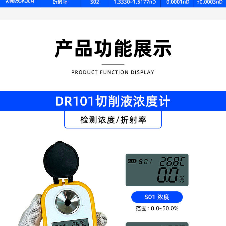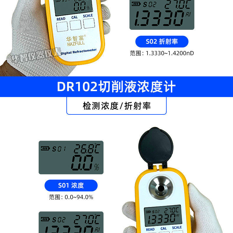 Digital Display Concentration Meter Dr101/Dr102 High-Precision Refractometer for Active Solid Content in Laundry Detergent and Cutting Fluid