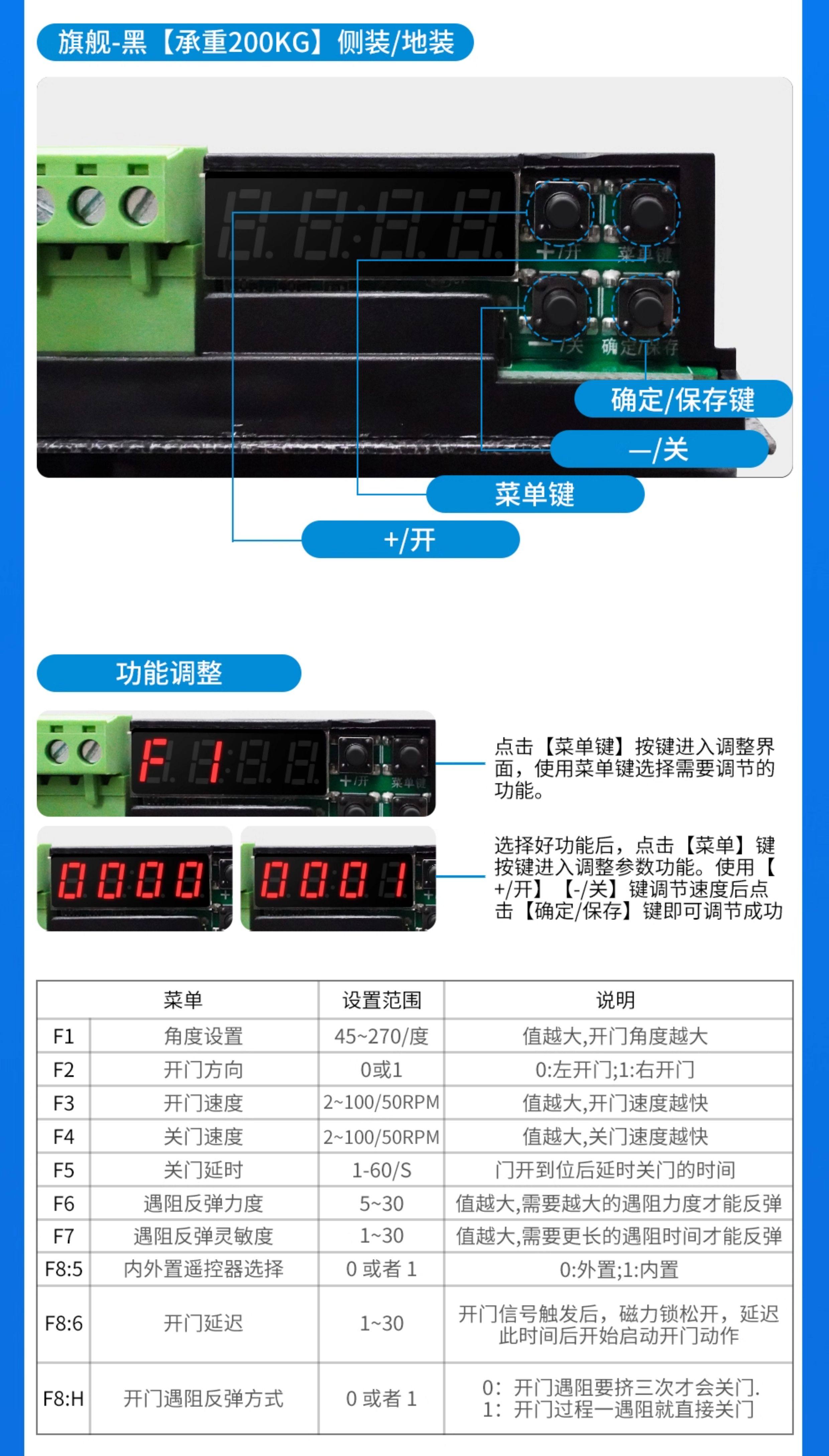 Kob Side-Mounted Electric Door Closer, Automatic Swing Gate for Iron Fences, Residential Community Door Opener, Sensor Door Unit