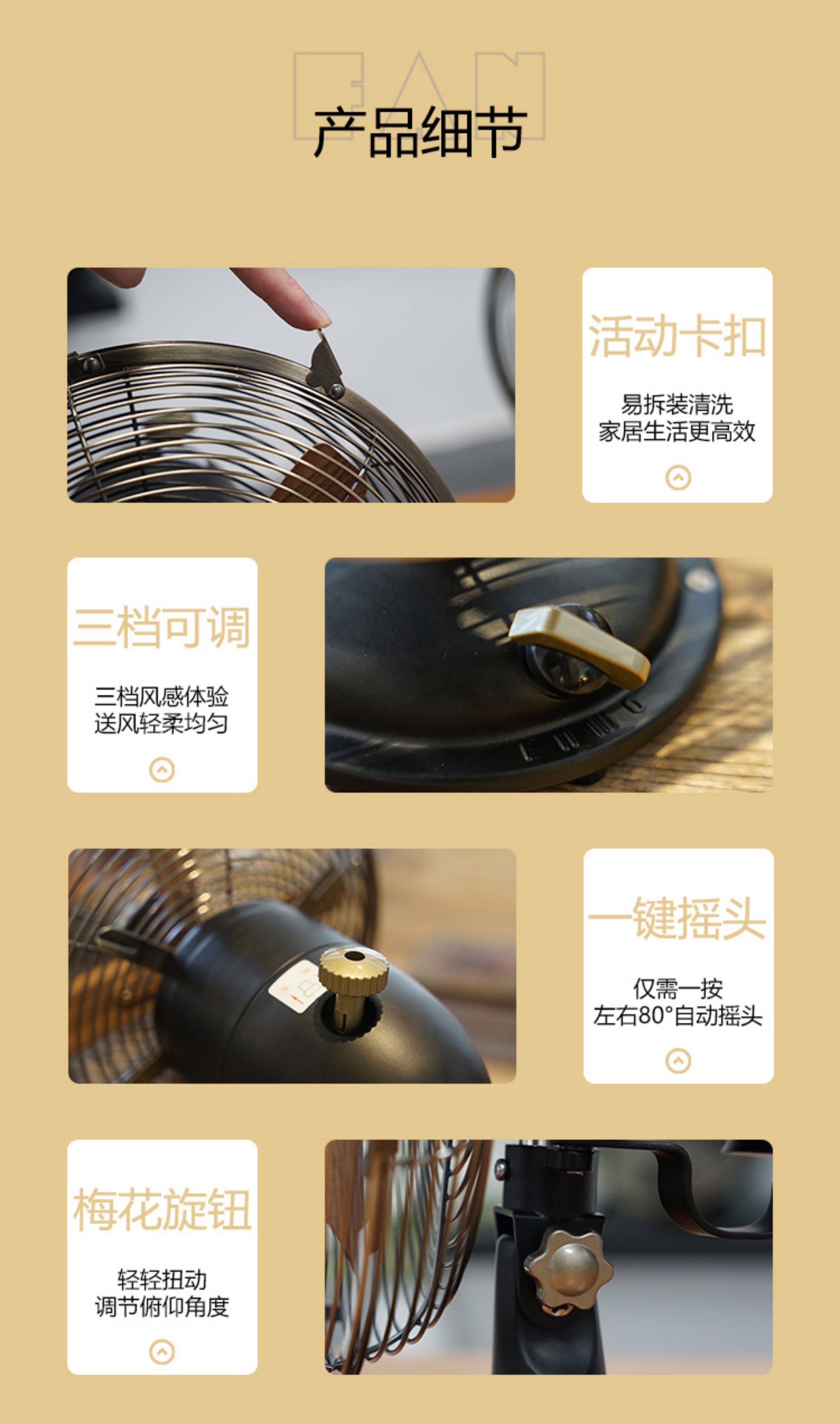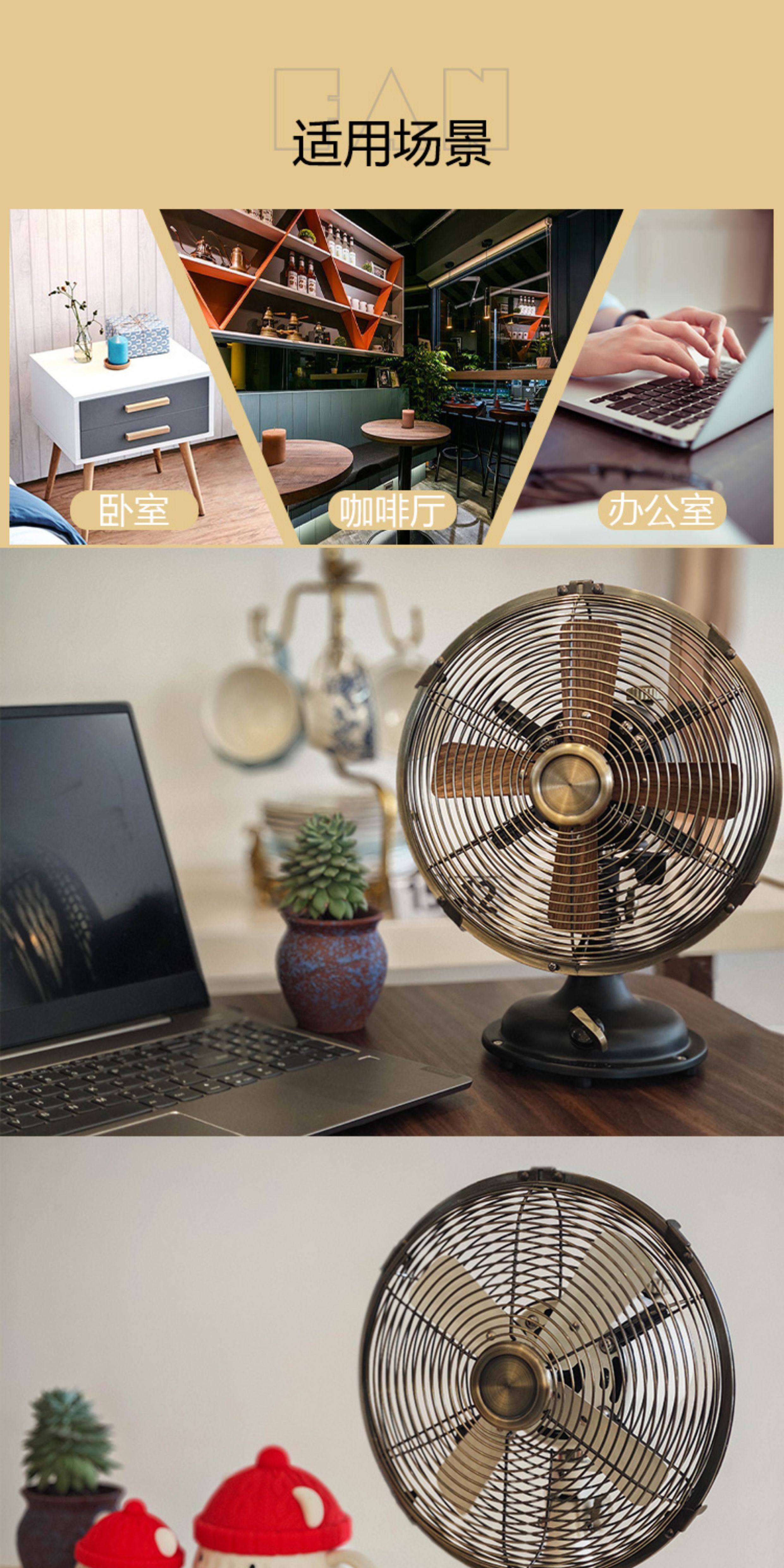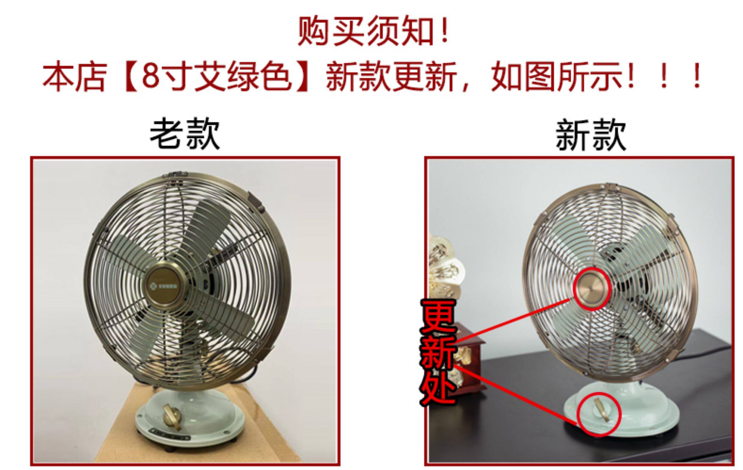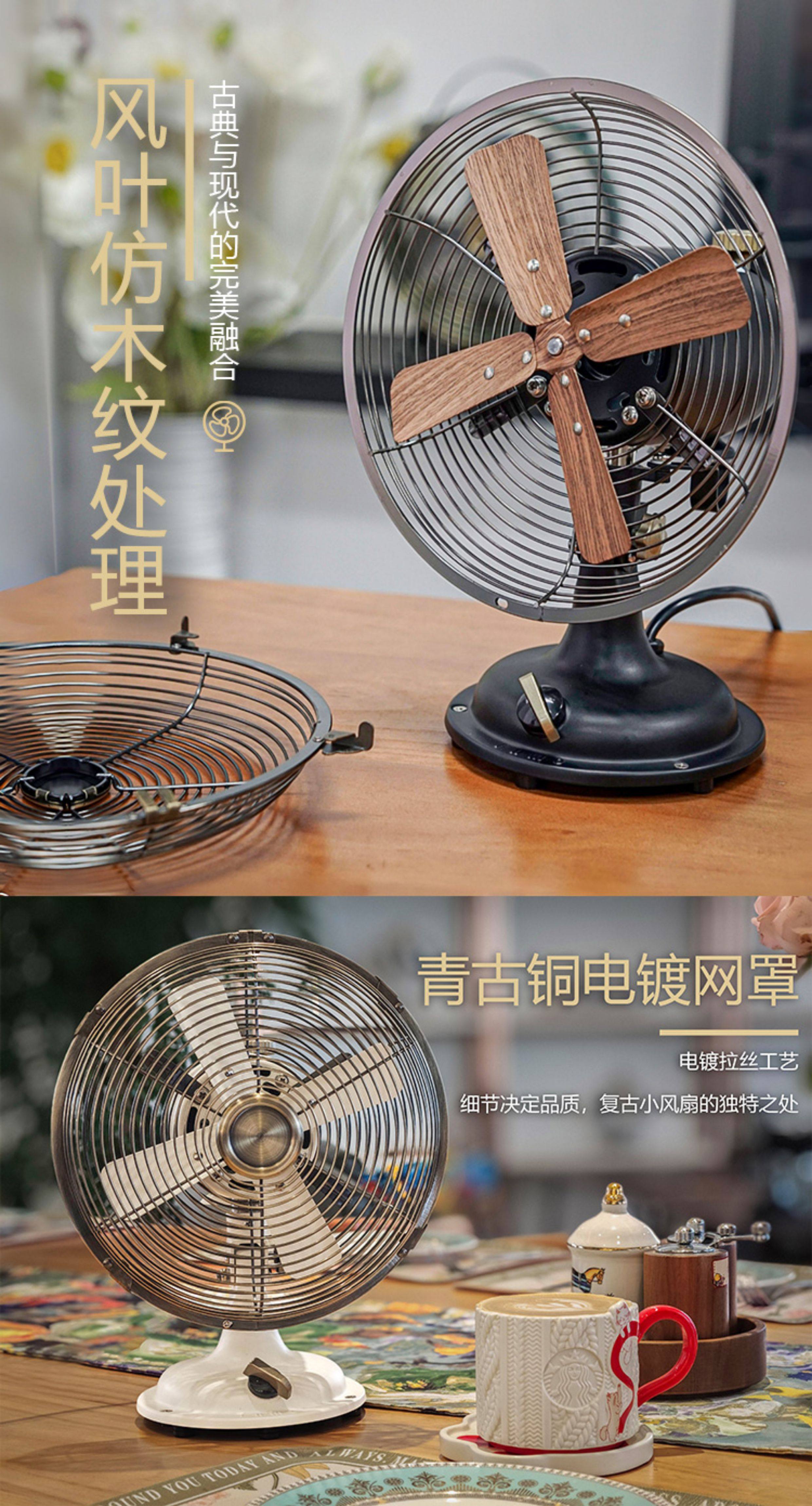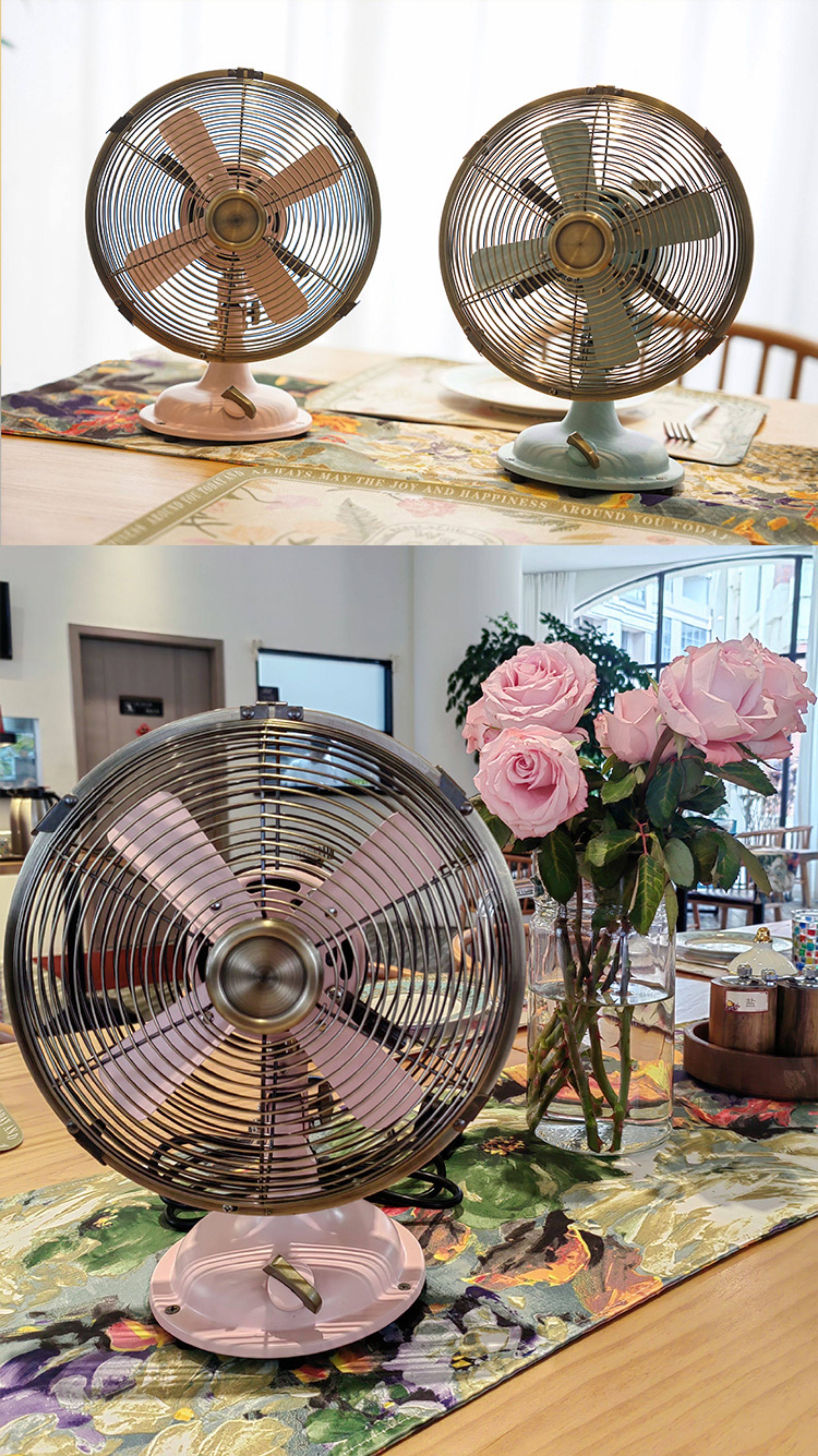 Sam Sunko Retro Table Fan for Home Use, Antique-Style 8inch Oscillating Tabletop Metal Desktop Nostalgic Electric Fan, Same Model