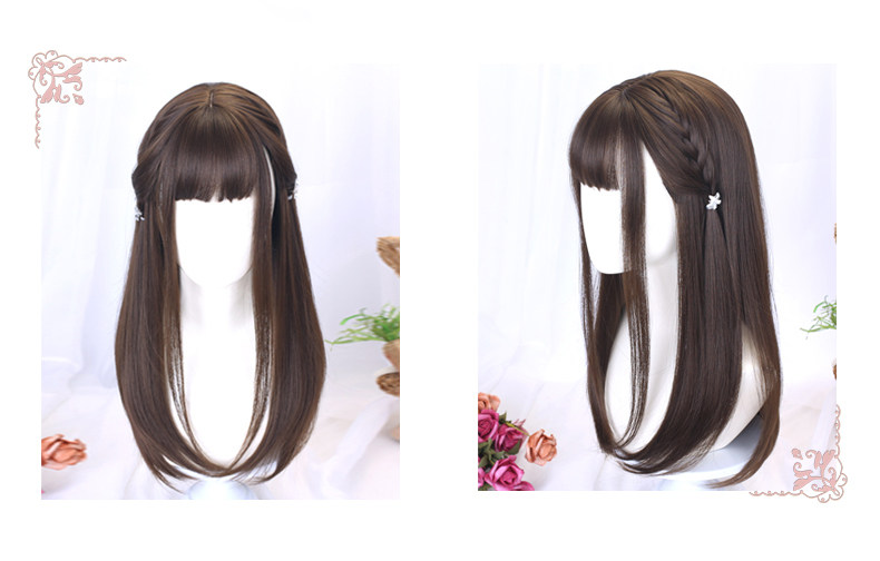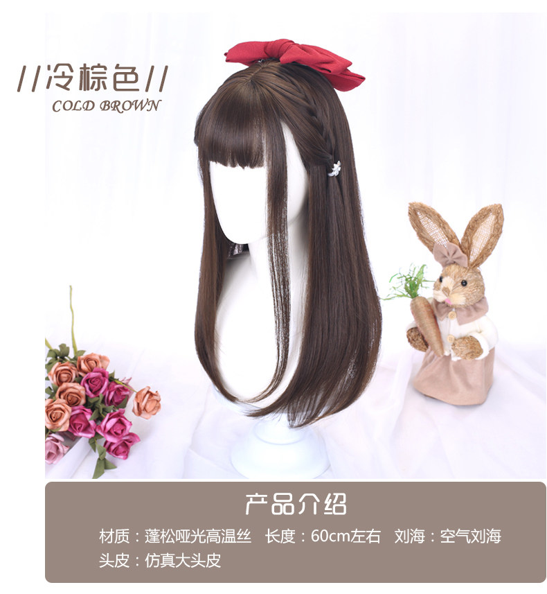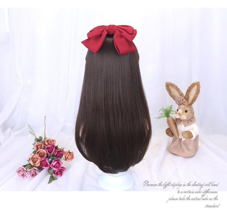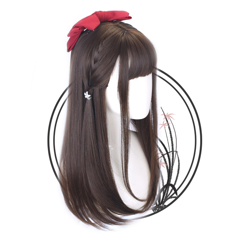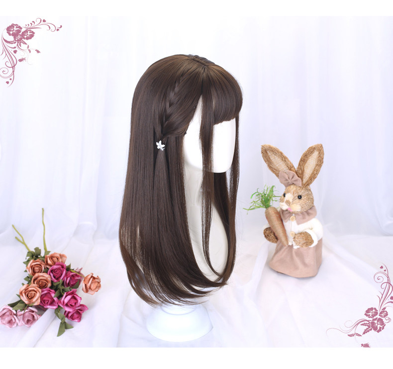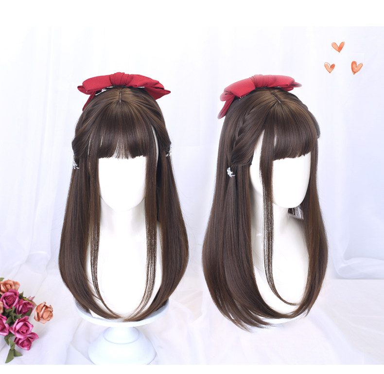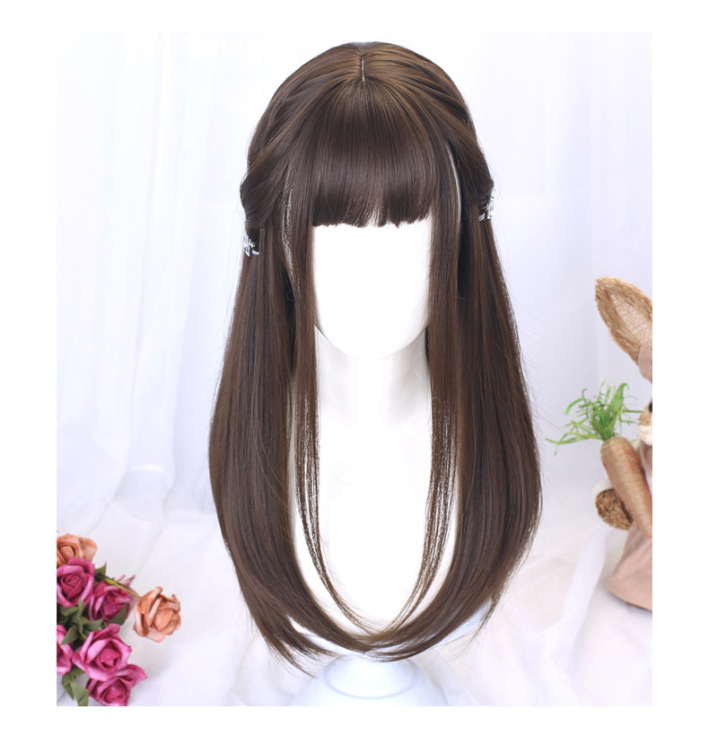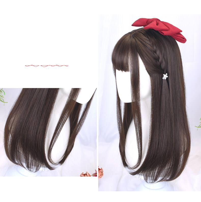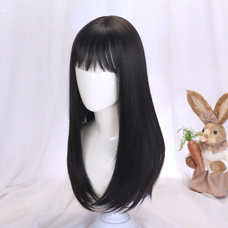 Wig for women with medium long hair, long straight hair, student hair set, jk hairstyle, daily full headgear, children's little girl's wig