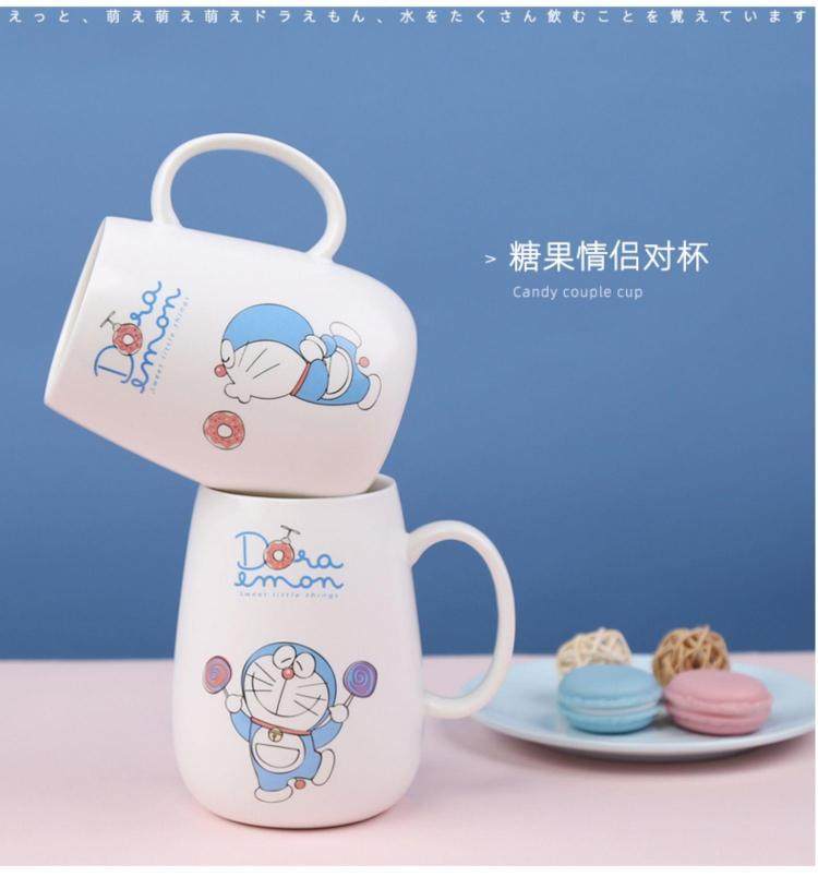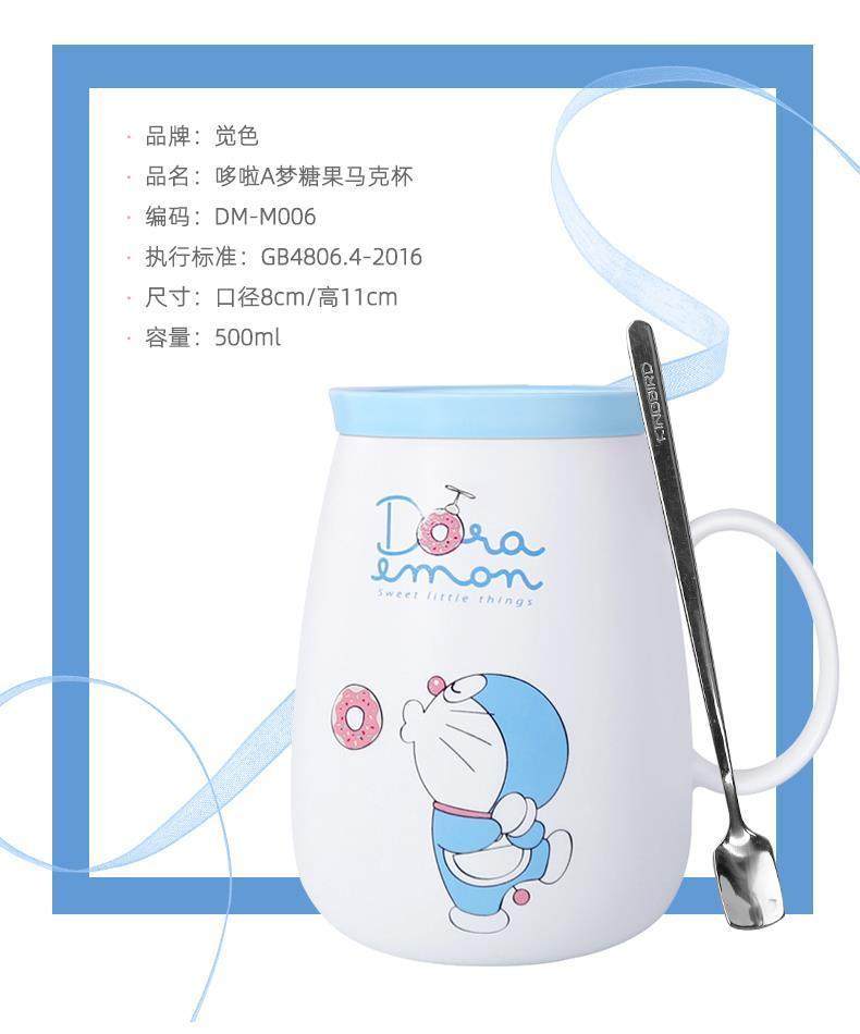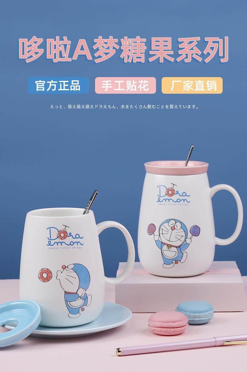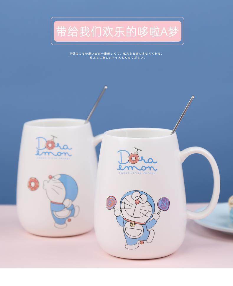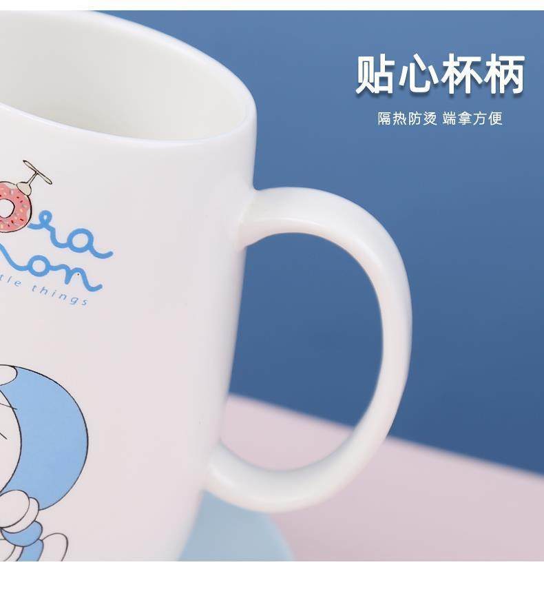 Doraemon mug ceramic blue fat jingle cat cup internet celebrity with lid spoon couple coffee cup birthday gift