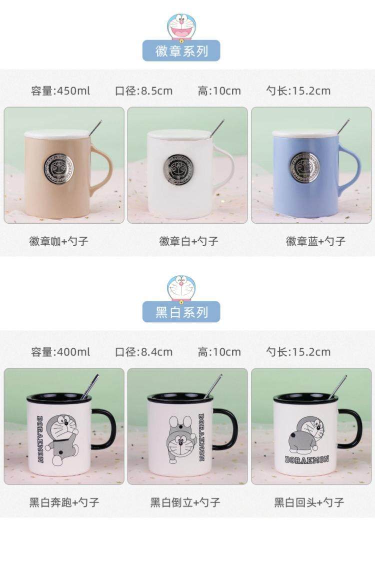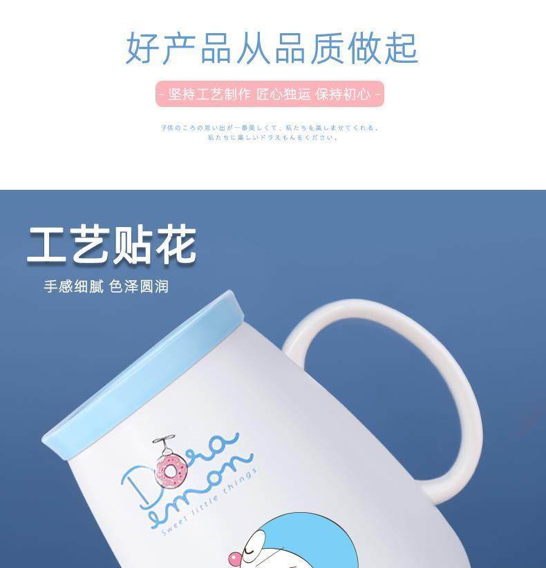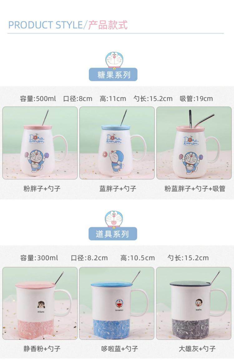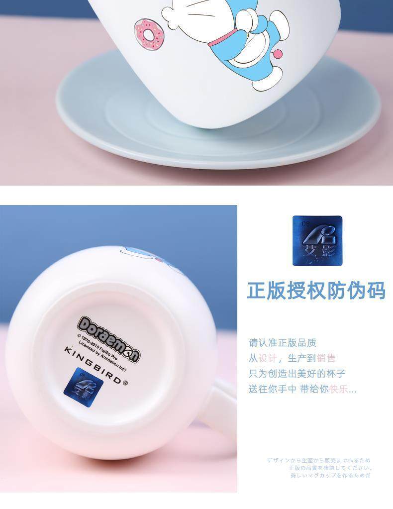 Doraemon mug ceramic blue fat jingle cat cup internet celebrity with lid spoon couple coffee cup birthday gift