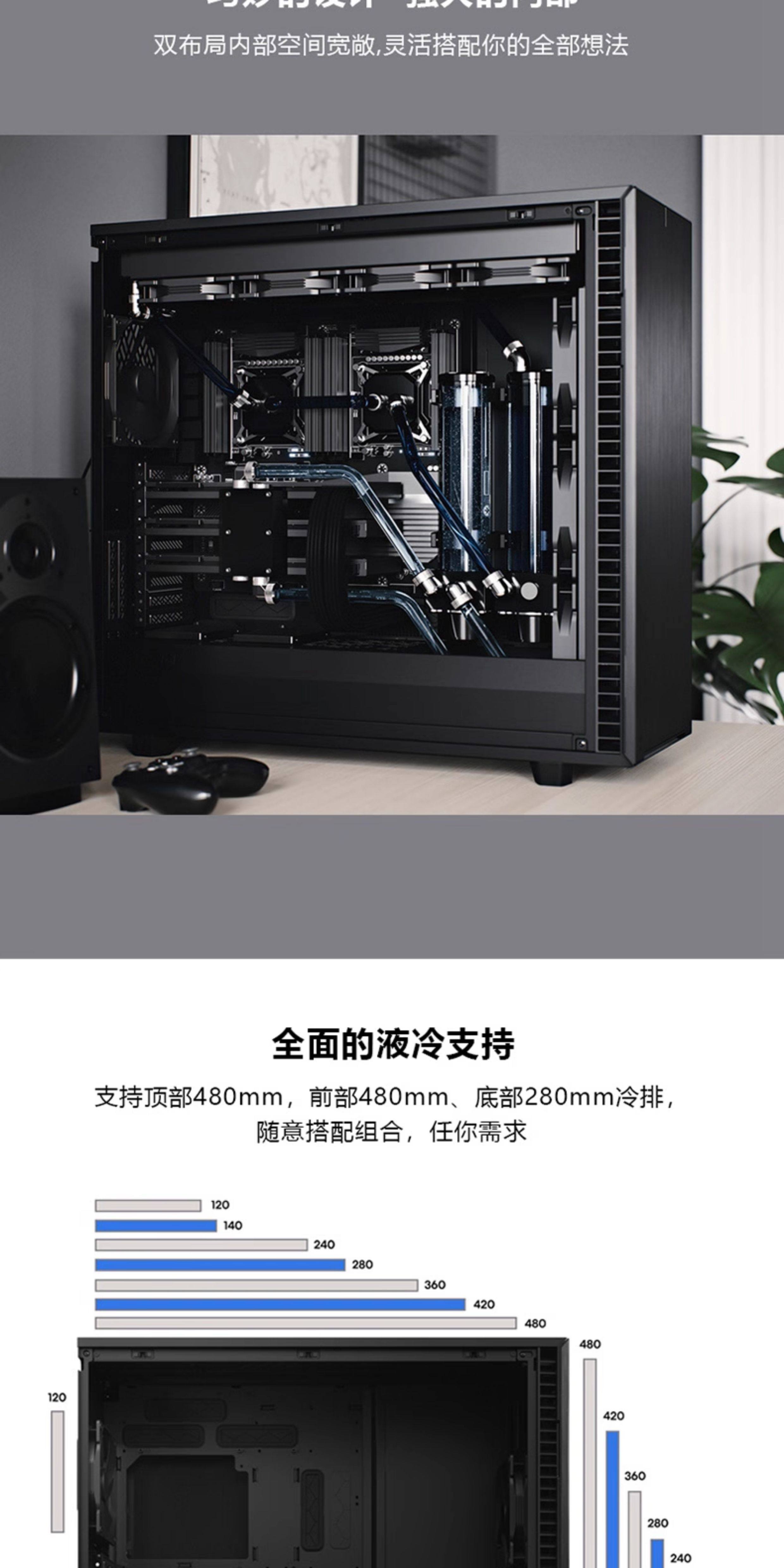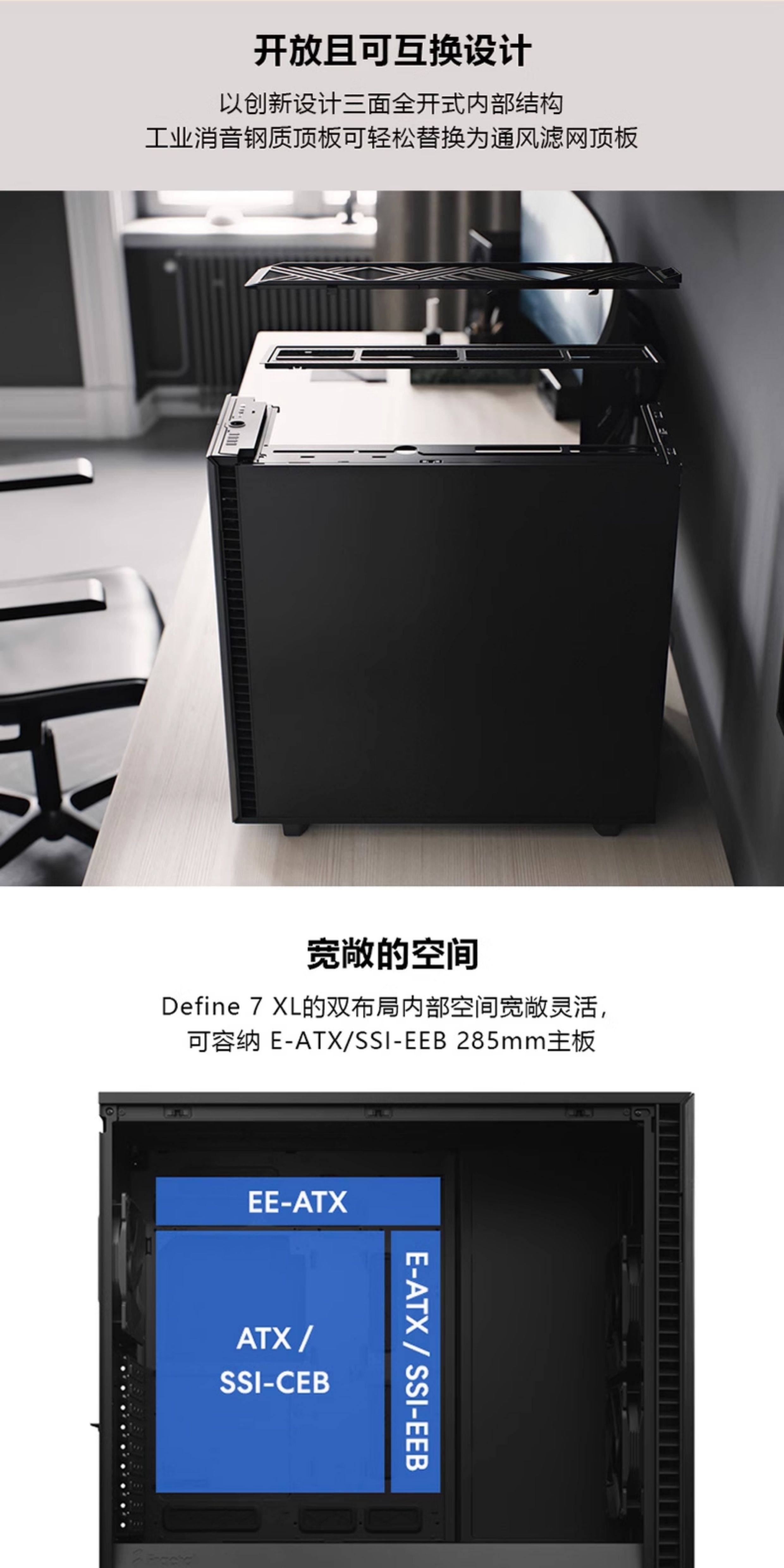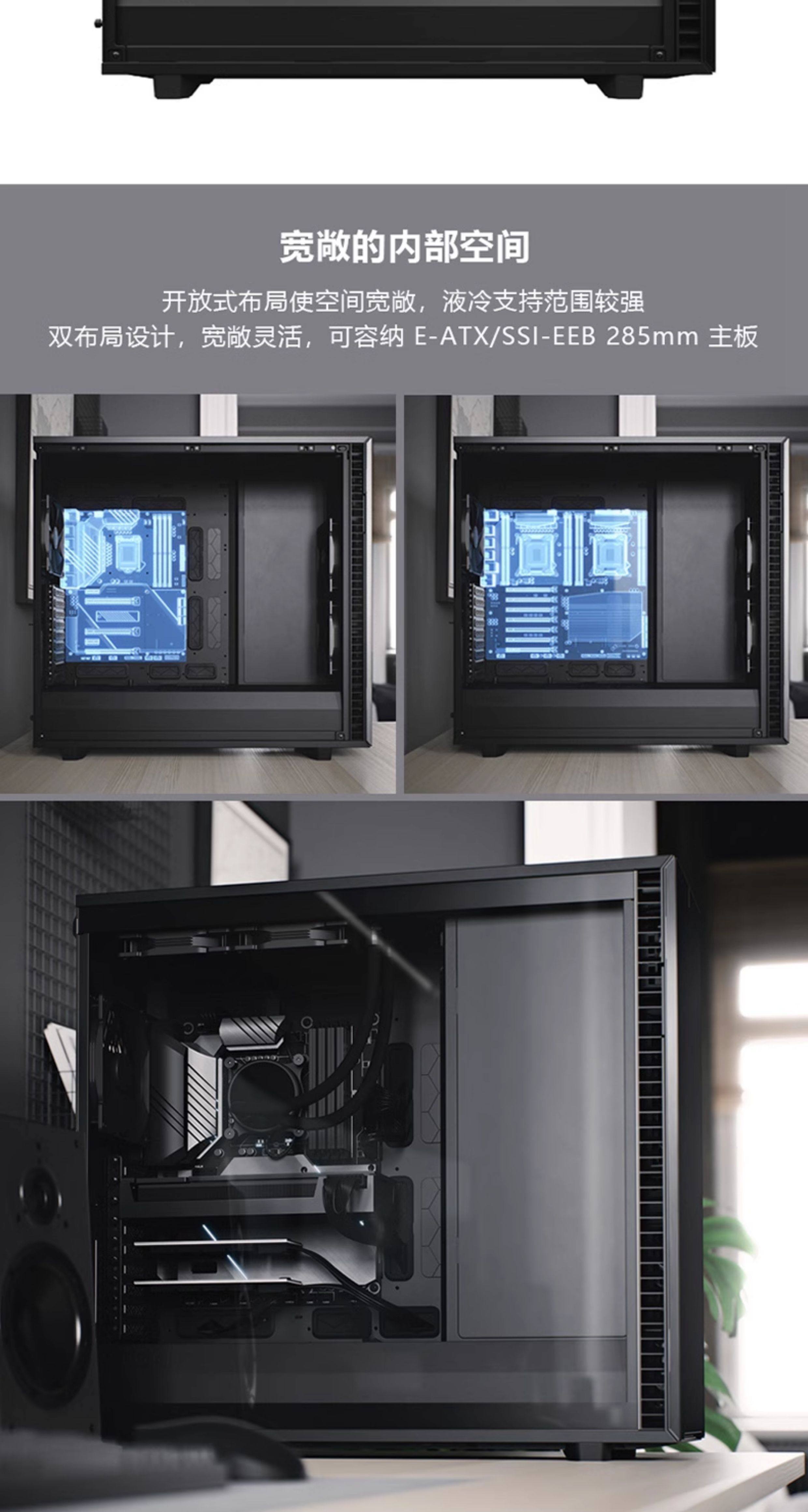 Fractal technology FD chassis Define7 XL full tower silent model side permeable water cooling bottom glass computer desktop