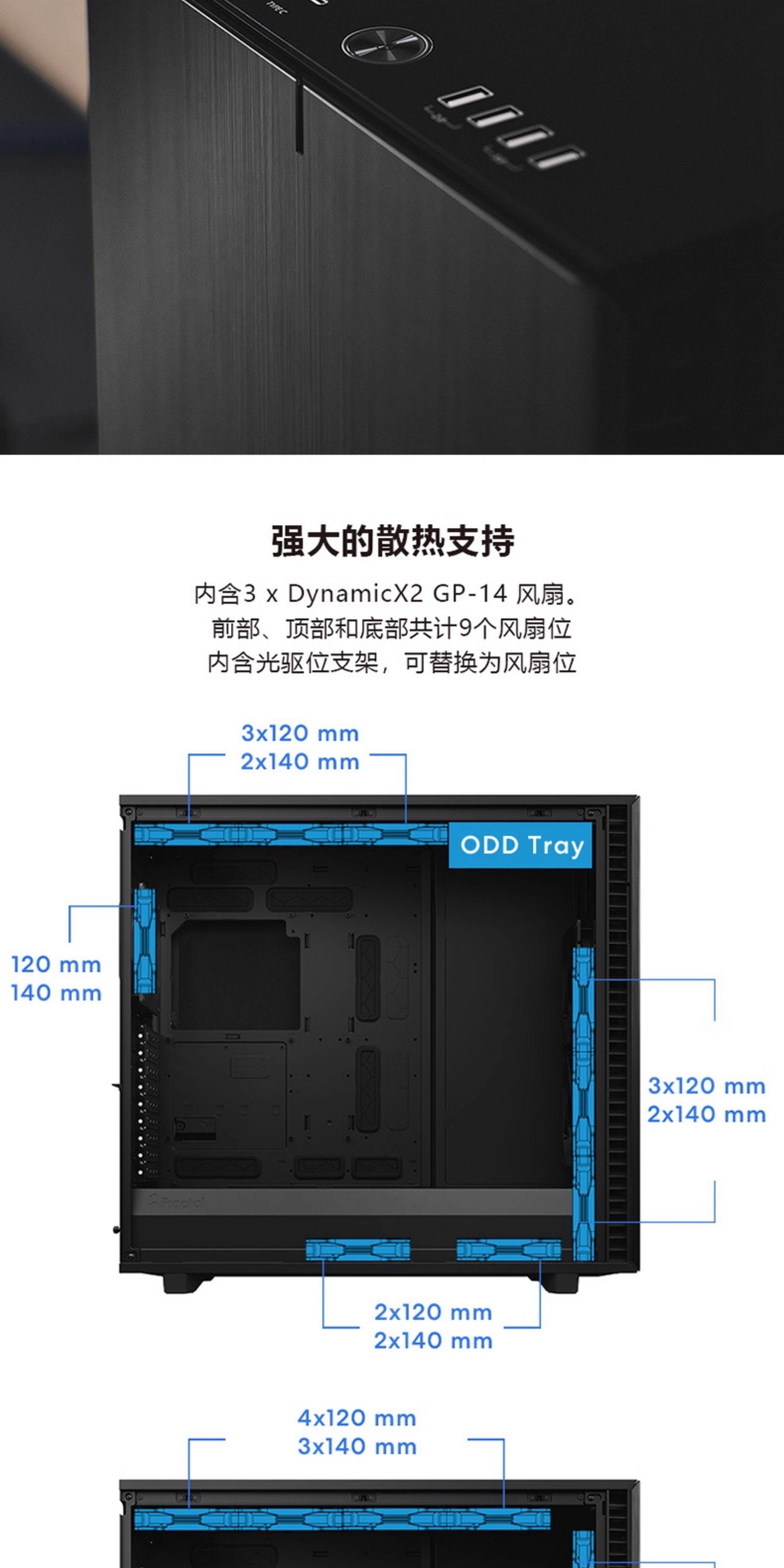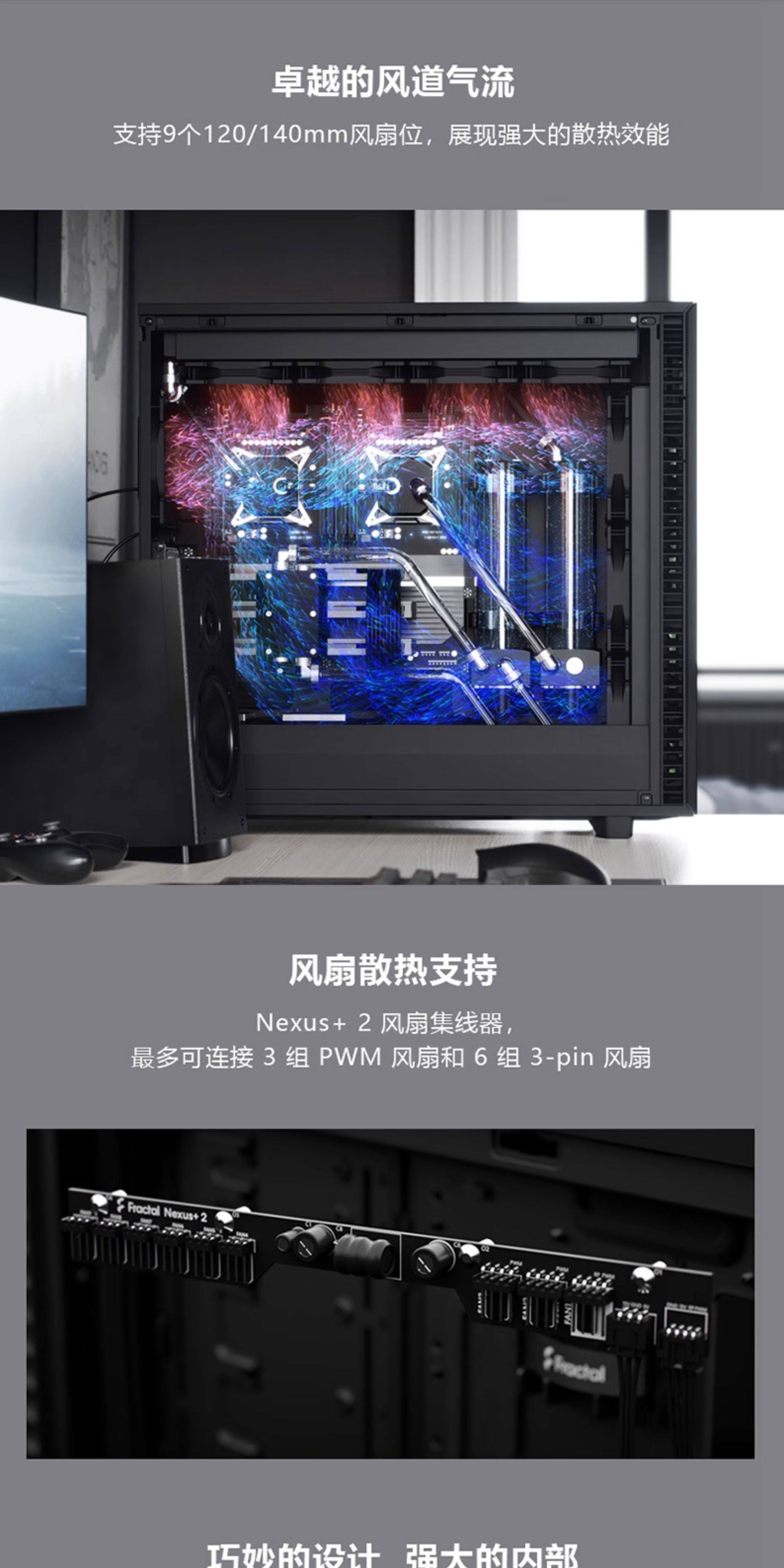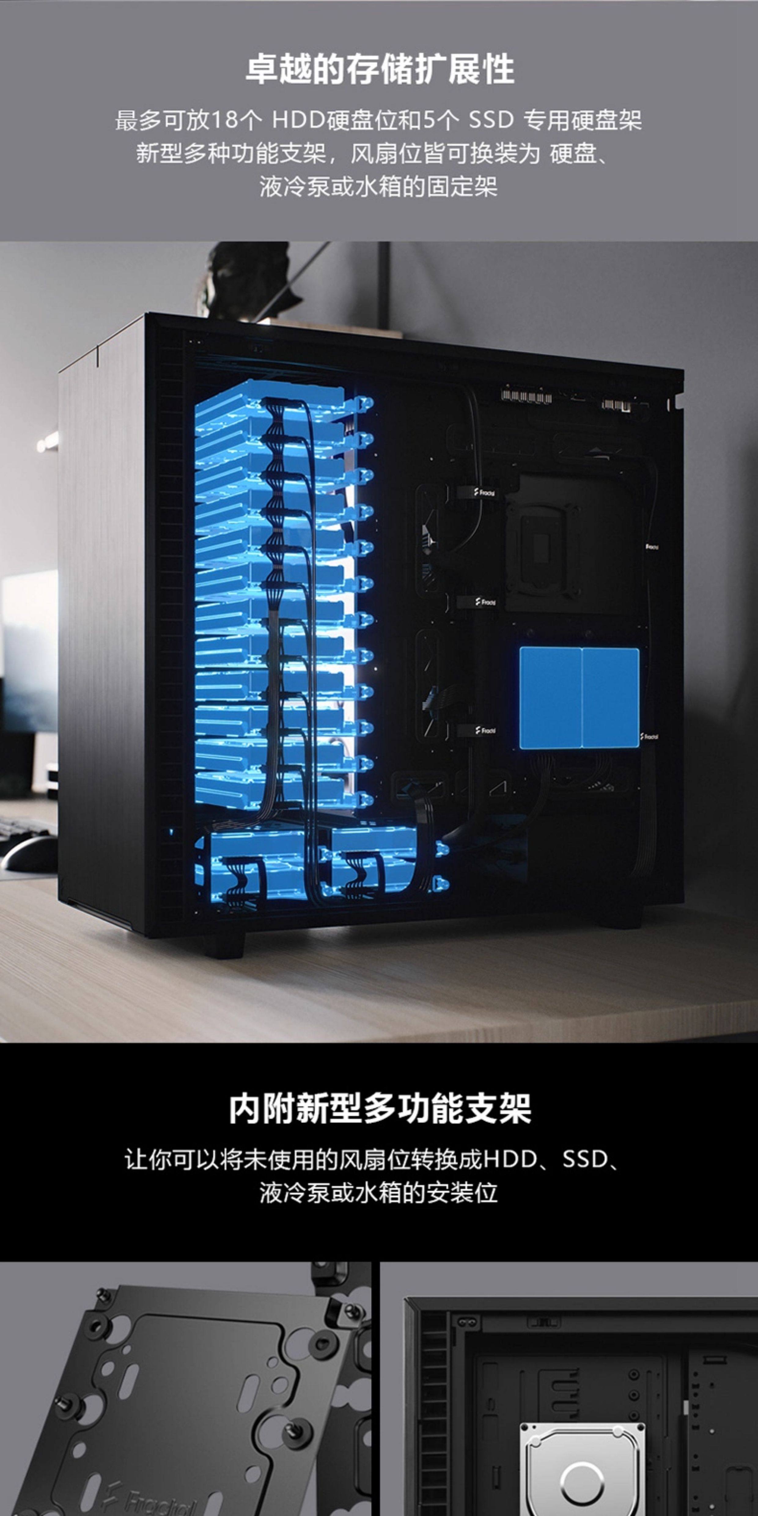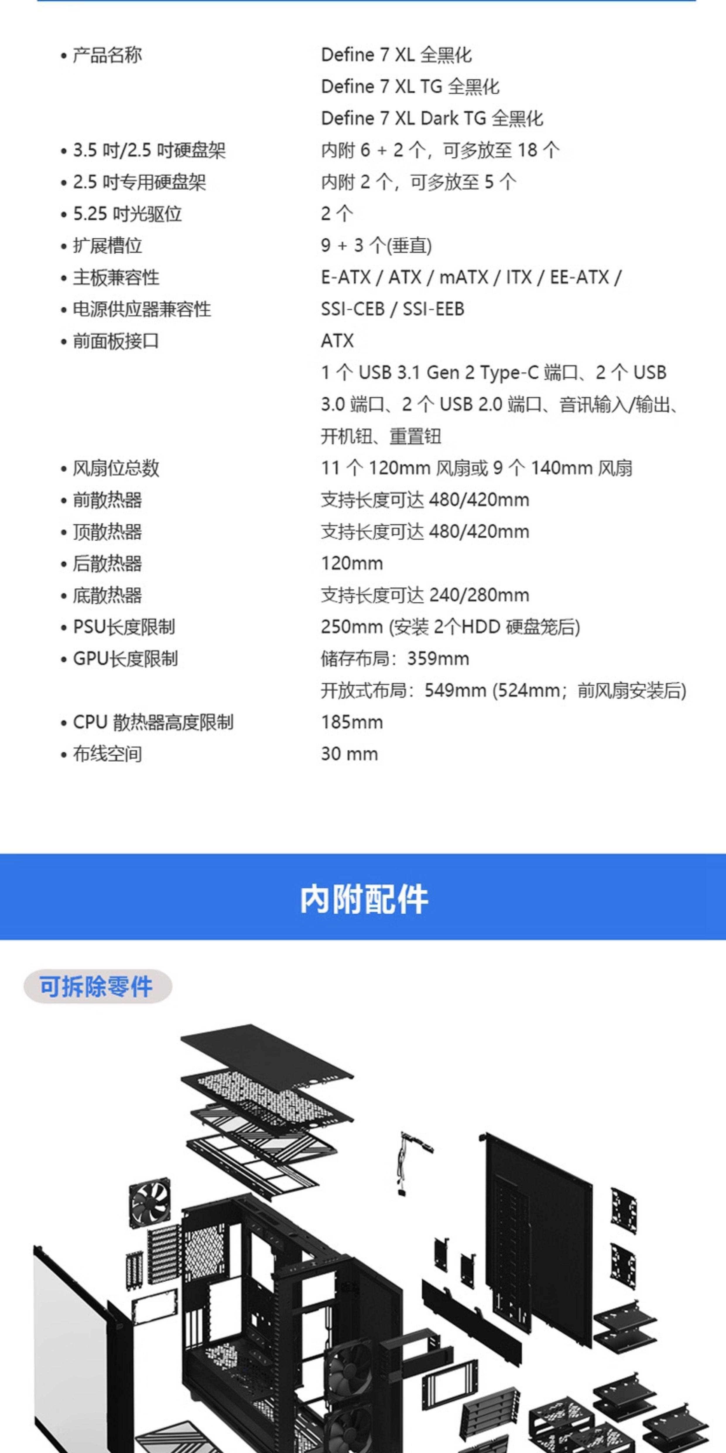 Fractal technology FD chassis Define7 XL full tower silent model side permeable water cooling bottom glass computer desktop