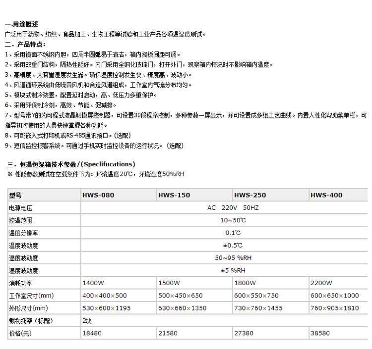 Shanghai Jinghong Hws-080/150 Constant Temperature and Humidity Chamber, Stainless Steel Inner Tank, Double Doors Inside and Outside, Multiple Protections