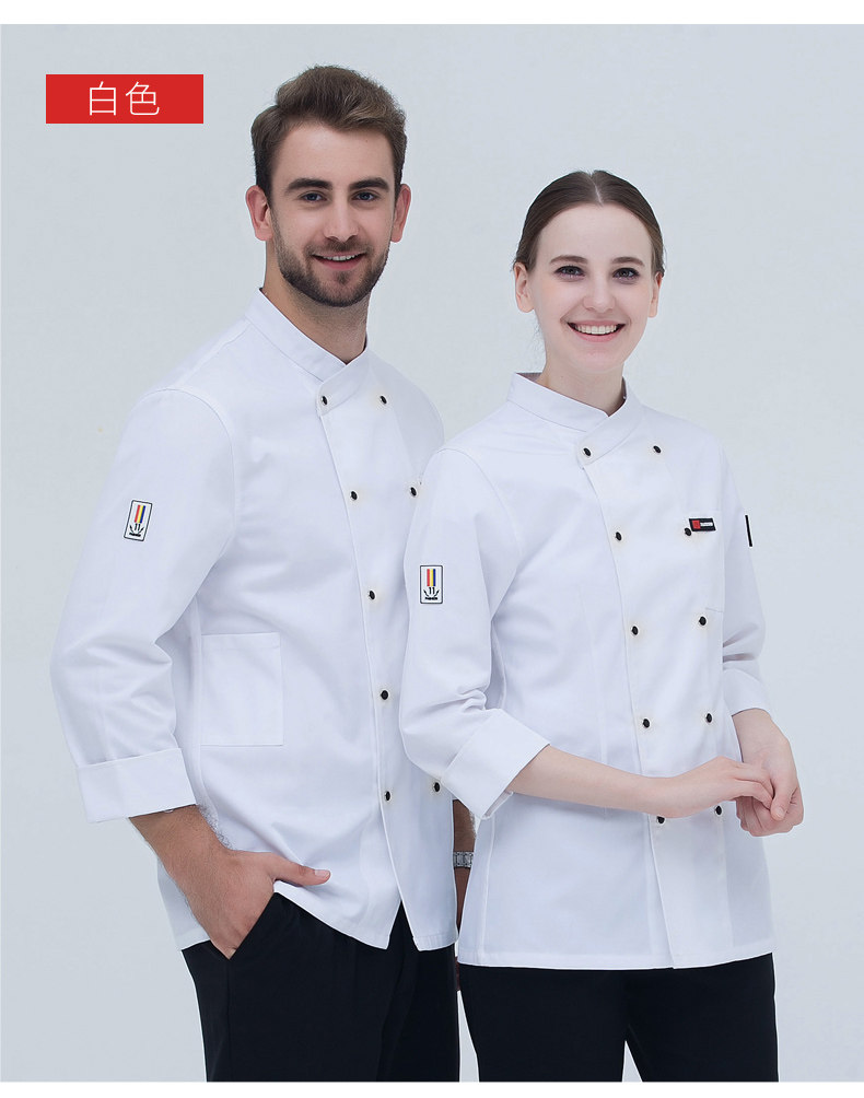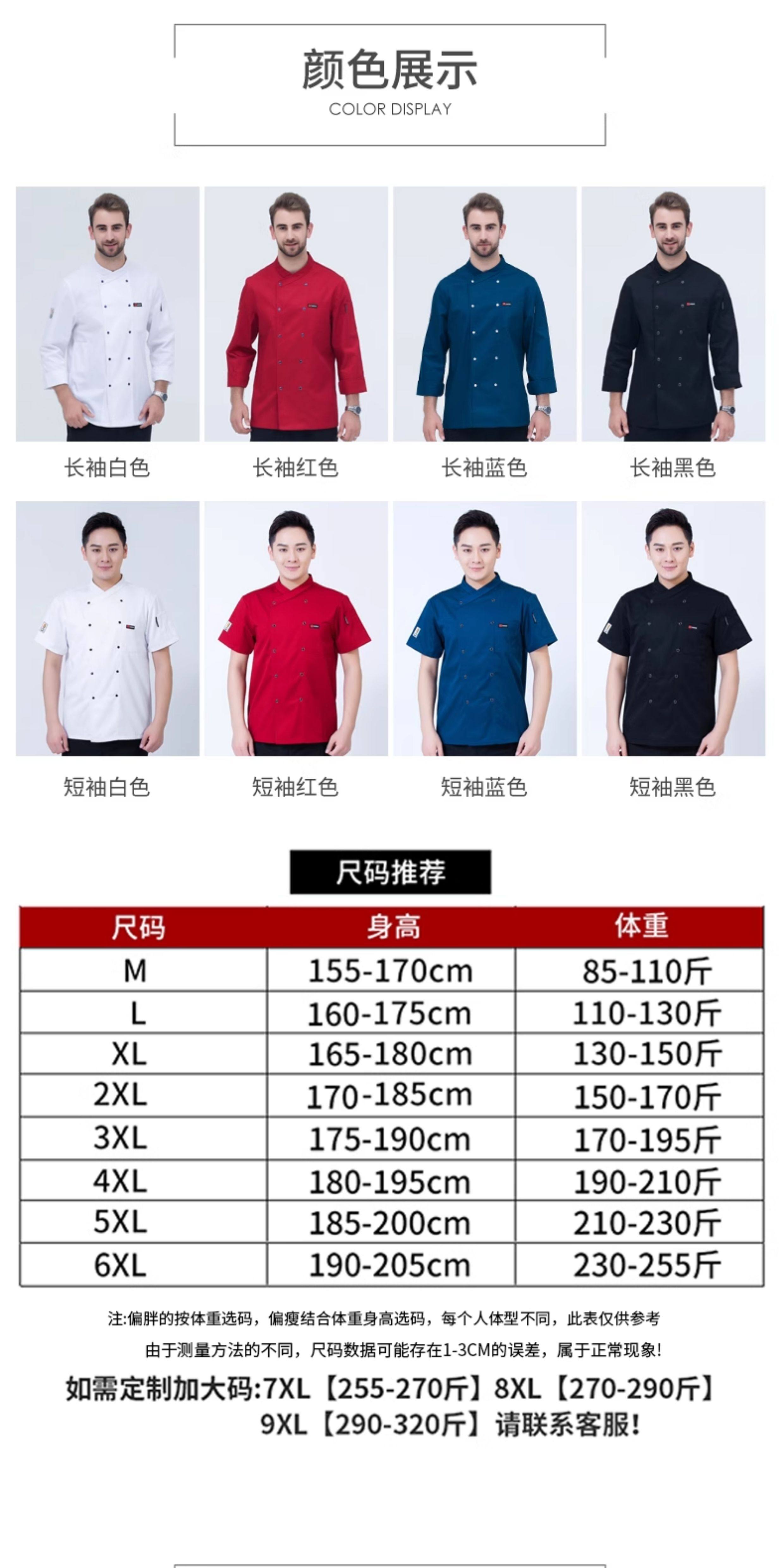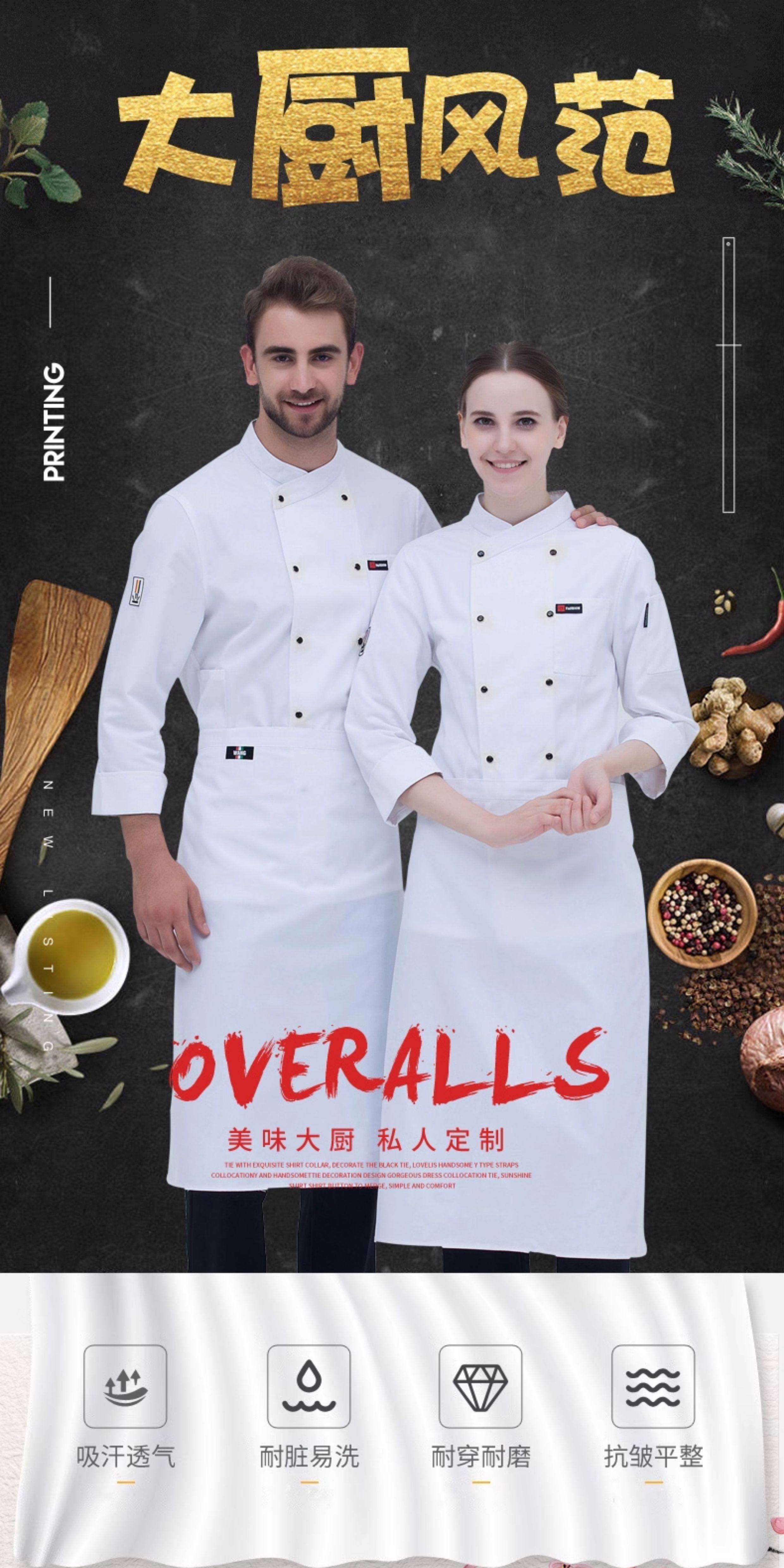 New hotel chef uniform long-sleeved suit men's kitchen hot pot restaurant catering chef overalls short-sleeved women's bakery shop