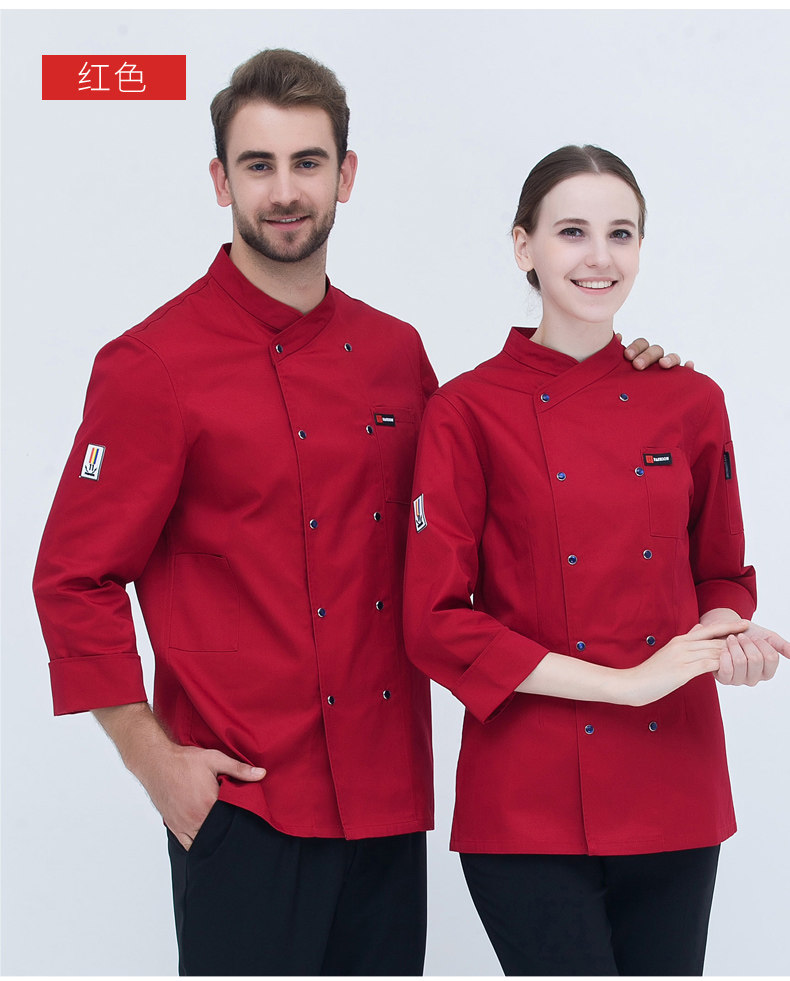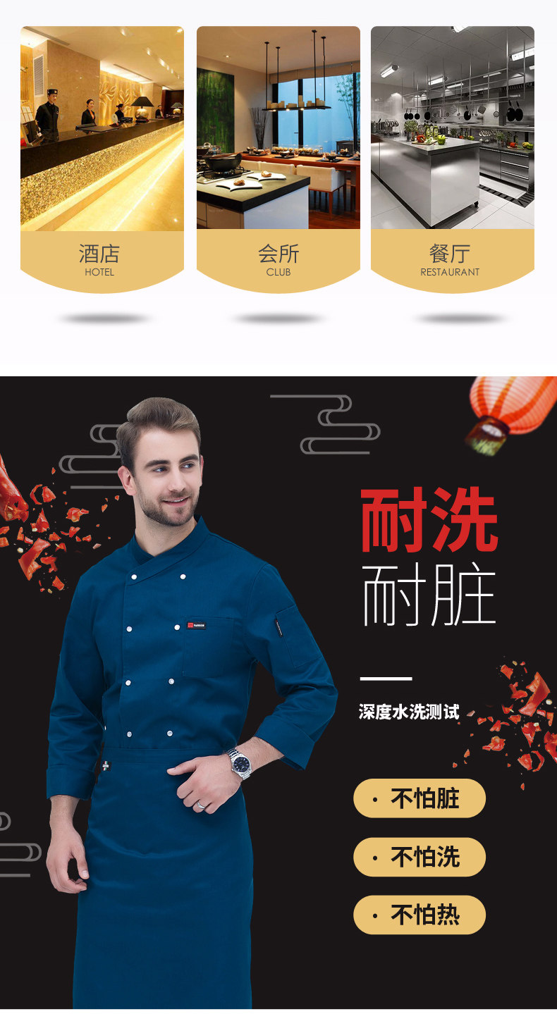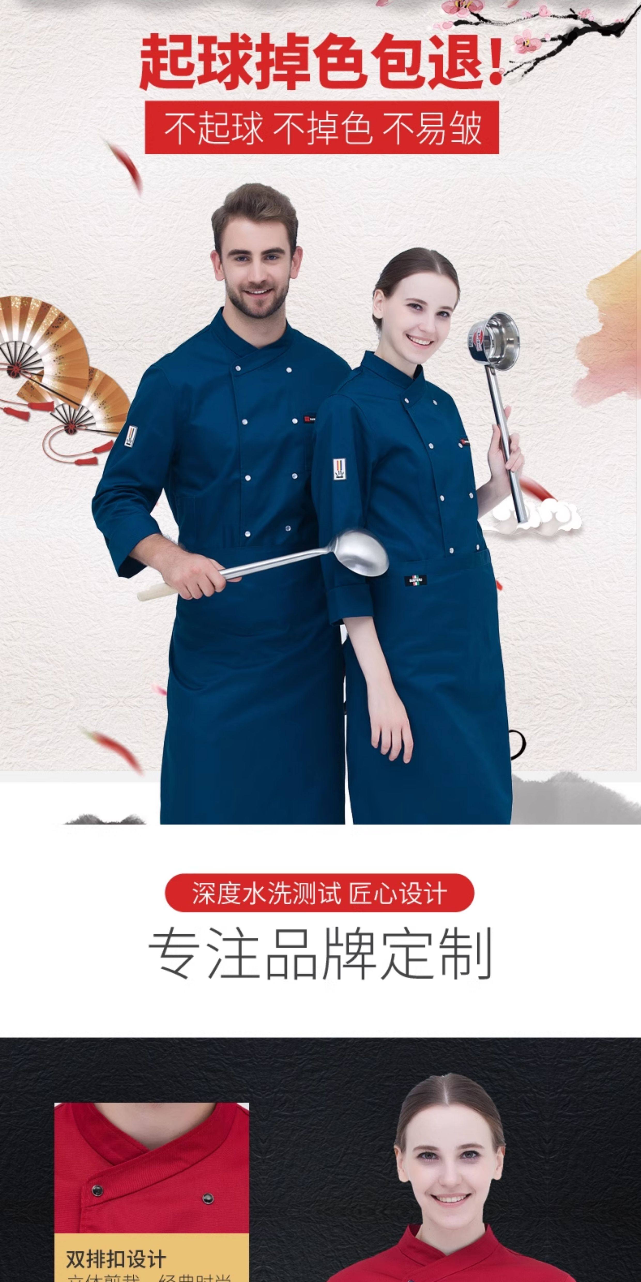 New hotel chef uniform long-sleeved suit men's kitchen hot pot restaurant catering chef overalls short-sleeved women's bakery shop