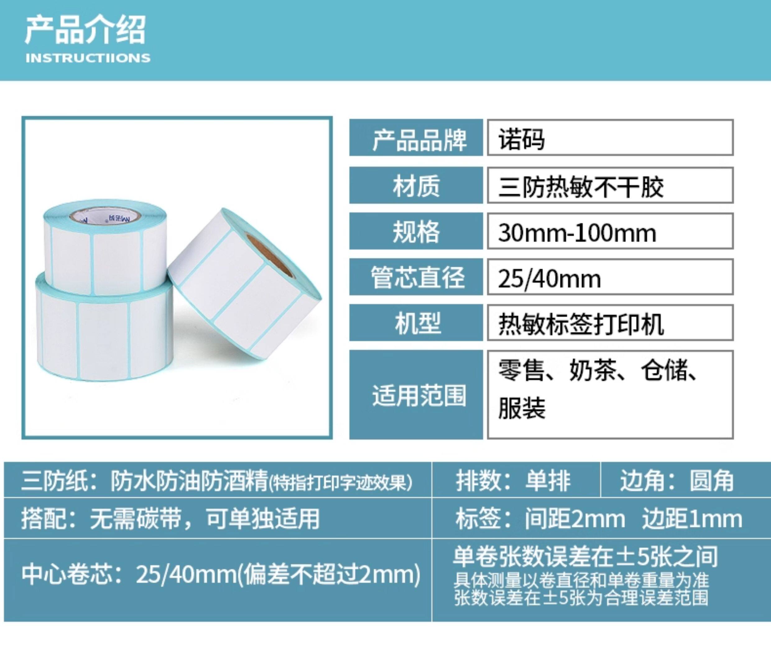 Three-Proof Thermal Printing Paper Self-Adhesive Label Paper 40X30 20 50 60 70 80 10% off Stack E-Mail Express 100 X100X150 Supermarket Price 30 Barcode Waterproof Sticker Electronic Scale Paper
