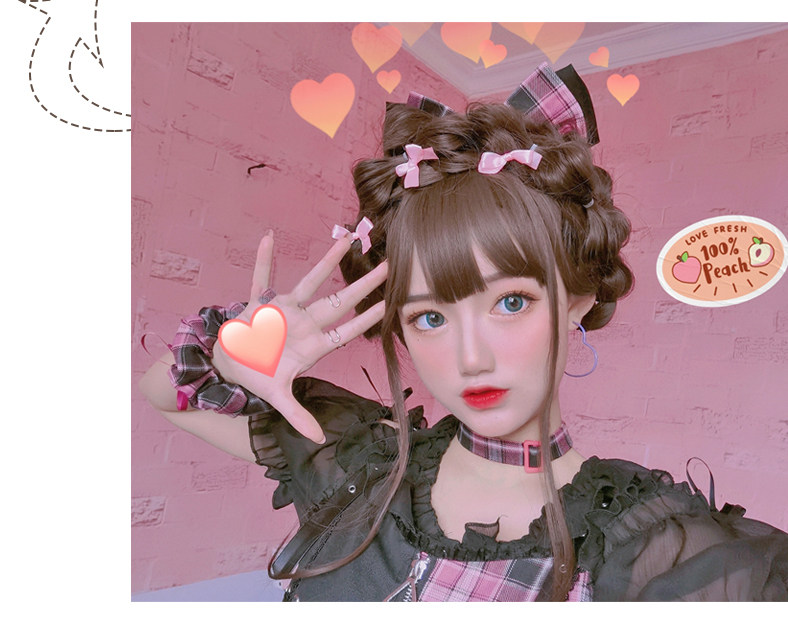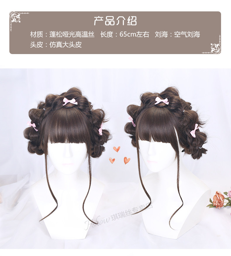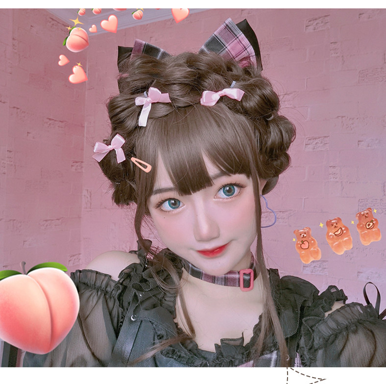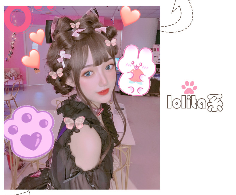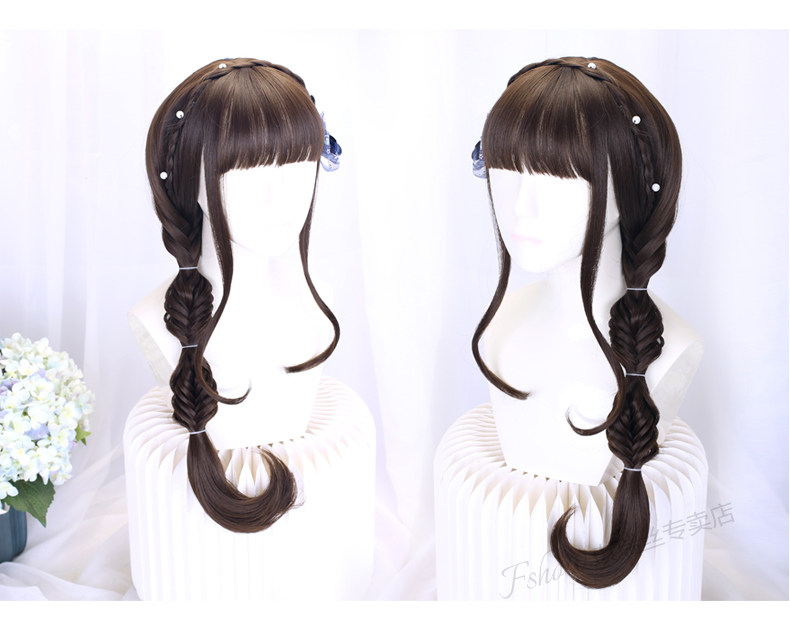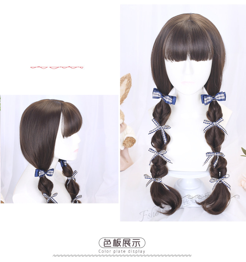 Lolita wig female long curly hair Lolita full head set hair set girl double ponytail braided style daily fake hair