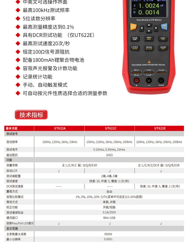 Color Classification Ut622A [10Khz],Ut622C [100Khz],Ut622E【100Khz】With Dcr Test,Utr-L100Ks-H [All Series Purchased Separately],Utr-L100K-H [Ut622A Purchased Separately]