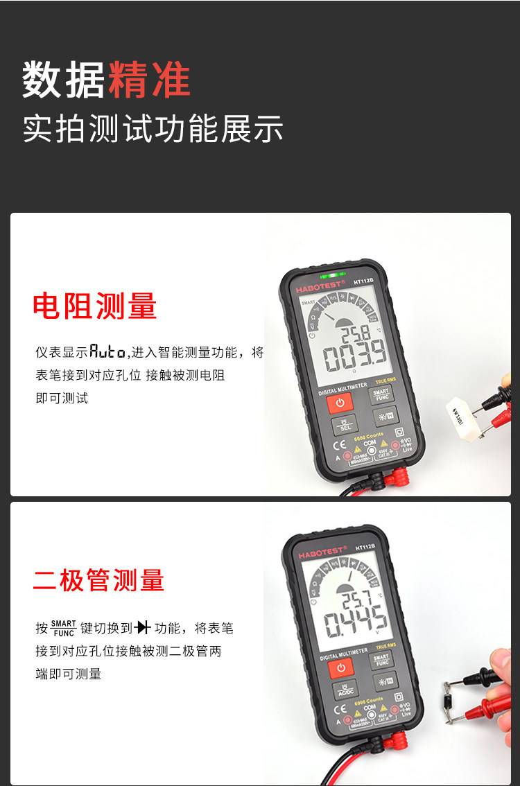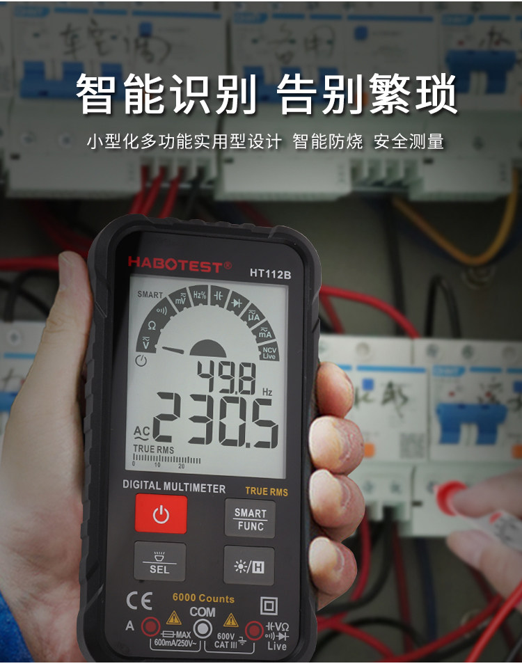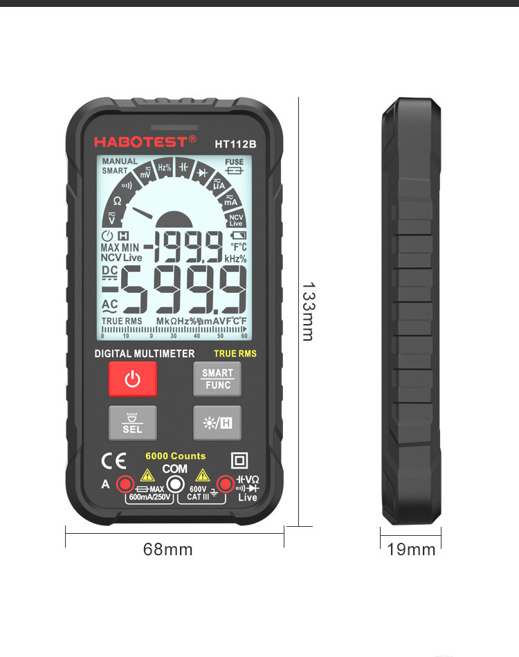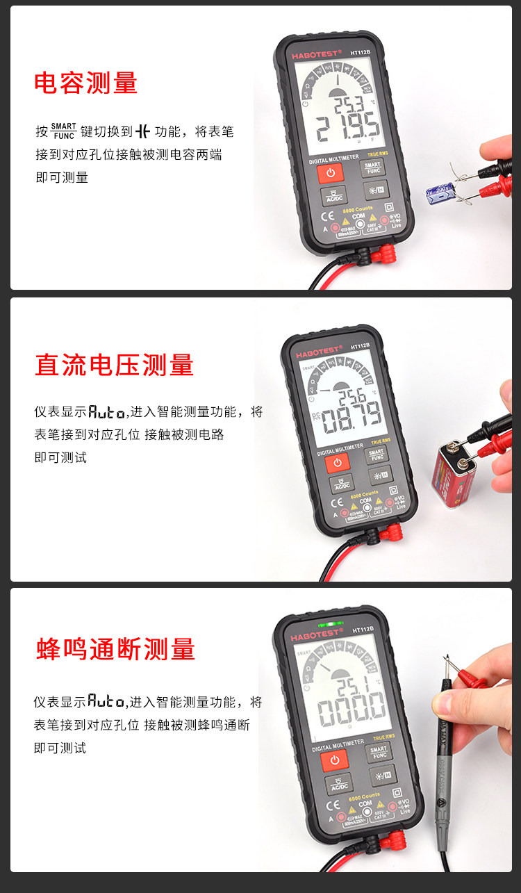 Habotest Ht112B Pocket Card-Type True Rms Auto-Range Plug-And-Play Electrician Multimeter