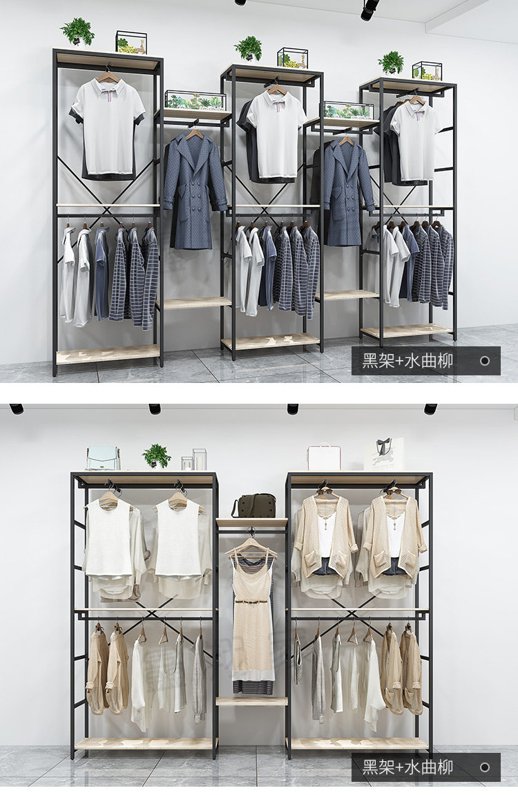Clothing store display rack double-layer iron clothing rack floor-standing men's and women's clothing shelves fashion store clothes rack