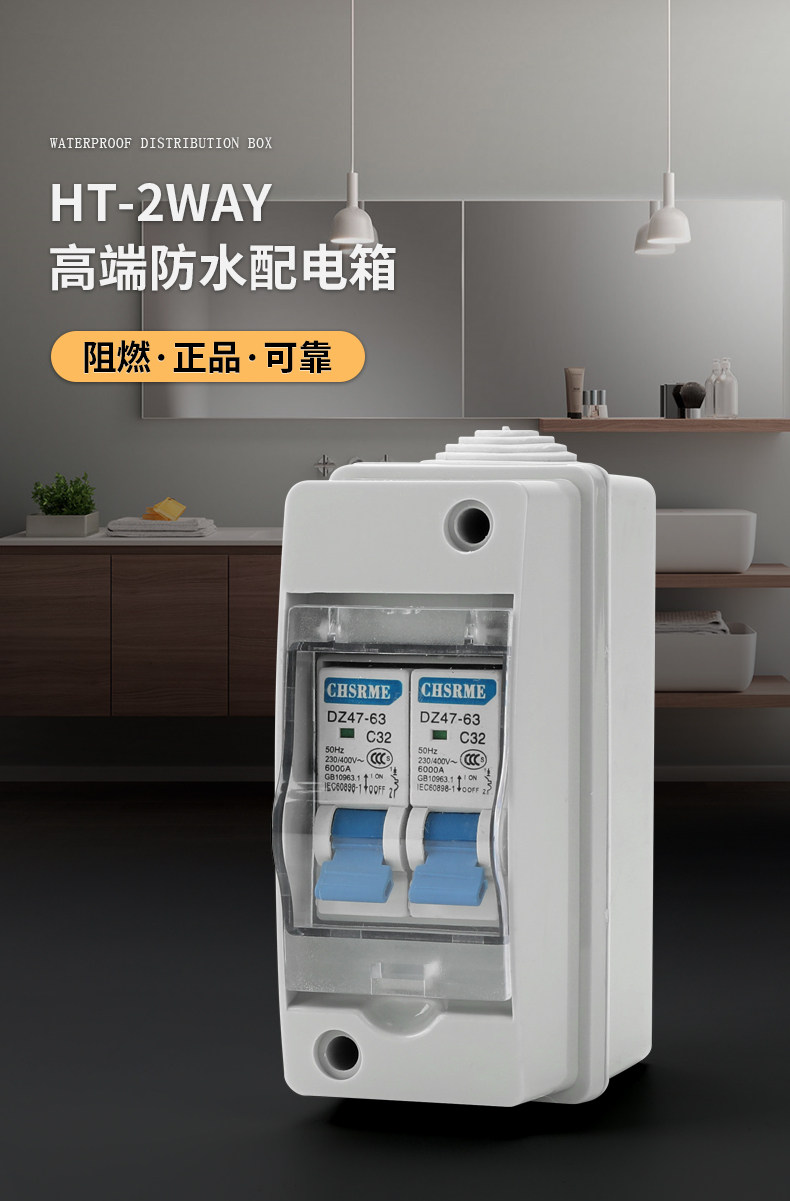 Waterproof Switch Outdoor Circuit Breaker Plastic Rainproof Distribution Box Outdoor Small 2-Circuit Circuit Breaker Box 65 Surface-Mounted