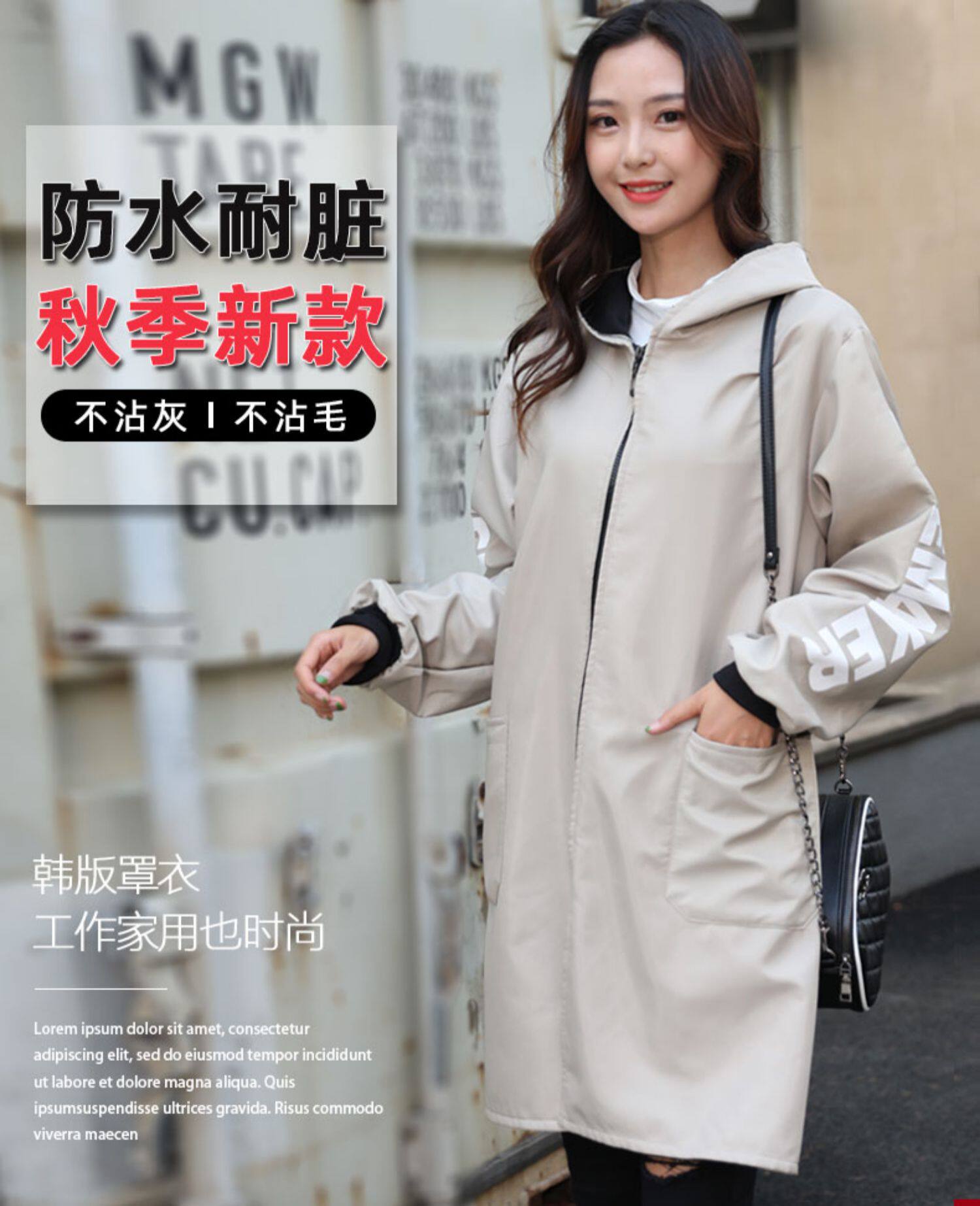 Smock, long-sleeved coat, apron, work clothes, thin velvet top, adult and female fashionable home kitchen waterproof and oil-proof