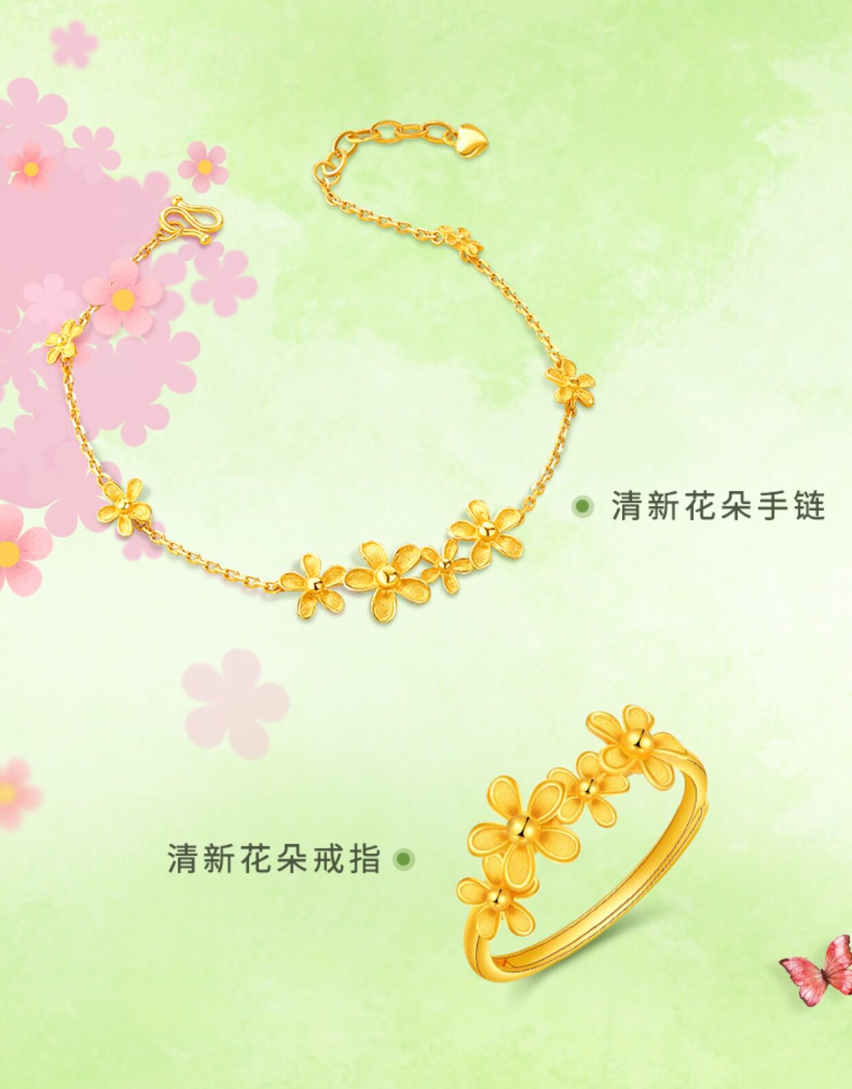 Cai Baihua Garden Secret Garden Series Gold Necklace Pure Gold Fresh Flower Pendant Clavicle Chain for Women