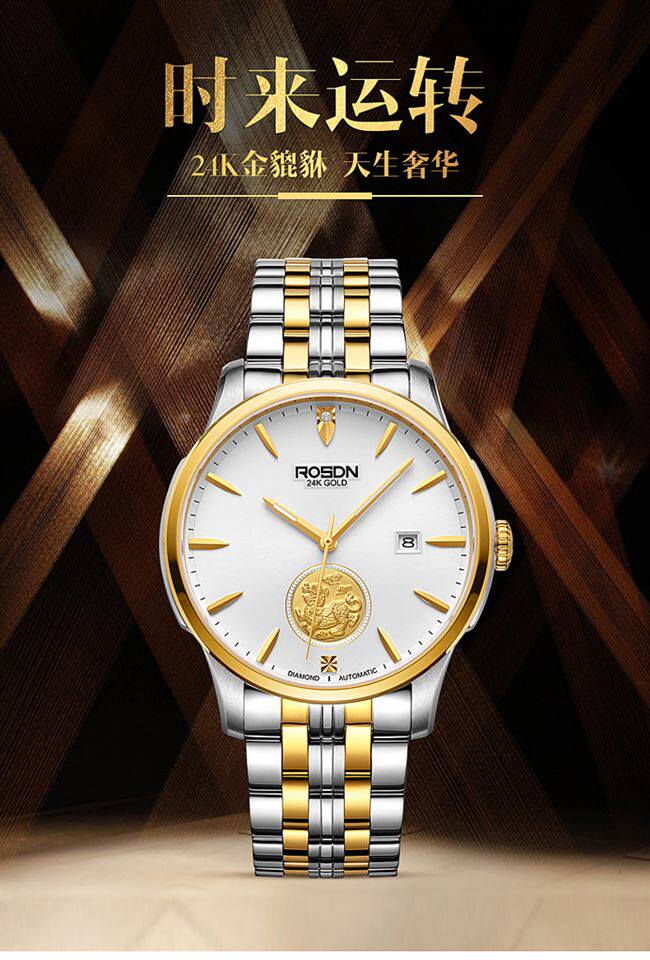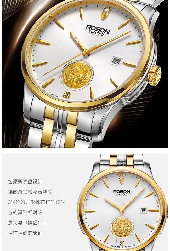 Authentic Laosdon Watches from the Store, Men's and Women's Couple Models, Fully Automatic Mechanical Watches, Waterproof, 24K Gold-Plated Watch 2163