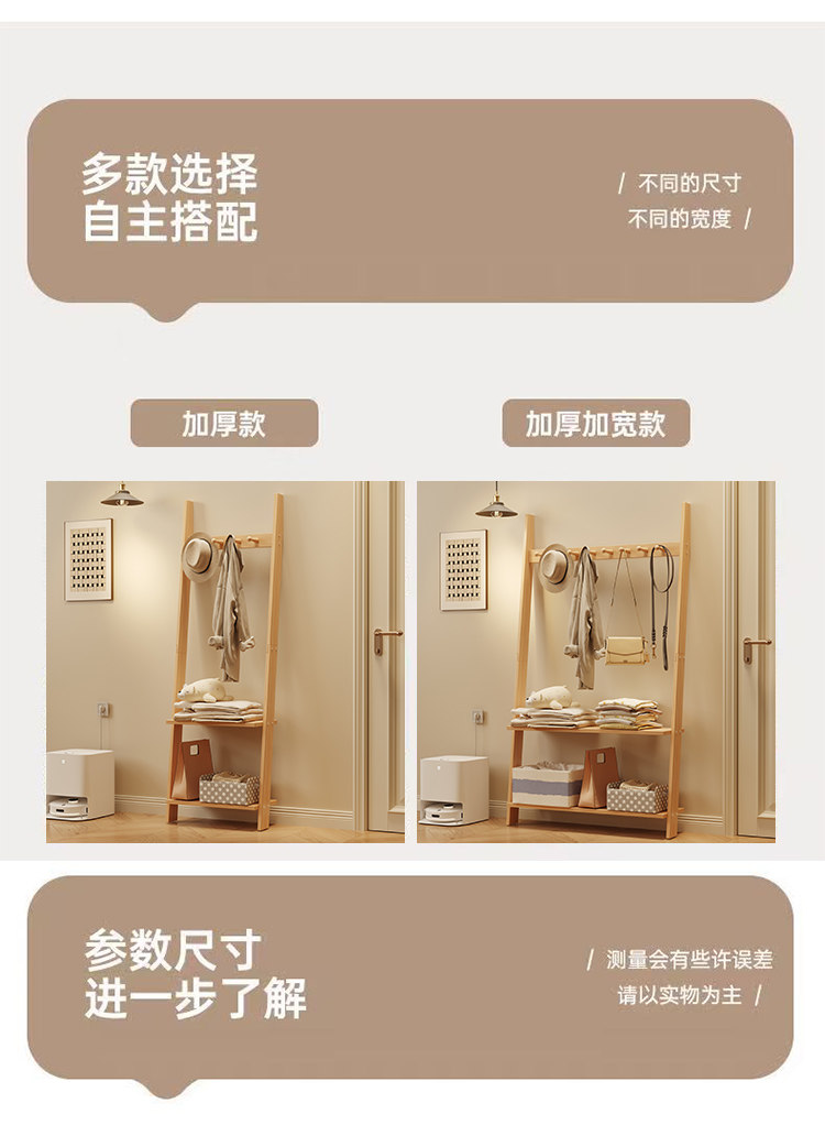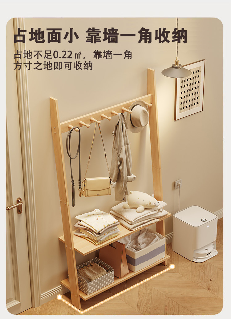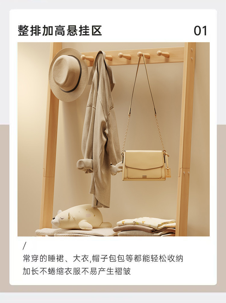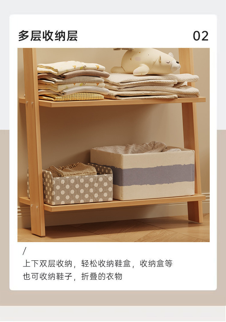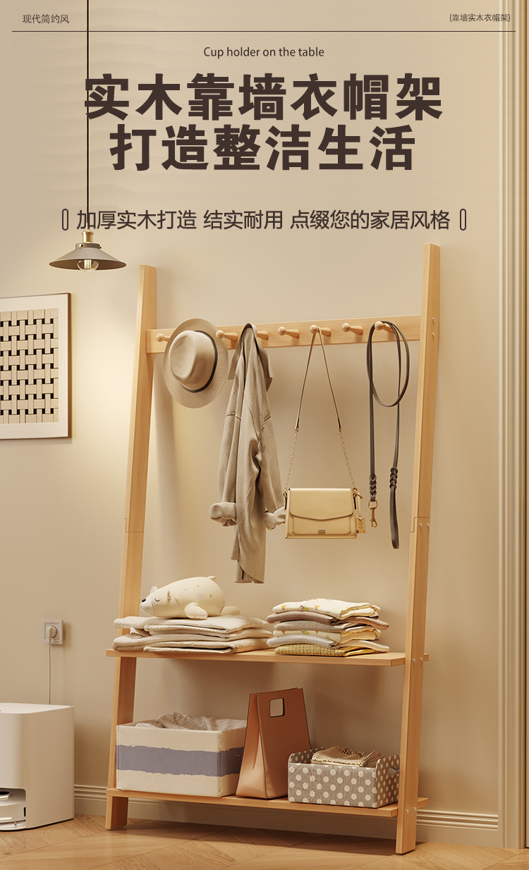 Solid Wood Coat Rack, Simple Floor-Standing Living Room and Bedroom Clothes Rack, Cabinet, Simple Modern Multi-Functional Clothes Storage Rack