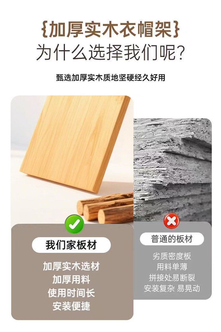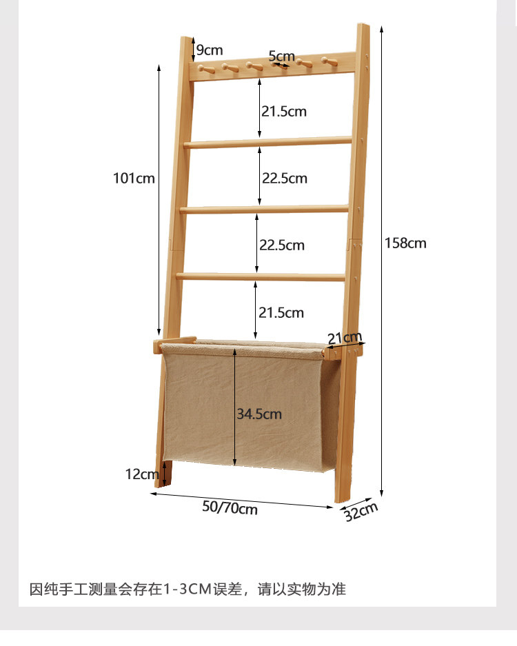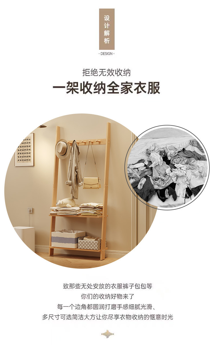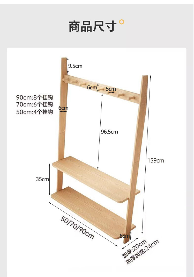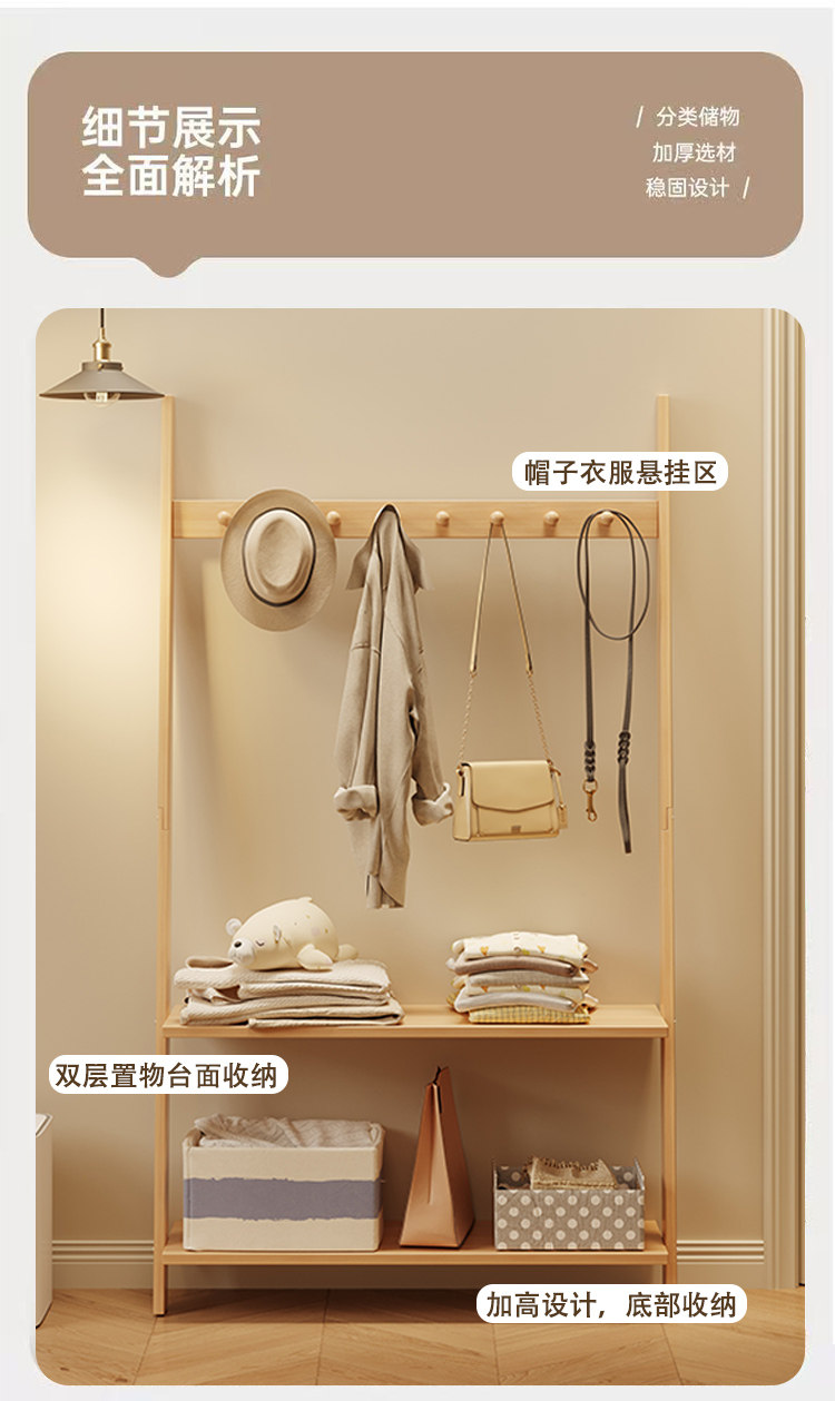 Solid Wood Coat Rack, Simple Floor-Standing Living Room and Bedroom Clothes Rack, Cabinet, Simple Modern Multi-Functional Clothes Storage Rack