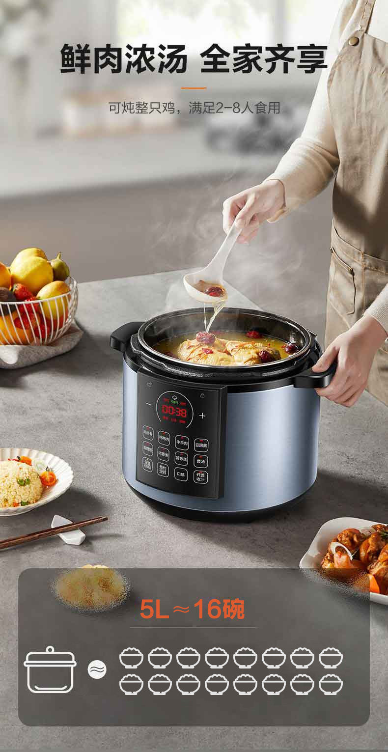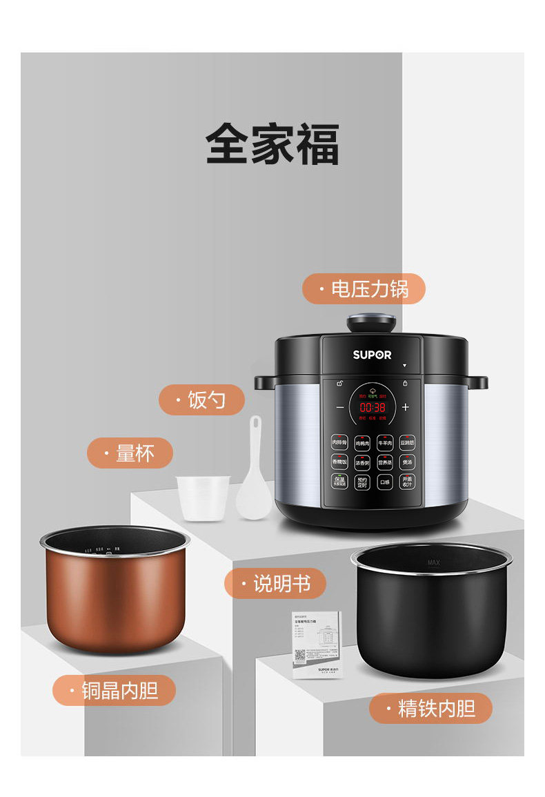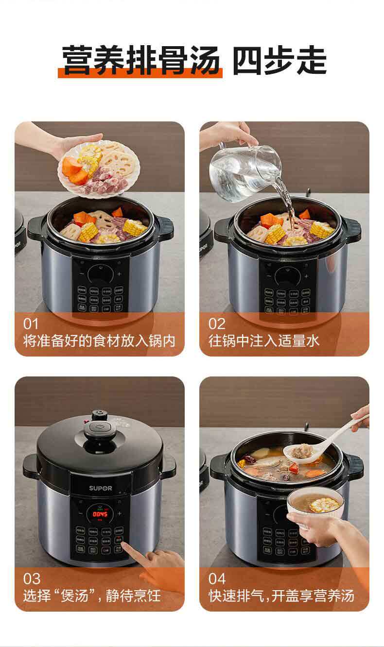 Supor electric pressure cooker 5L electric pressure cooker rice cooker fully automatic official flagship genuine smart home