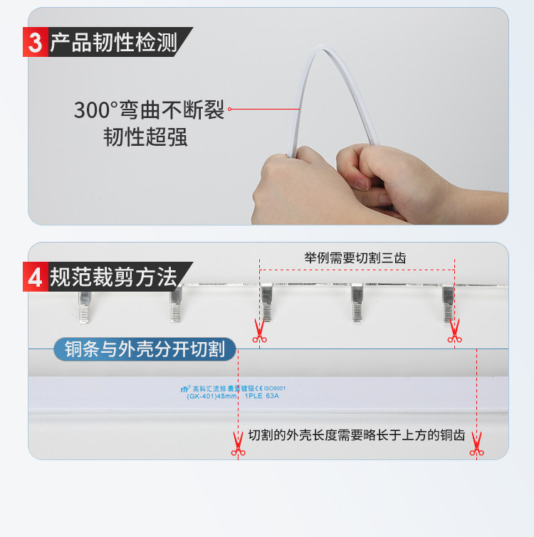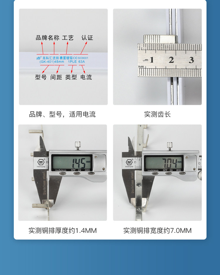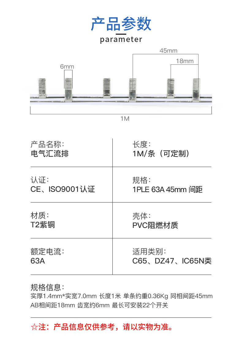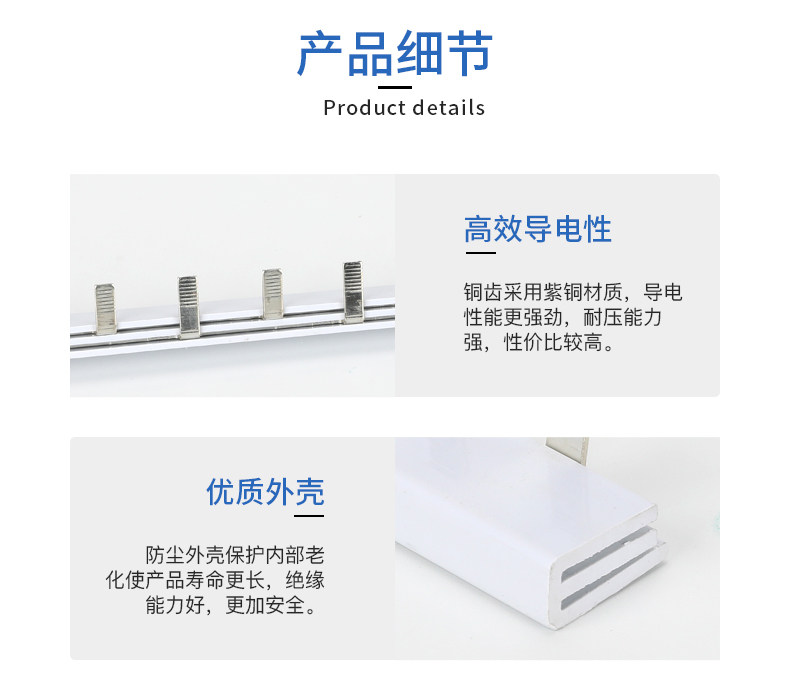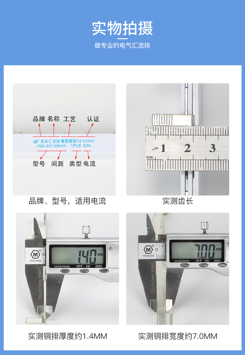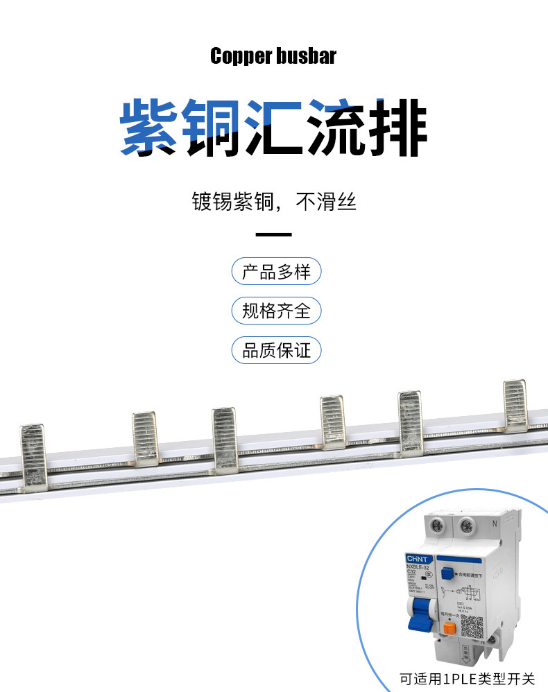 Electrical Busbar 1Ple 63A Copper Circuit Breaker Leakage Protection Connection Bar Wiring Bar Copper Bar Busbar