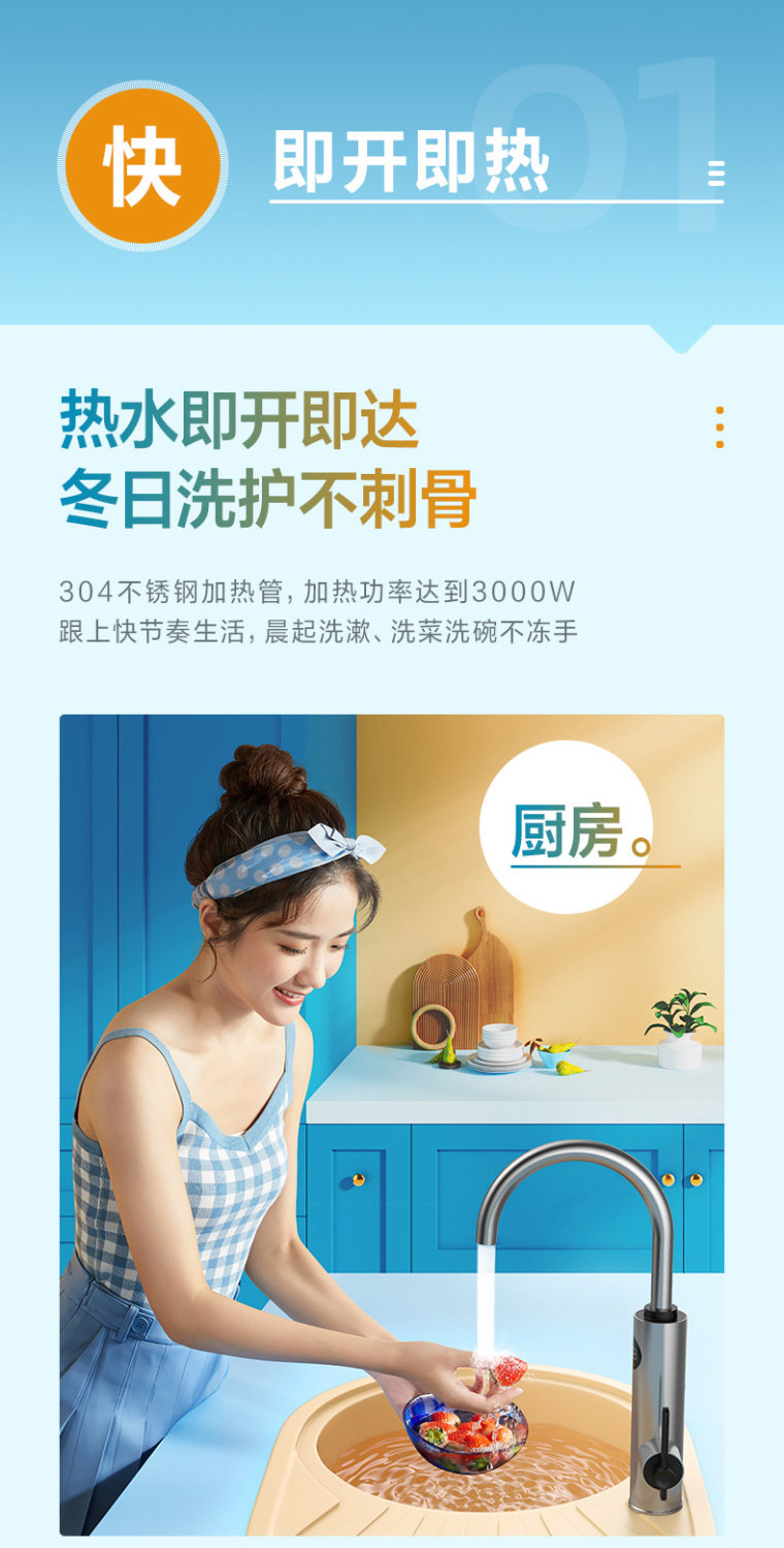 Midea Hualing Instant Hot and Cold Water Faucet for Home Kitchen, Instant Hot Water Dispenser for Bathroom