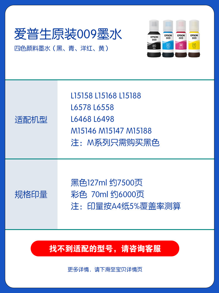 Epson 009L15158/15168 Original Ink 6558/6578/6468/6498m15146/15147