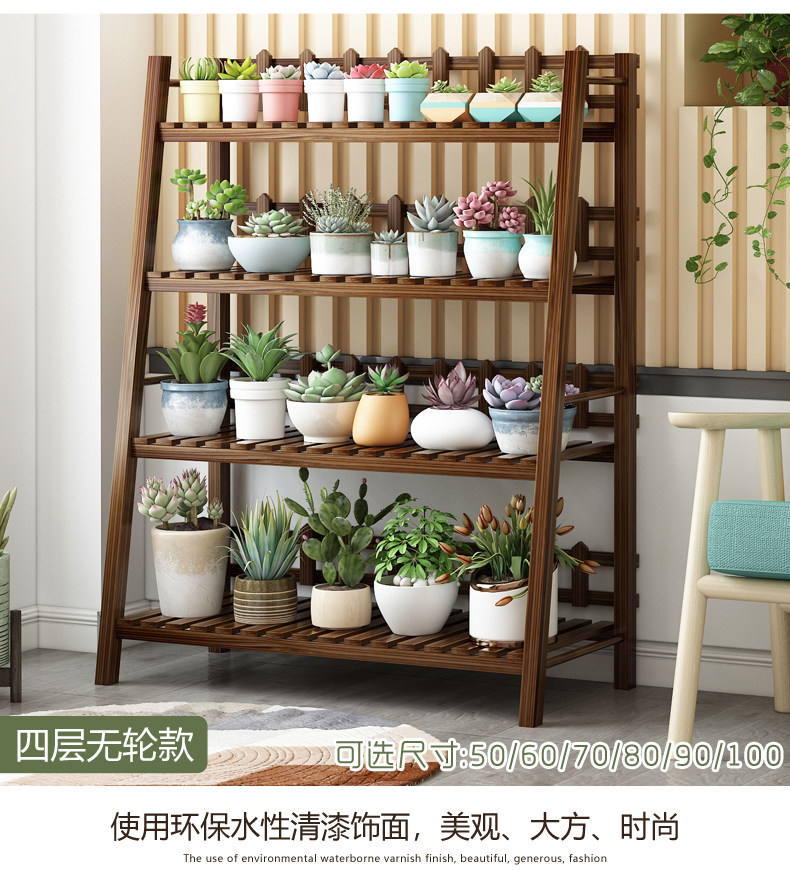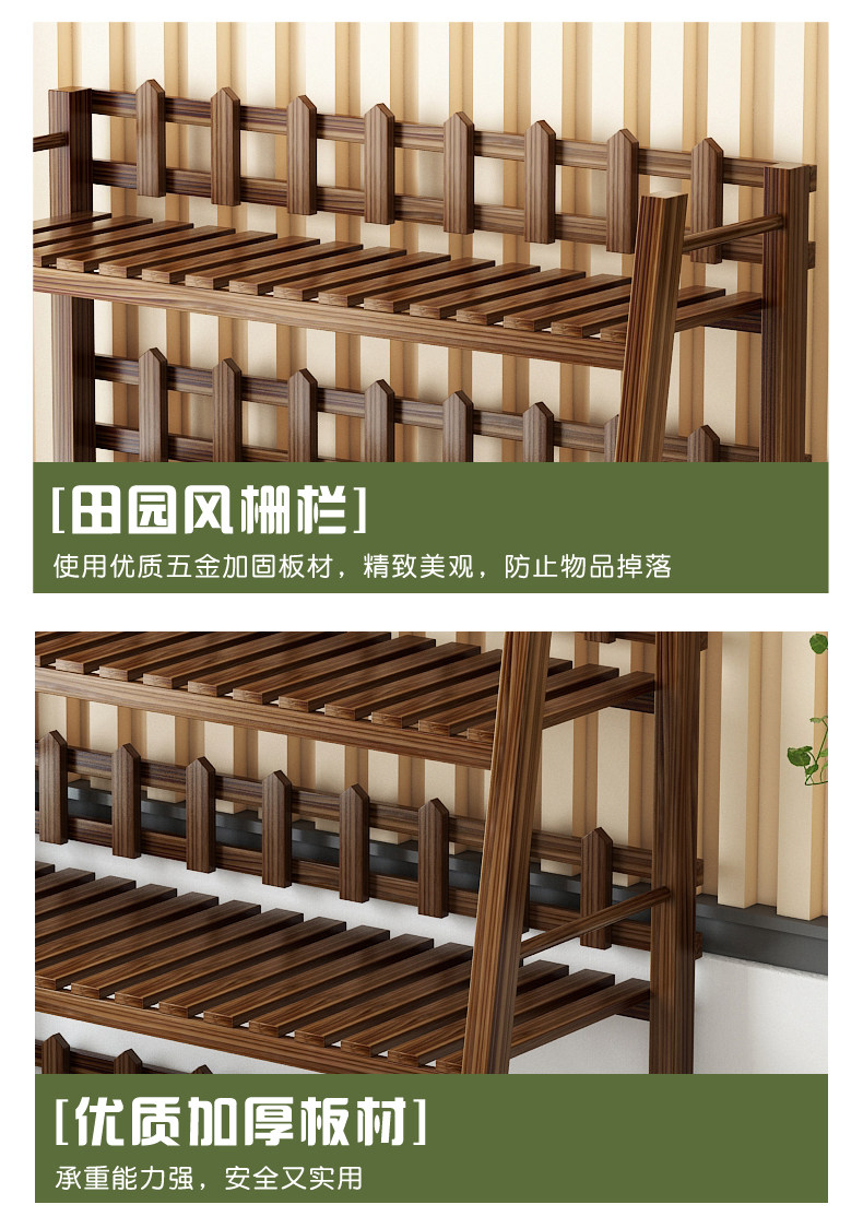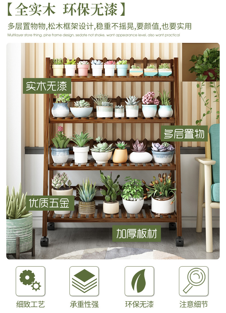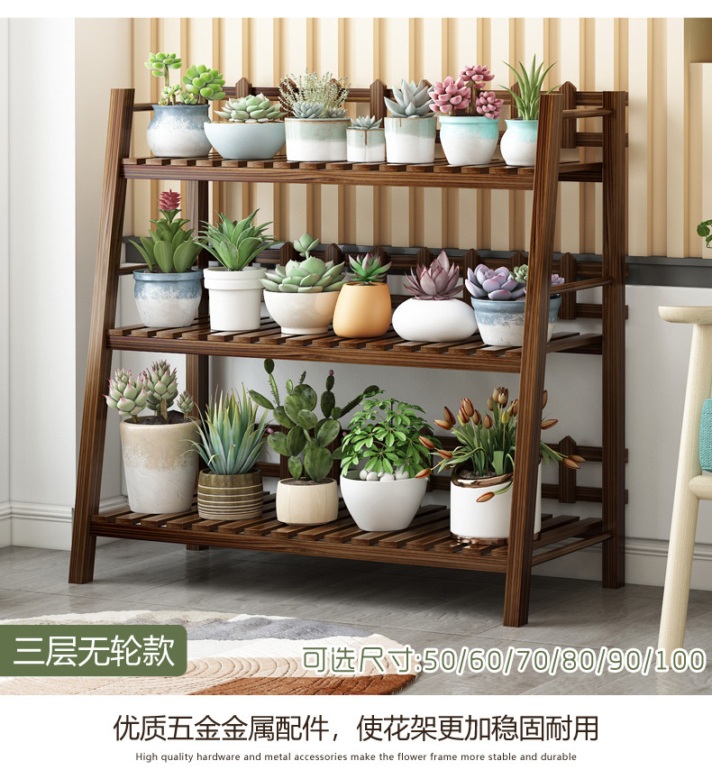 Flower Stand for Indoor Use, Made of Solid Wood, Multi-Layered, Suitable for Balcony Decoration, Floor-Standing Style for Living Room, Suitable for Succulents and Green Plants, Iron Art Flower Pot Stand