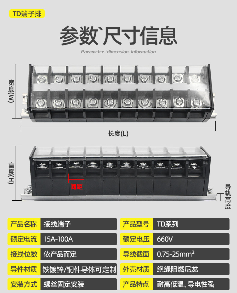 Td Rail Combination Terminal Block Multi-Position Terminal Strip Connection Strip 15A20A30A60A100A Terminal Strip