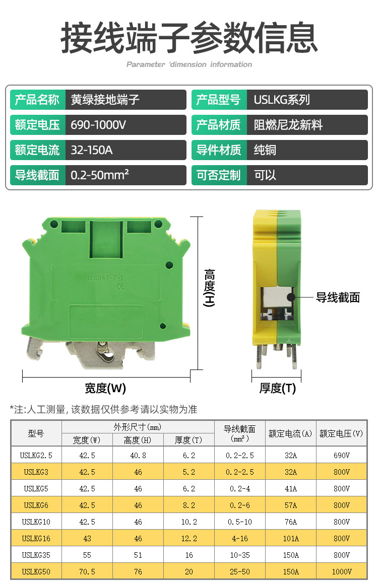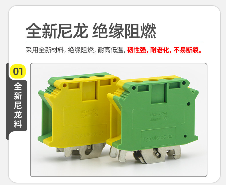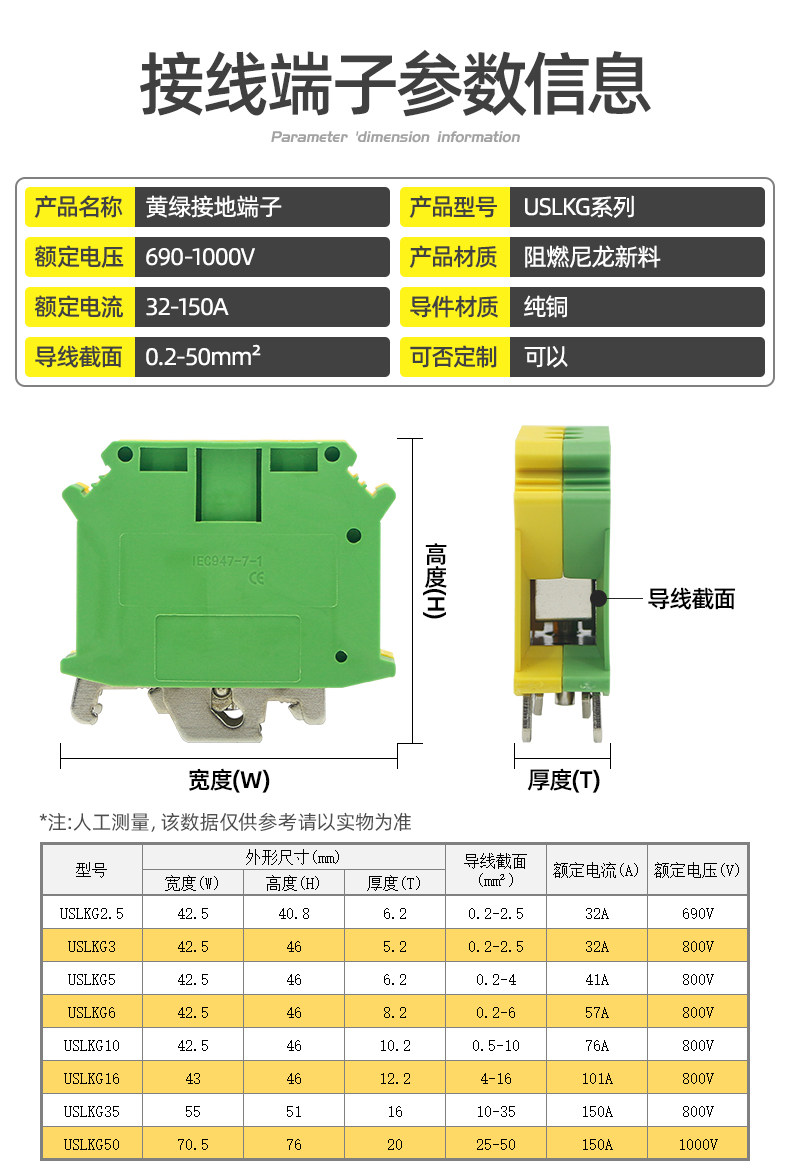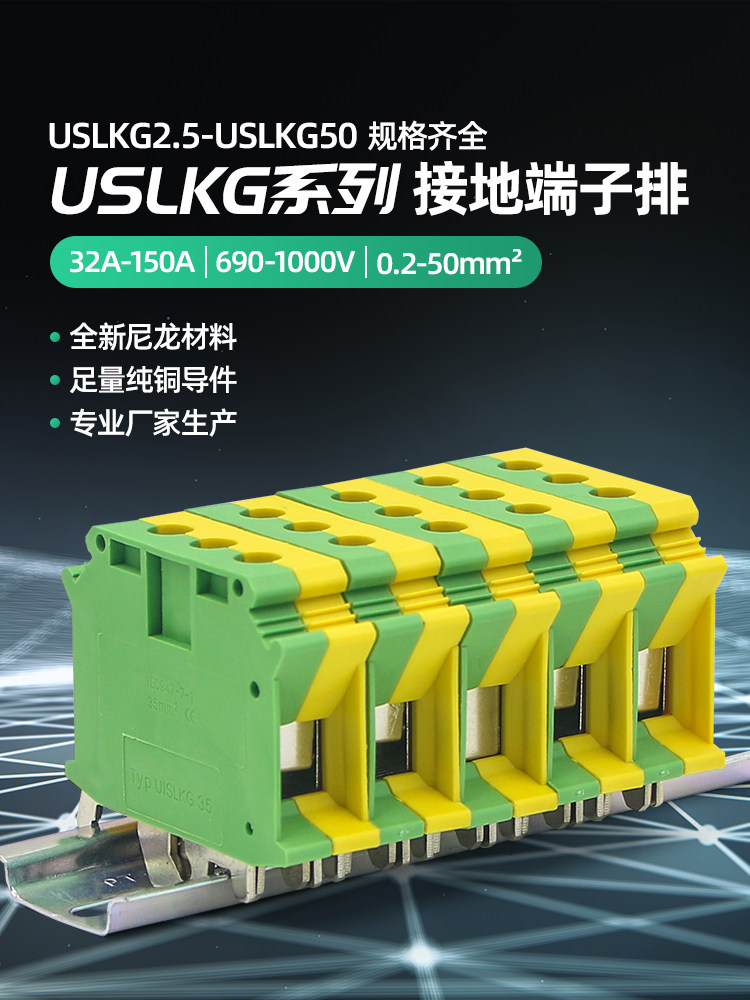 Uslkg Two-Color Terminal Block Uk2.5 Ground Rail Type Universal Voltage Yellow Green Pe2.5/3/5/6/10