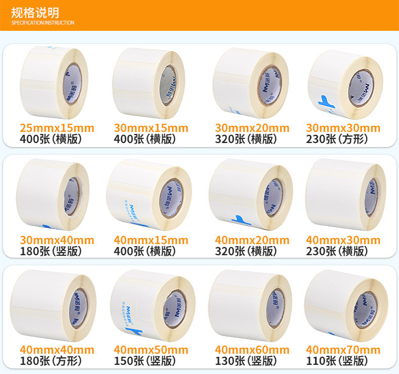 Noma portable printing paper essence B11 three-proof heat-sensitive synthetic waterproof label barcode self-adhesive sticker equipment label 25-50*30 40 45 60 70 80 tag Chen small roll core