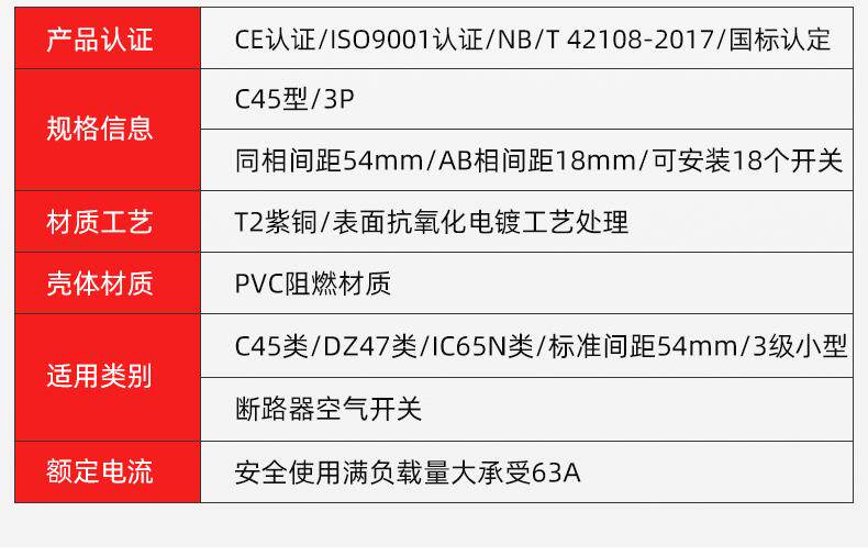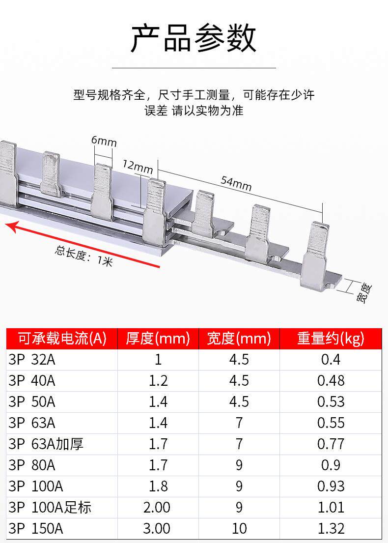 Color Classification 1P 32A National Standard Copper (1m Long 53 Switches),1P 40A National Standard Copper (1m Long 53 Switches),1P 50A National Standard Copper (1m Long 53 Switches),1P 63A National Standard Copper (54 Switches Long),1P 63A Thickened National Standard Copper (54 Switches Long),1P 100A National Standard Copper (54 Switches Long),1Pnc 100A (27 Switches Long),2P 32A National Standard Copper (27 Switches Long),2P 40A National Standard Copper (27 Switches Long),2P 50A National Standard Copper (27 Switches Long),2P 63A National Standard Copper (27 Switches Long),2P 63A Thickened National Standard Copper (27 Switches Long),2P 100A National Standard Copper (27 Switches Long),2Pnc 100A (18 Switches Long),3P 32A National Standard Copper (18 Switches Long),3P 40A National Standard Copper (1m Long 18 Switches),3P 50A National Standard Copper (1m Long 18 Switches),3P 63A National Standard Copper (1m Long 18 Switches),3P 63A Thickened National Standard Copper (18 Switches Long),3P 80A National Standard Copper (1m Long 18 Switches),3P 100A National Standard Copper (18 Switches Long),3P 100A Full National Standard Copper (18 Switches Long),3P 150A National Standard Copper (18 Switches Long),3Pnc 100A (12 Switches Long),1Ple 32A Slot 45mm (1.22m Switch),1Ple 40A Slot 45mm (1.22m Switch),1Ple 50A Slot 45mm (1.22m Switch),1Ple 63A 45mm Pitch (1.22m Switch),C65 Type 63A Spacing 54mm (1.18m Switches),2Ple 32A, 63mm Spacing (16 Switches, 1.0m Long),2Ple 40A, 63mm Spacing (16 Switches, 1.0m Long),2Ple 50A, 63mm Spacing (16 Switches, 1.0m Long),2Ple 63A, 63mm Spacing (16 Switches, 1.0m Length),2Ple 63A, 63mm Spacing, Heavy-Duty (16-Gang Switch, 1.0m Length),2Ple C65 63A, 72mm Spacing (16-Gang Switch, Length 1.0m),Dpnle A2 (with 2 Switches),Dpnle B2 (with 2 Switches),Dpnle A3 (with 3 Switches),Dpnle A4 (with 4 Switches),Dpnle B4 (with 4 Switches),Dpnle B5 (with 5 Switches),Dpnle A5 (with 5 Switches),Dpnle A6 (with 6 Switches),2Ple 32A Spacing 36mm (1m 27 Switches),2Ple 40A Spacing 36mm (1m 27 Switches),2Ple 50A Spacing 36mm (1m 27 Switches),2Ple 63A Spacing 36mm (1m 27 Switches),2Ple 63A Thickened 63mm (27 Switches),3Ple 63A 89mm Spacing (1.11m Switches),3Ple 63A 99mm Spacing (1.1m Switches),3Ple 50A 99mm Spacing (1.1m Switches),3Ple 63A 103mm Spacing (1.9m Switches),3Ple 63A 108mm Spacing (1.9m Switches),3P+N 50A Spacing 99mm (10 Pieces in Total),3P+N 63A Spacing 99mm (10 Pieces in Total),4Ple 50A Spacing 117mm (8 Pieces in Total),3P+N 63A Spacing 125mm (8 Pieces in Total),4Ple 63A Spacing 117mm (8 Pieces in Total),4Ple 63A Spacing 134mm (7 Pieces in Total),4Ple 63A Spacing 142mm (7 Pieces in Total)