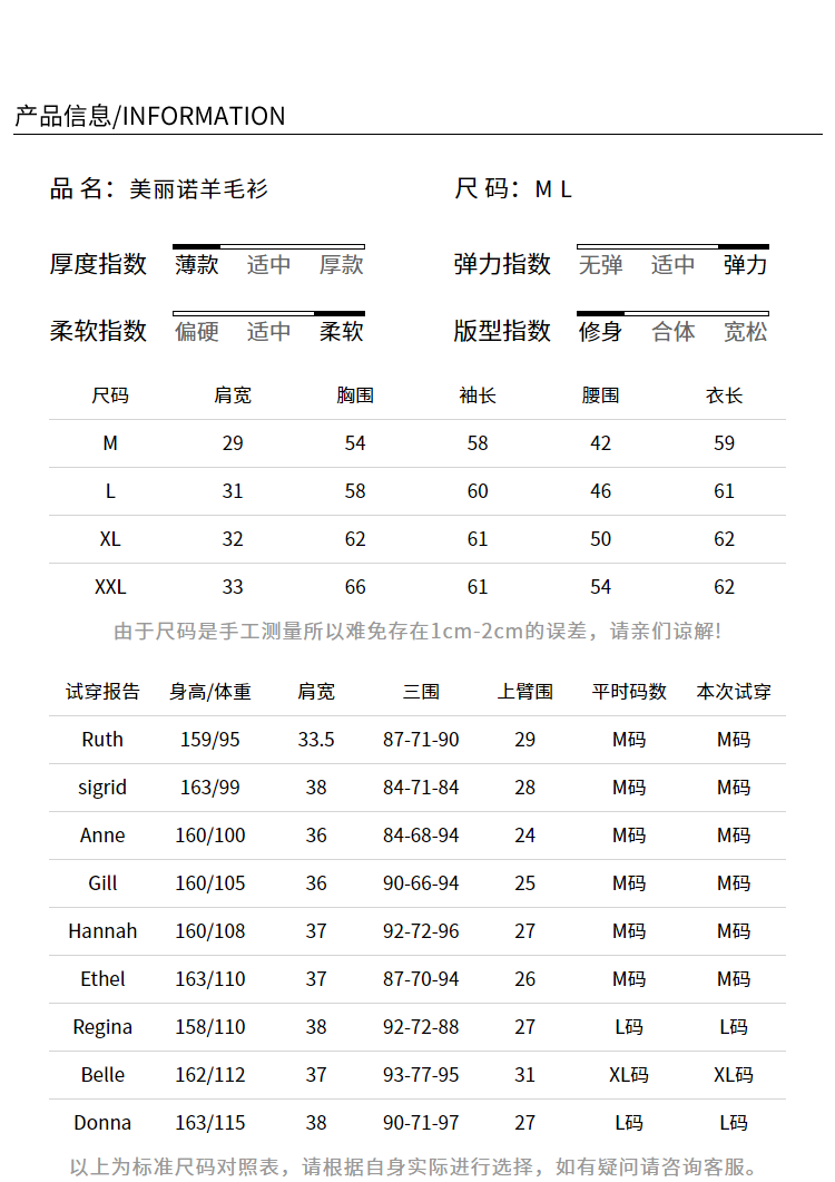 China (cm) 160-165/84-86 165-170 / 88-90 167-172 / 92-96 168-173 / 98-102 170-176 / 106-110
