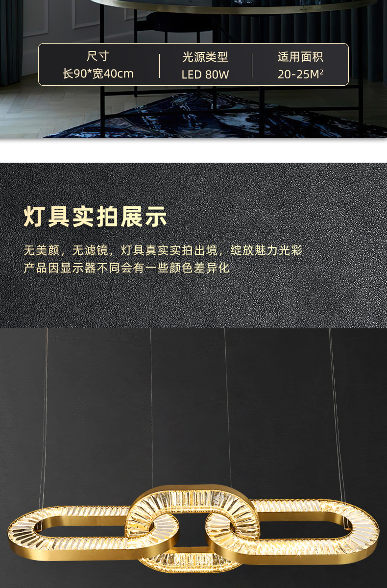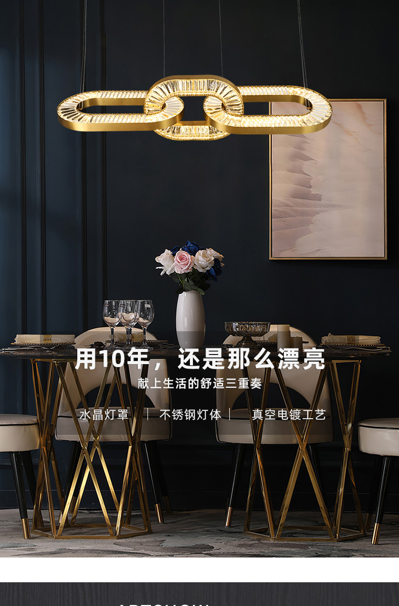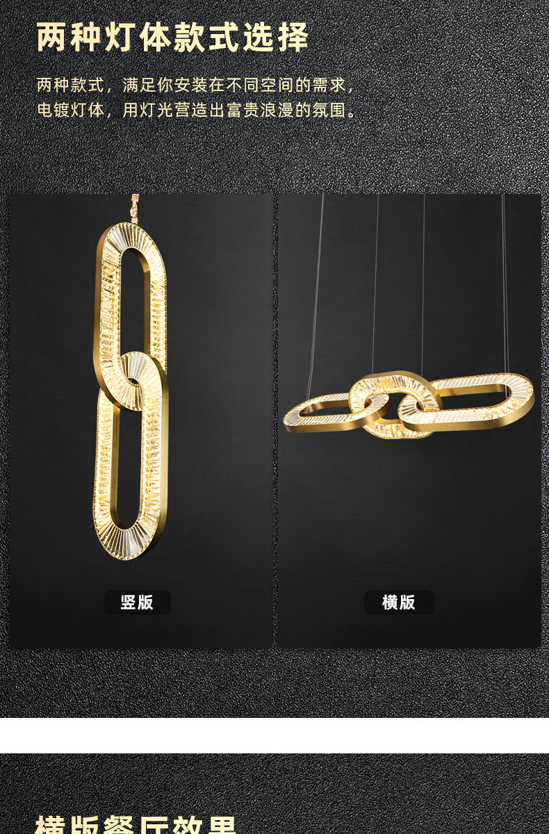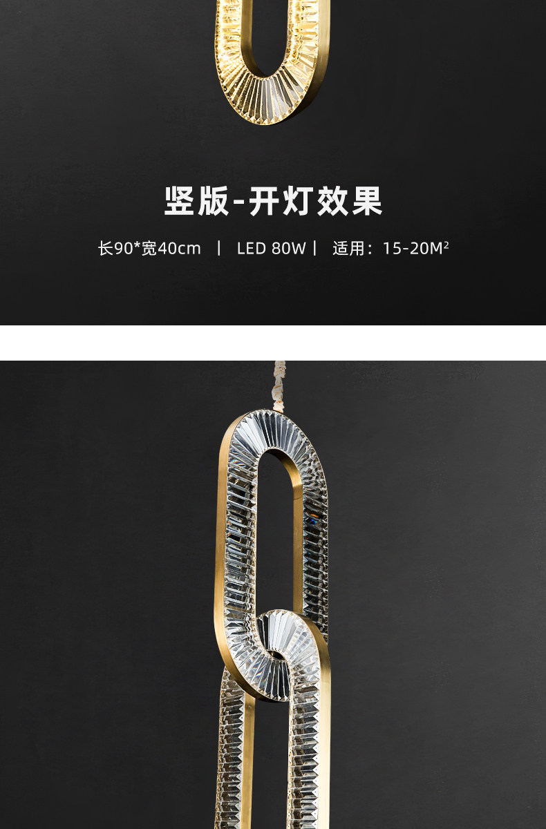 Light Luxury Minimalist Crystal Iron Chain Chandelier, Personalized and Creative Lighting for Dining Room, Living Room, Study, Bedroom, Multi-Layer Duplex Lighting Fixtures