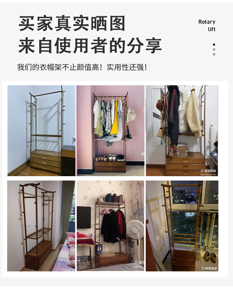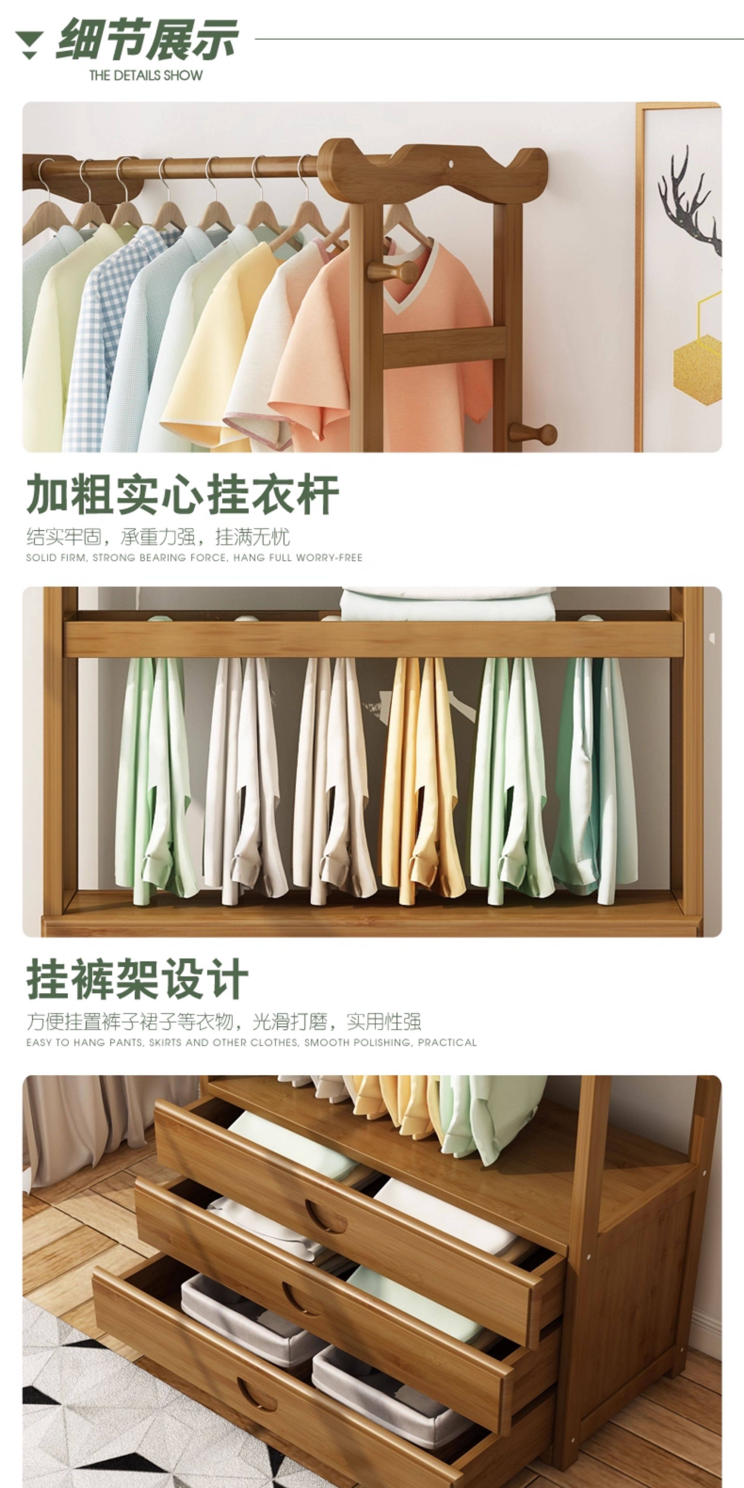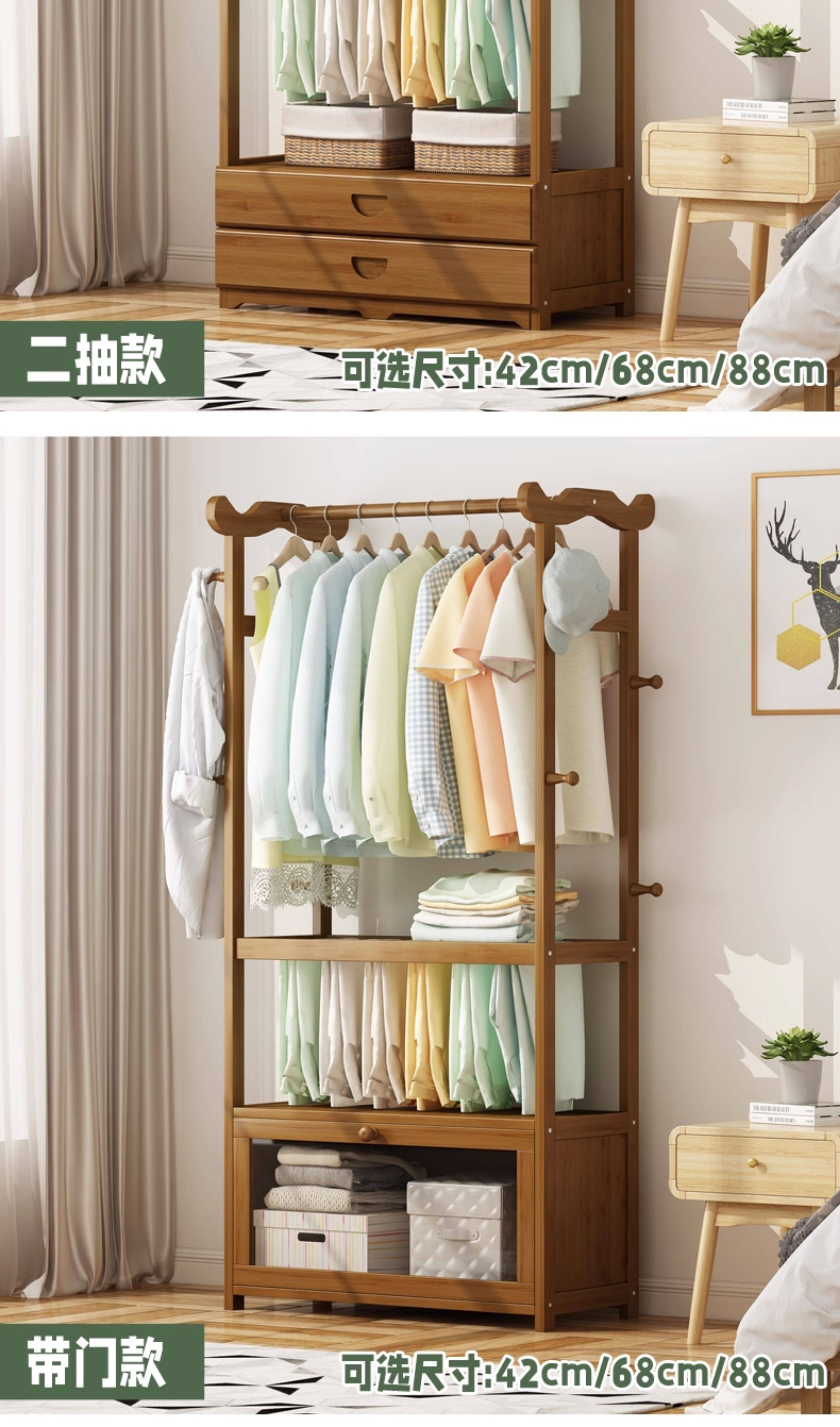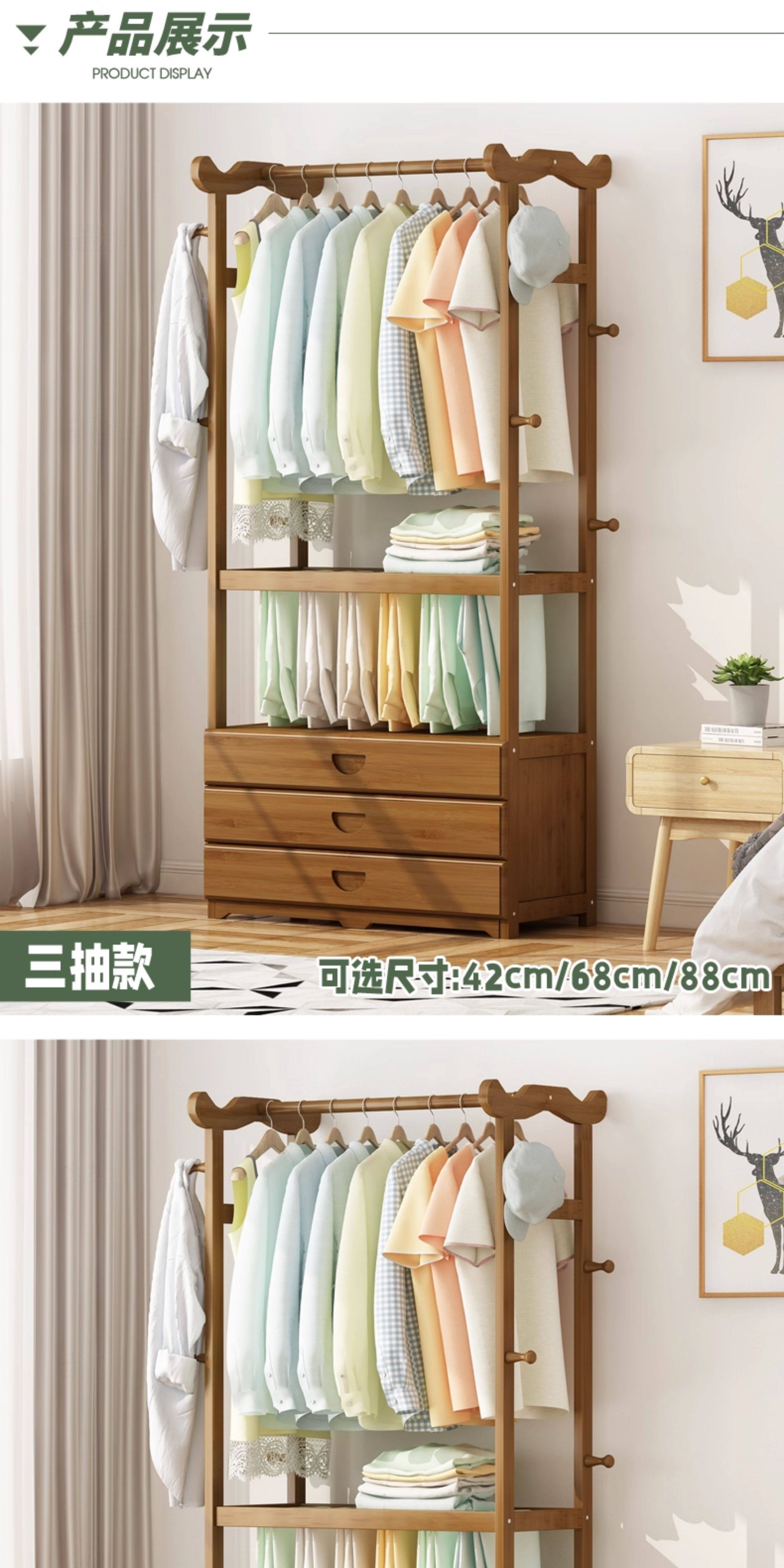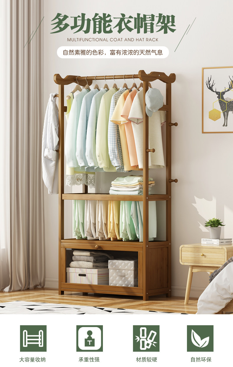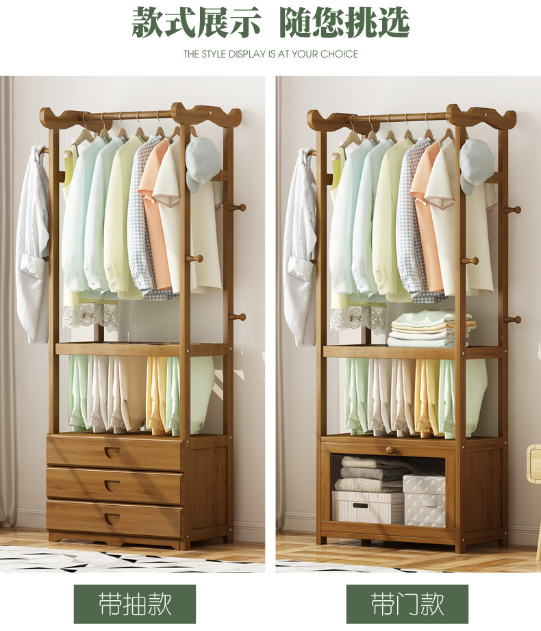2026 New Model Simple Coat Rack Home Clothes Rack Bedroom Floor-Standing Clothes Hanger Clothes Rack Storage Rack Bamboo