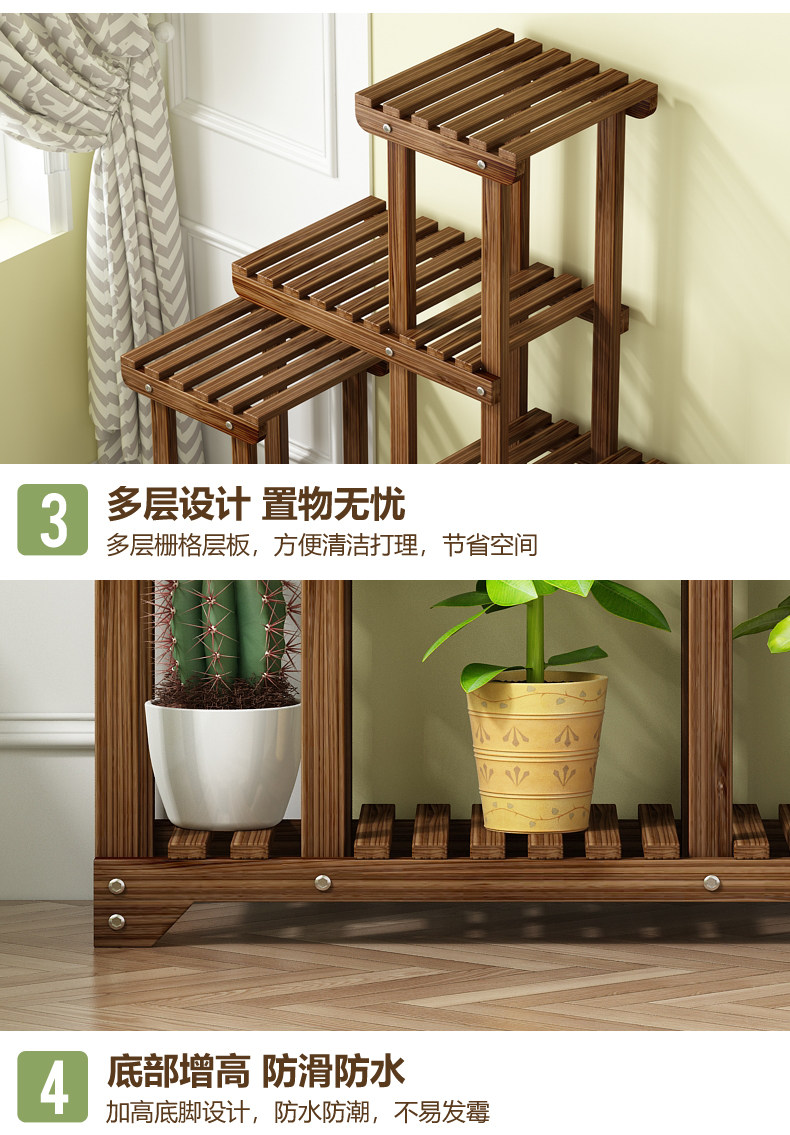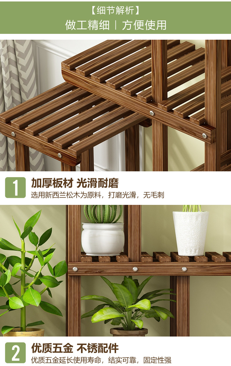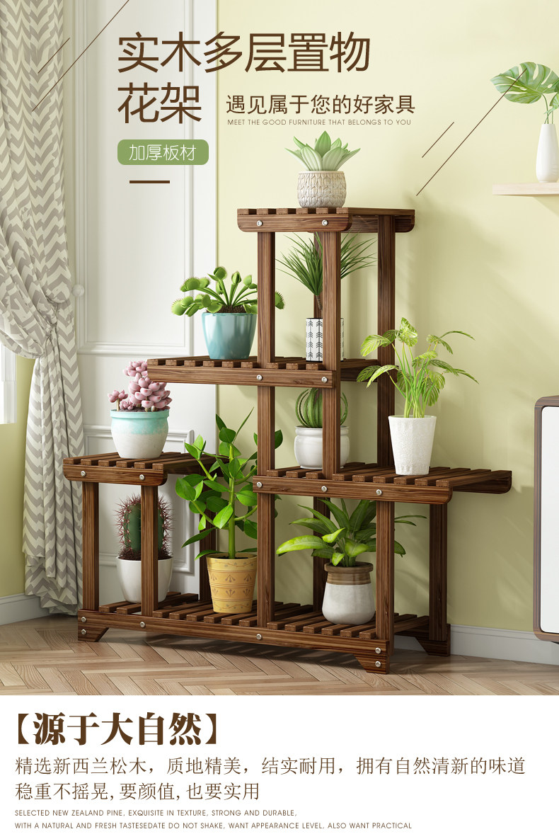 Flower Stand Balcony Garden Flower Pot Rack Modern Simple Solid Wood Multi-Layer Indoor Living Room Storage Rack Green Radish Succulent Rack