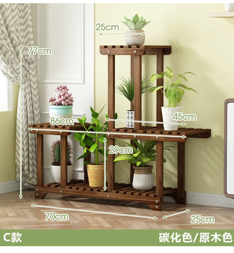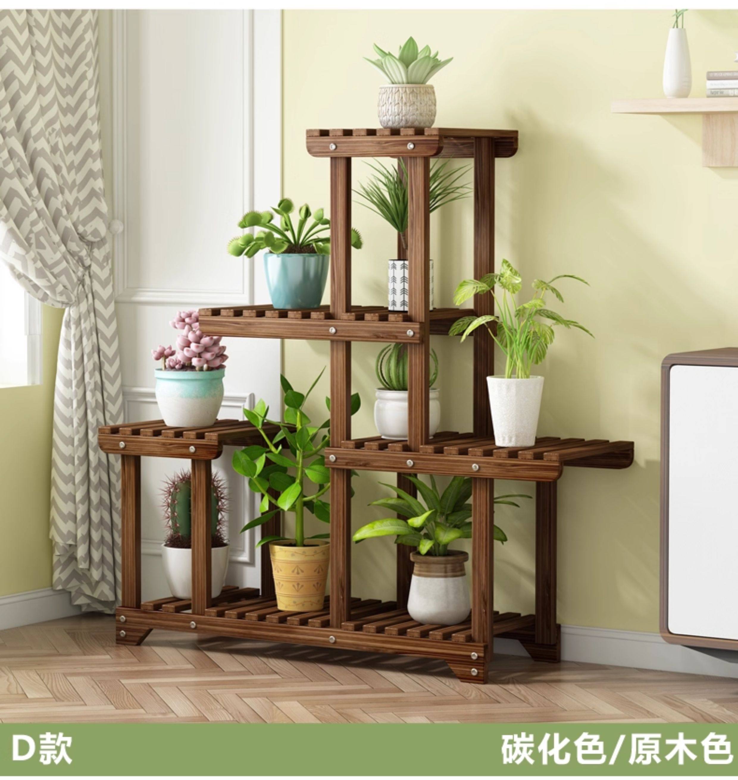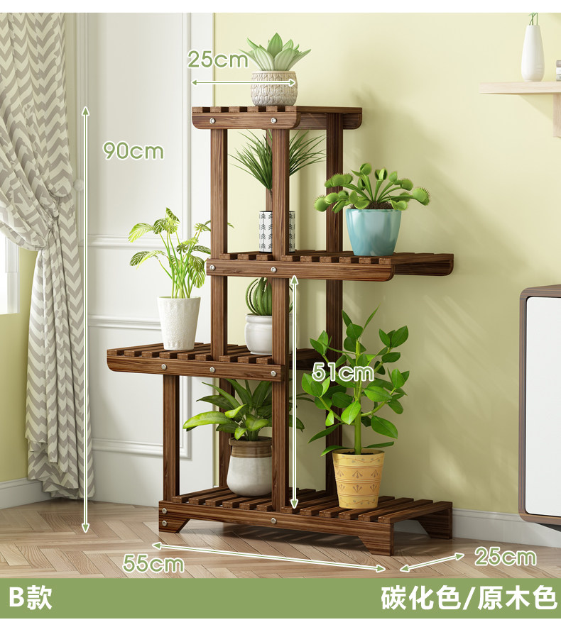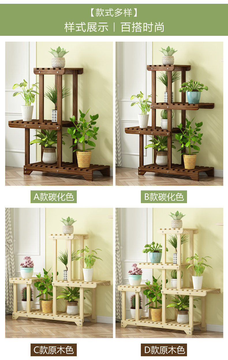 Flower Stand Balcony Garden Flower Pot Rack Modern Simple Solid Wood Multi-Layer Indoor Living Room Storage Rack Green Radish Succulent Rack
