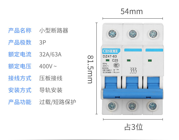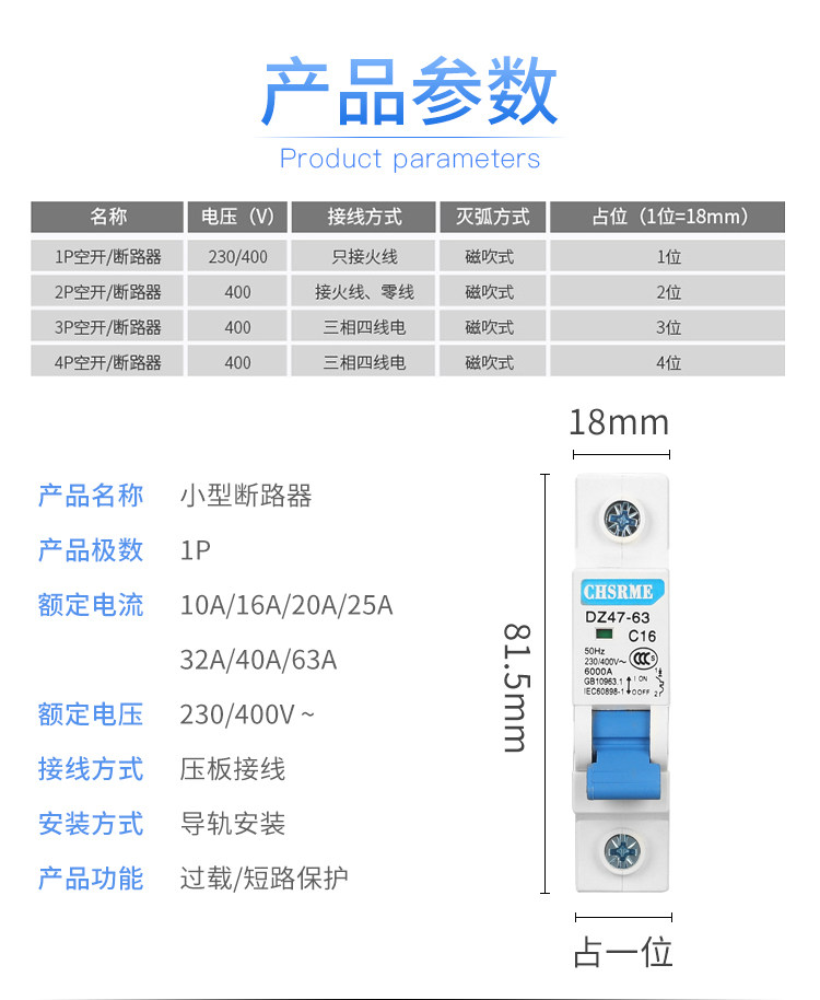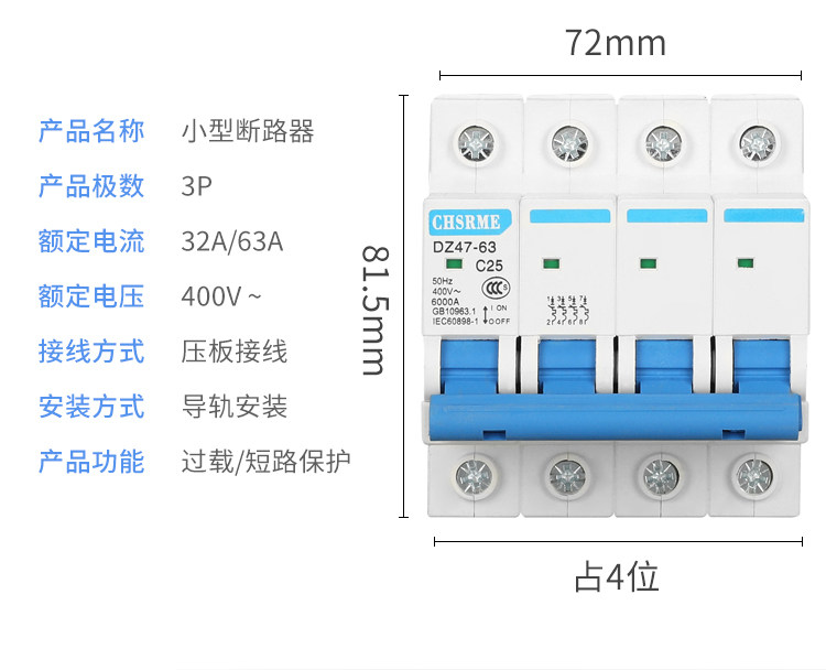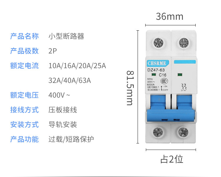 New Household Dz47 Small Circuit Breaker Air Switch 1234P Short Circuit Insurance Protector 10-63A