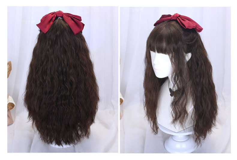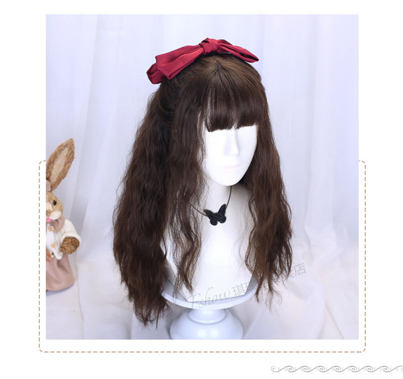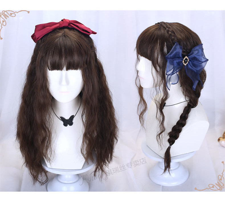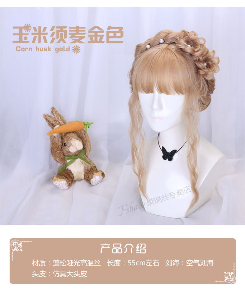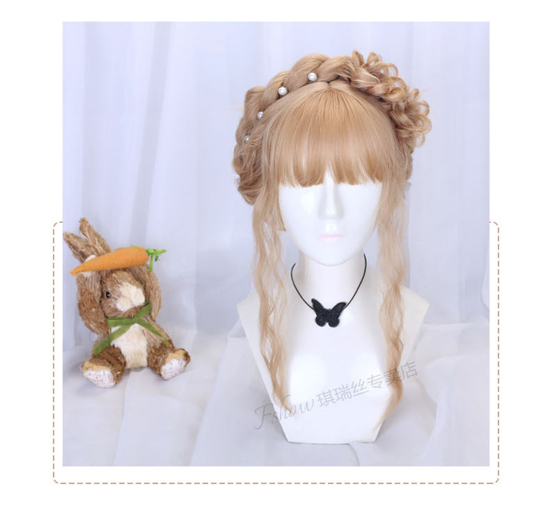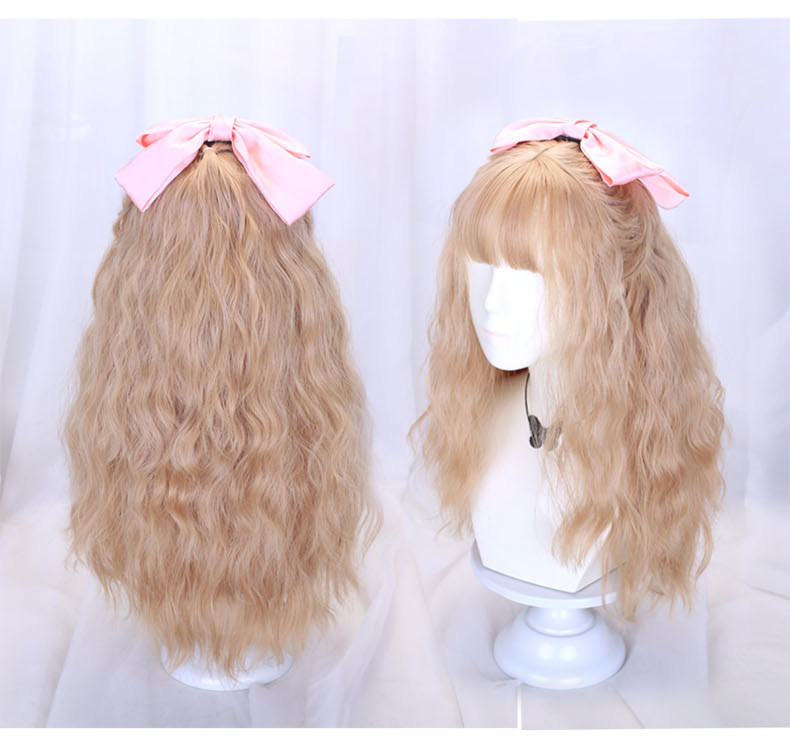 Lolita wig for women with long hair, daily braiding, golden wool, long curly hair, full headgear style, lolita fake hair