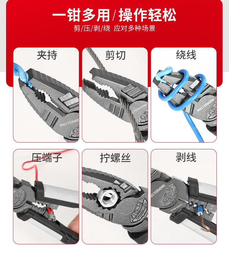 Electrician's Multifunctional Pliers, Needle-Nose Wire Stripper, Cable Stripper, Diagonal Pliers, Universal Pliers, Scissors